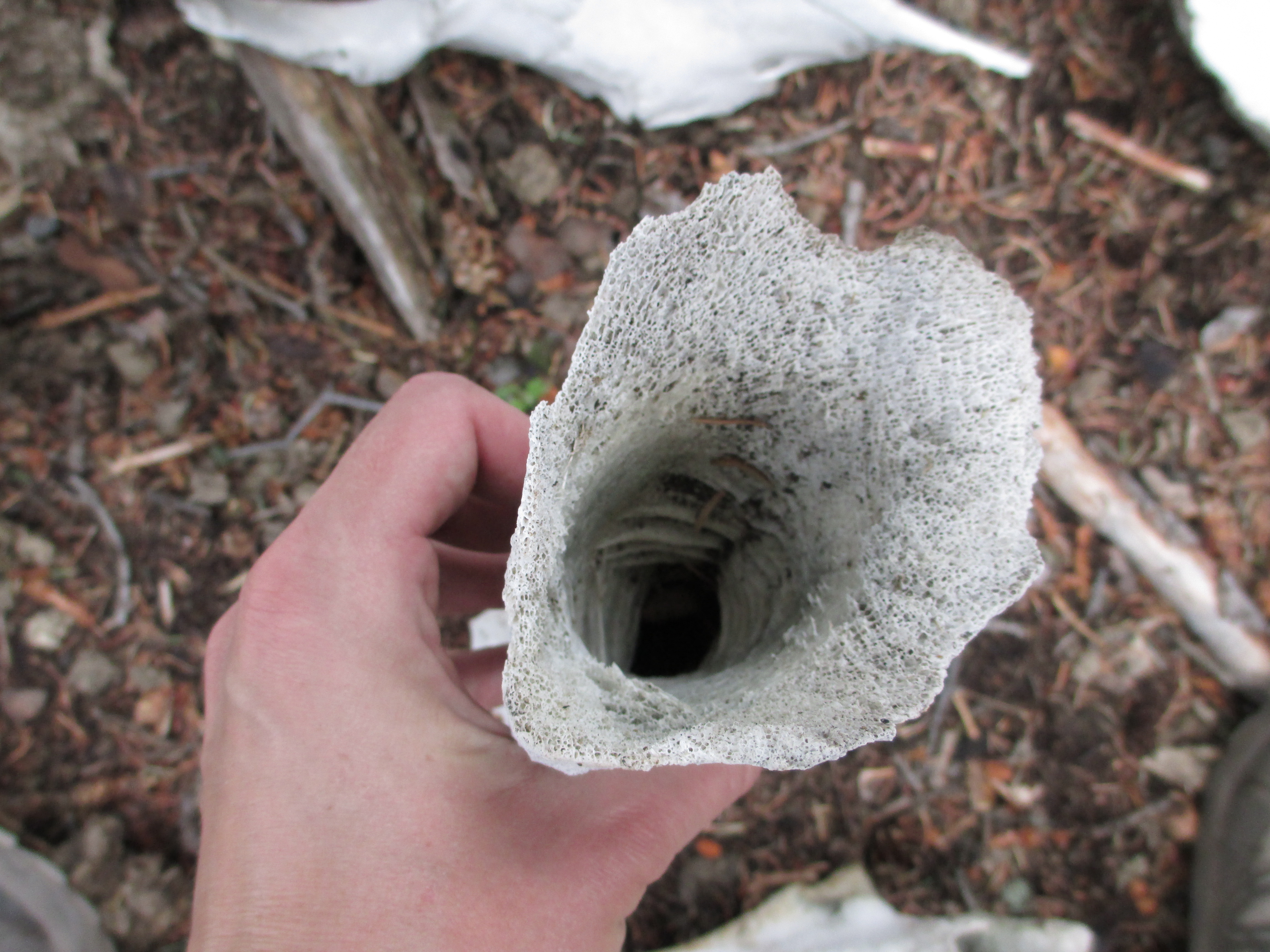 I walked over a mile in the rain, and then started to get tired again. I also had to pee. I found a couple of large trees with dry pine needles underneath, so I put my pack down and took a break there. I looked out in the direction I would be going and saw the rain coming down. And then, I looked back towards where I had just come from, and saw no rain in the air! I was standing right on the rain line! Incredible! I left the protection of the tree and continued through the meadow. Looking up towards my right, I saw a man setting up camp, but he did not see me. The rain had stopped and it was now hot out. I felt tired and found a nice flat rock to eat a power bar on. I decided to lie back on the rock and rest for awhile (something I rarely give myself permission to do). The sun was bright and I needed to shade my eyes with my hands. Within a couple of minutes, clouds began to move across the sky. More and more clouds moved in, filling up the sky, and the temperature immediately got cooler. A storm was coming and I needed to find a place to set up my tent! Thunder began to rumble. Most of the area was covered with thick plants and rocks and my eyes scanned the landscape for a flat area. I was also looking for a place where I could collect water. I found a small, exposed clearing on the side of the trail, but decided to press on. To my right, up a slope, I saw a stand of pine trees and decided I could camp underneath them. So I veered off the trail, headed for the trees, and dug my tent out of my pack. I had a hard time staking the tent because the ground was so hard! I looked around for some rocks that I could use to pound in the stakes and came across a campfire ring and the skeleton of a large animal! This was an actual campsite that I had found! By 4:30, I managed to get everything inside my tent and I stayed there for the next 2 hours, as the storm came in. At first, there was sprinkling rain and lightening in the distance. Then the wind picked up and the thunder grew louder. The temperature dropped from 80 degrees to 70 to 50! I put on my fleece pull-over and my rain clothes and got into my sleeping bag, fading in and out of sleep while lightening flashed all around me! I was weathering my first Colorado storm! Eventually, it passed, and I emerged from my tent to cook some mac and cheese. I added salmon for more protein, but the whole meal was cold and disgusting! The processed cheese remained hard and clumpy, and I just couldn’t stomach the taste. As I crawled into my sleeping bag for the night, I realized that I had hiked 50 miles of the trail so far- already 10% of it!