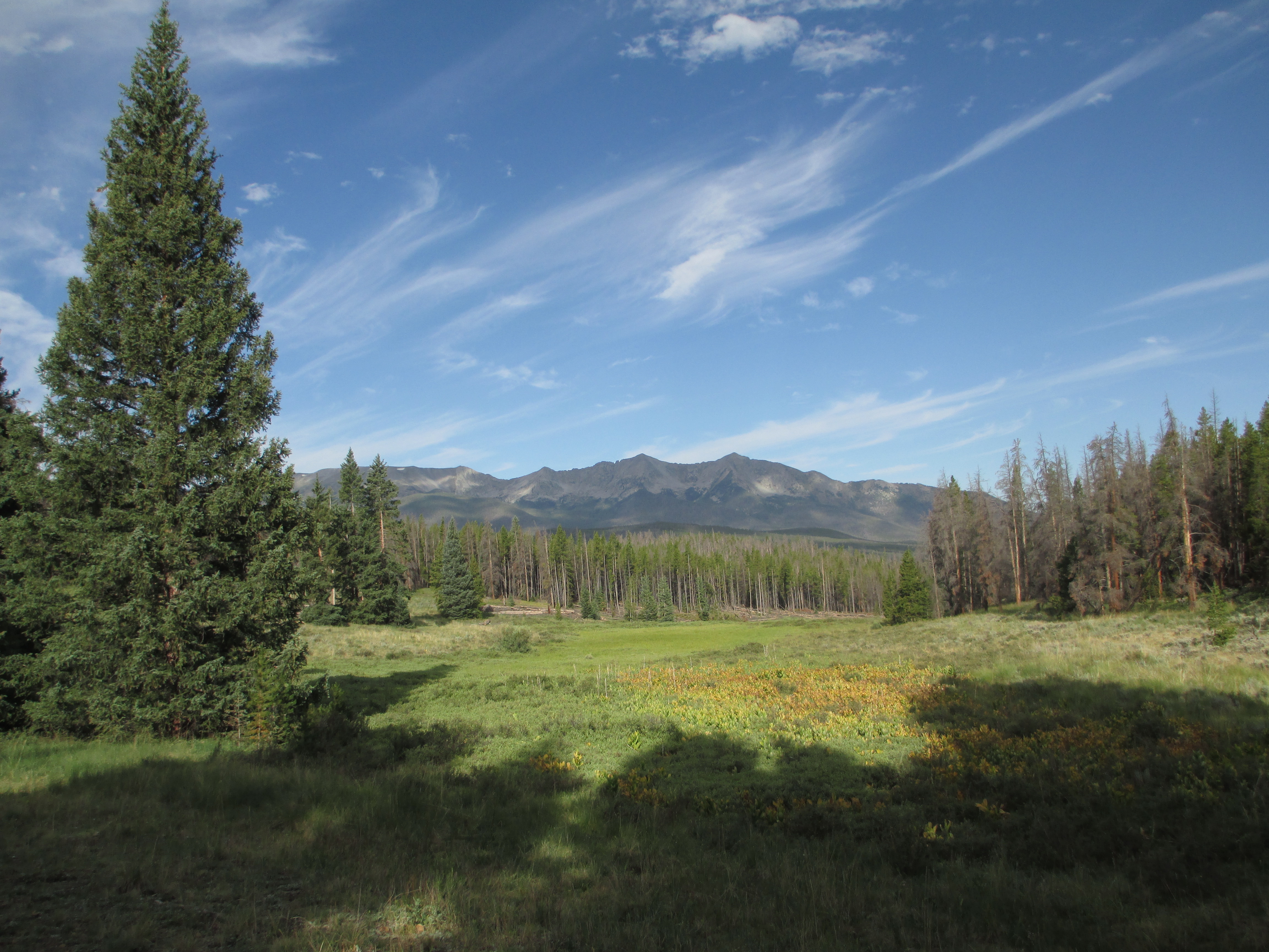 I got up around 6, ate some granola in bed, packed up, and hit the trail at 7:07. Soon after, I heard some noise in the forest. I looked over to see the guy who had passed by last evening! So he didn’t make it to Breckenridge on day 6 after all! He waved and I continued on. My competitive instincts (which have been greatly reduced by my yoga practice) suddenly kicked in! I wasn’t going to let him catch me! I wanted to be the winner! 🙂