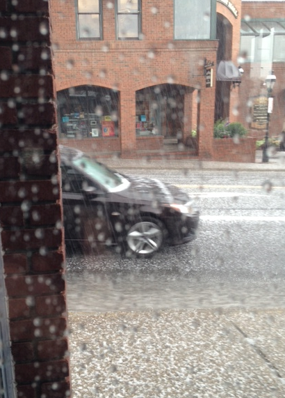 A party of three came in and sat down at the table to the right of me. The guy next to me kept looking at my sandwich and finally commented on how big it was and that I was making good progress! I responded, “I just hiked 105 miles!” The woman’s eyes grew wide and she started asking me questions. It was nice to have people to talk to. She said that I was the most fascinating person she had ever met because of what I was doing. She told me about their trips to Alaska and said that I would love it there. They each had a glass of wine, and after going back and forth on whether I should have one, too, I finally decided to order one. After hearing about my ordeal with my package, they were glad that I got myself some wine, too. While we ate, there was a tremendous hailstorm! Within minutes, the cars all had snow on their windshields, and a gushing river was racing down the sides of the street! I was so thankful that I was inside eating at this time!