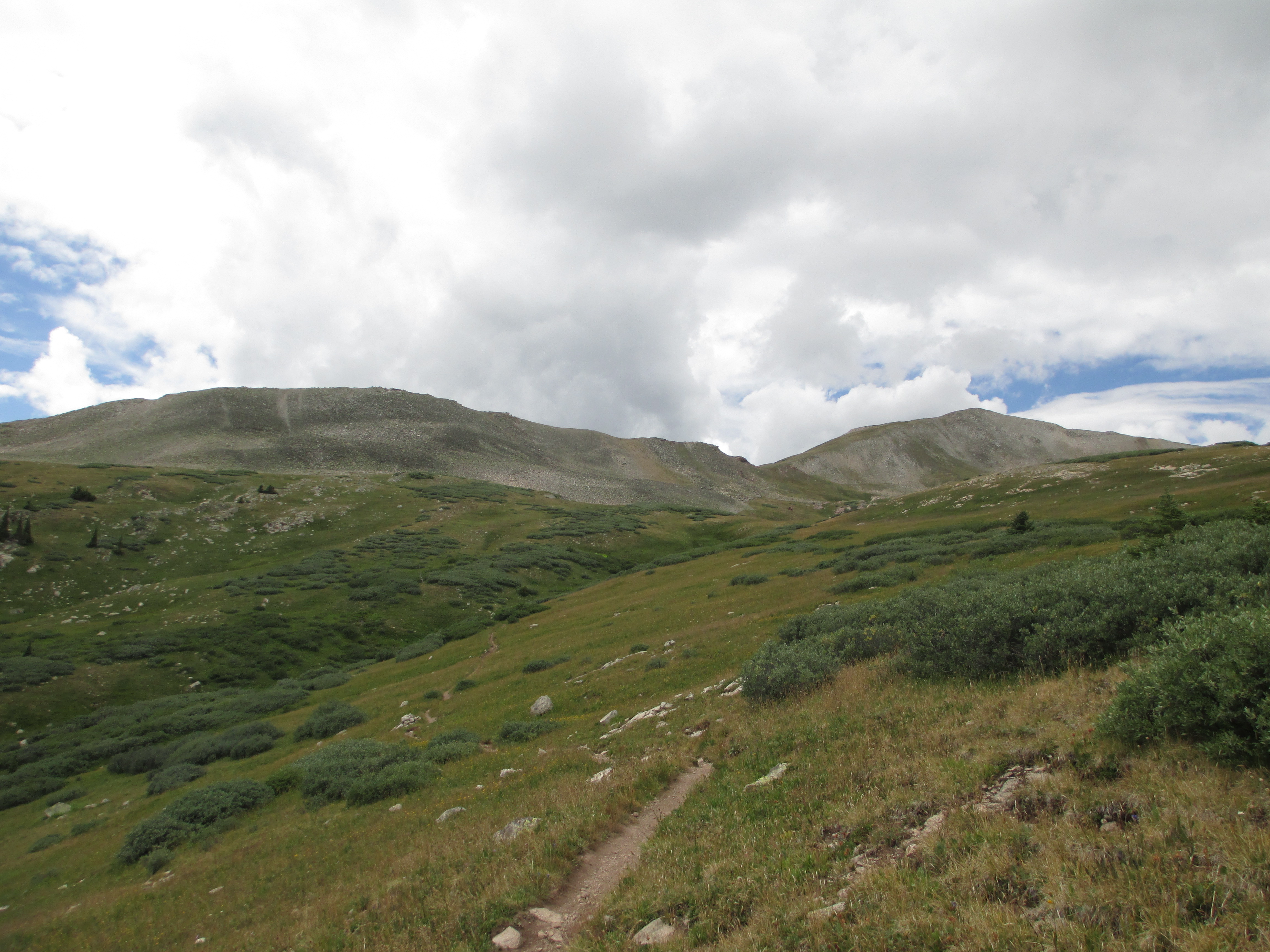 A bit later, I caught up to a father and son who were out on a day hike. They let me pass them as I was moving more quickly, but they passed me back after I took a break to eat a plum that I had brought from Breckenridge. They went up a grassy hill while I continued on the CT, into the woods, heading for my second long stretch (4.8 miles) of exposed terrain- Searle Pass.