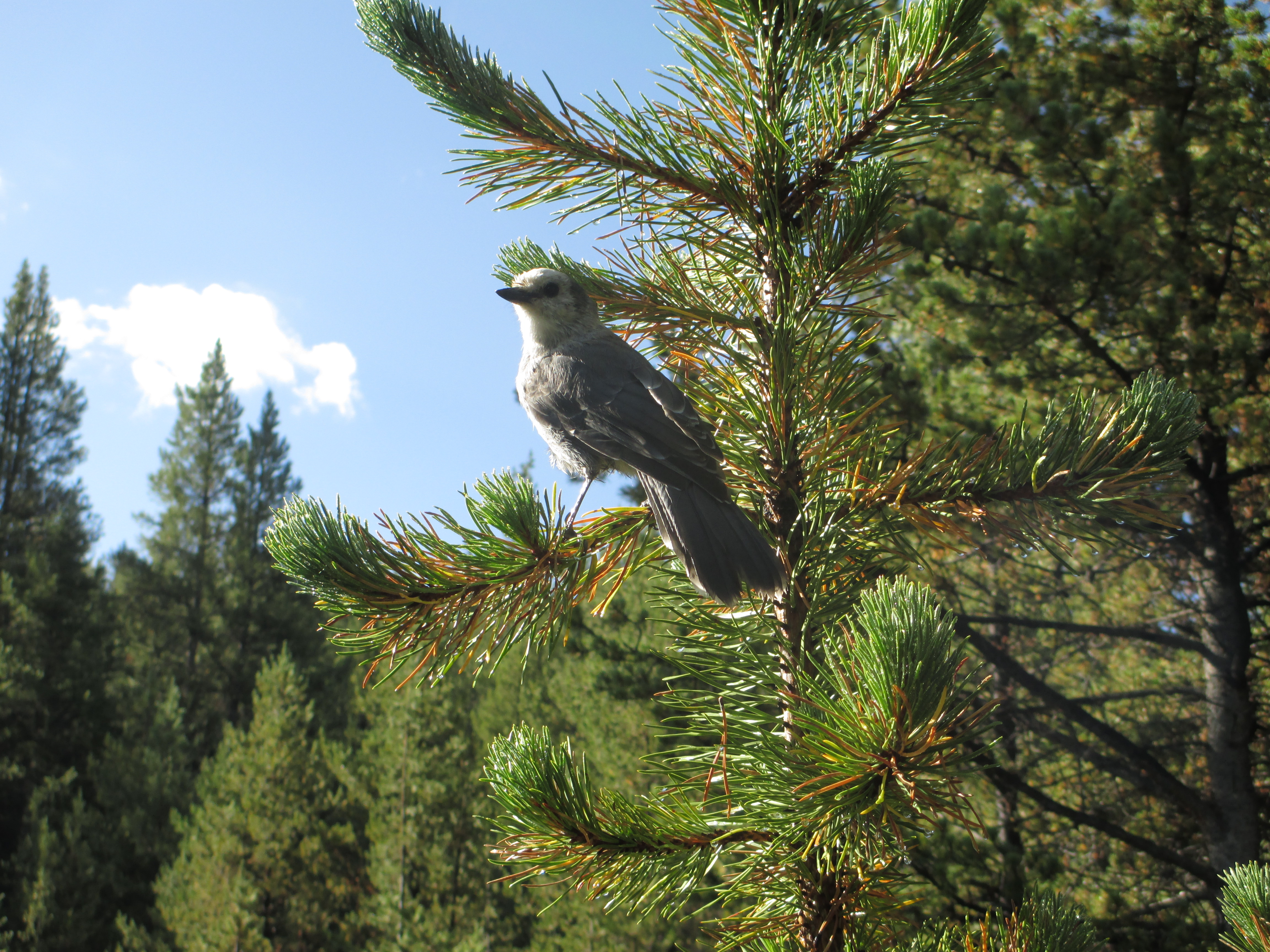 I walked through a meadow and heard a dog barking in the distance. I wished the owner would quiet him down! The howling had its own echo. Then, I saw the shape of a grey canine in the far distance and realized it wasn’t a dog making those sounds. It was a wolf! My very first wolf! Wow! As I walked on, I thought about the bike race . All of a sudden, a bird flew right next to my head! I couldn’t believe it! This was the first bird who was not scared of me at all! It flittered around me, hopping from branch to branch. I stayed, talking to him for a little while.