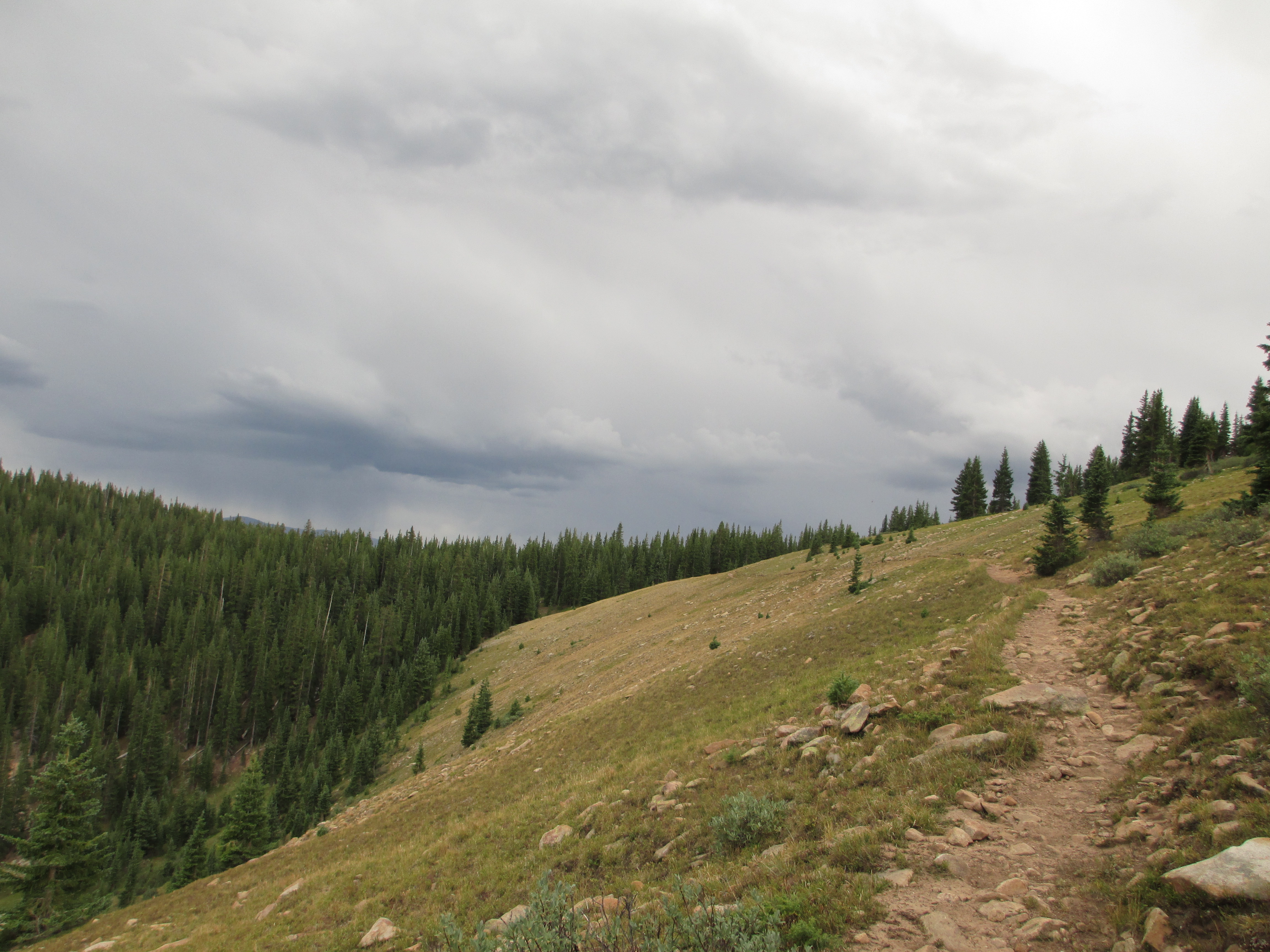 It rained throughout the night, thunder rumbled, and lightning struck in the distance. I was sleeping all alone, at an elevation of over 11,000 feet. Luckily, I didn’t have as many problems with water coming into my tent as I did two nights ago!