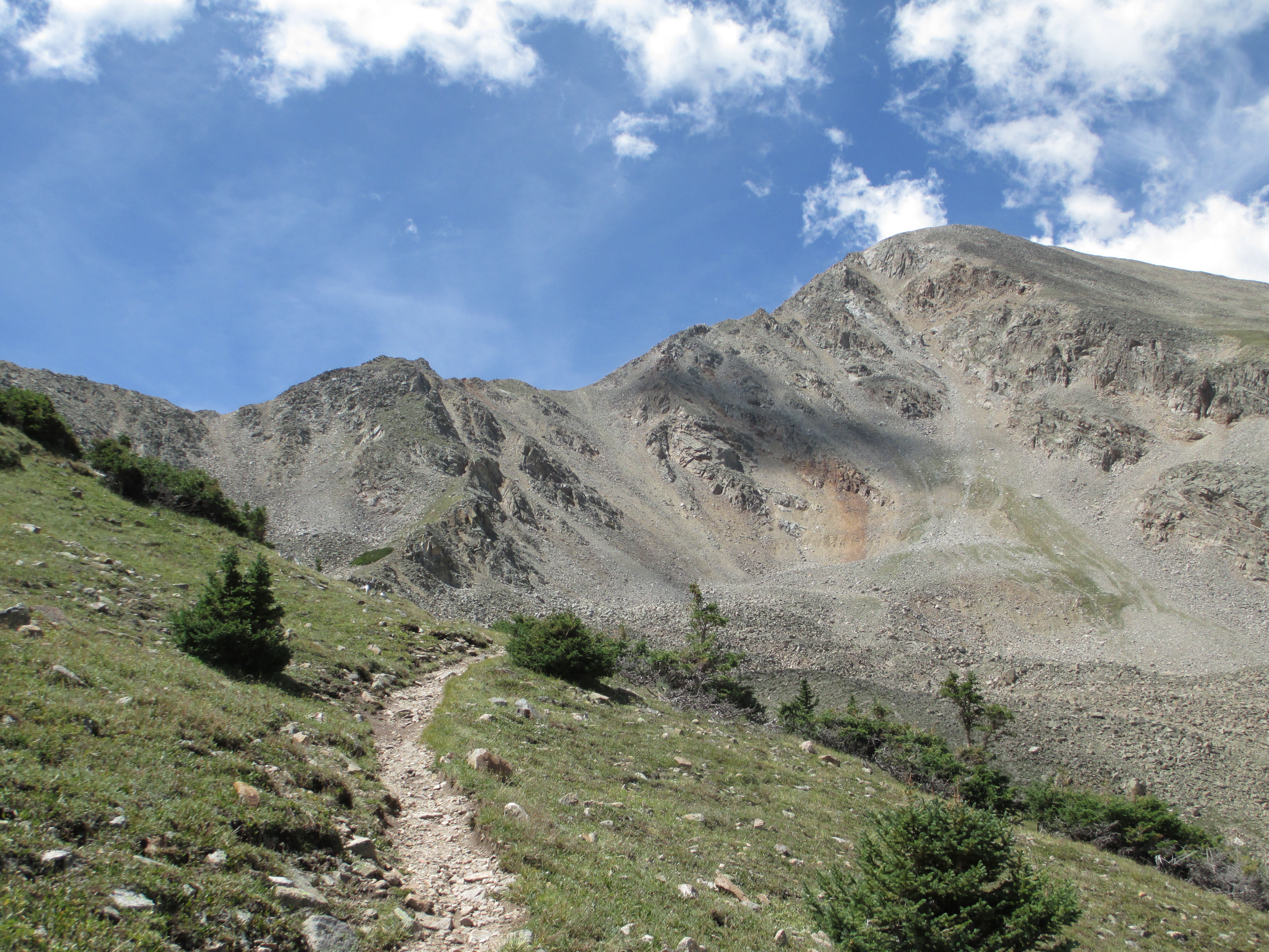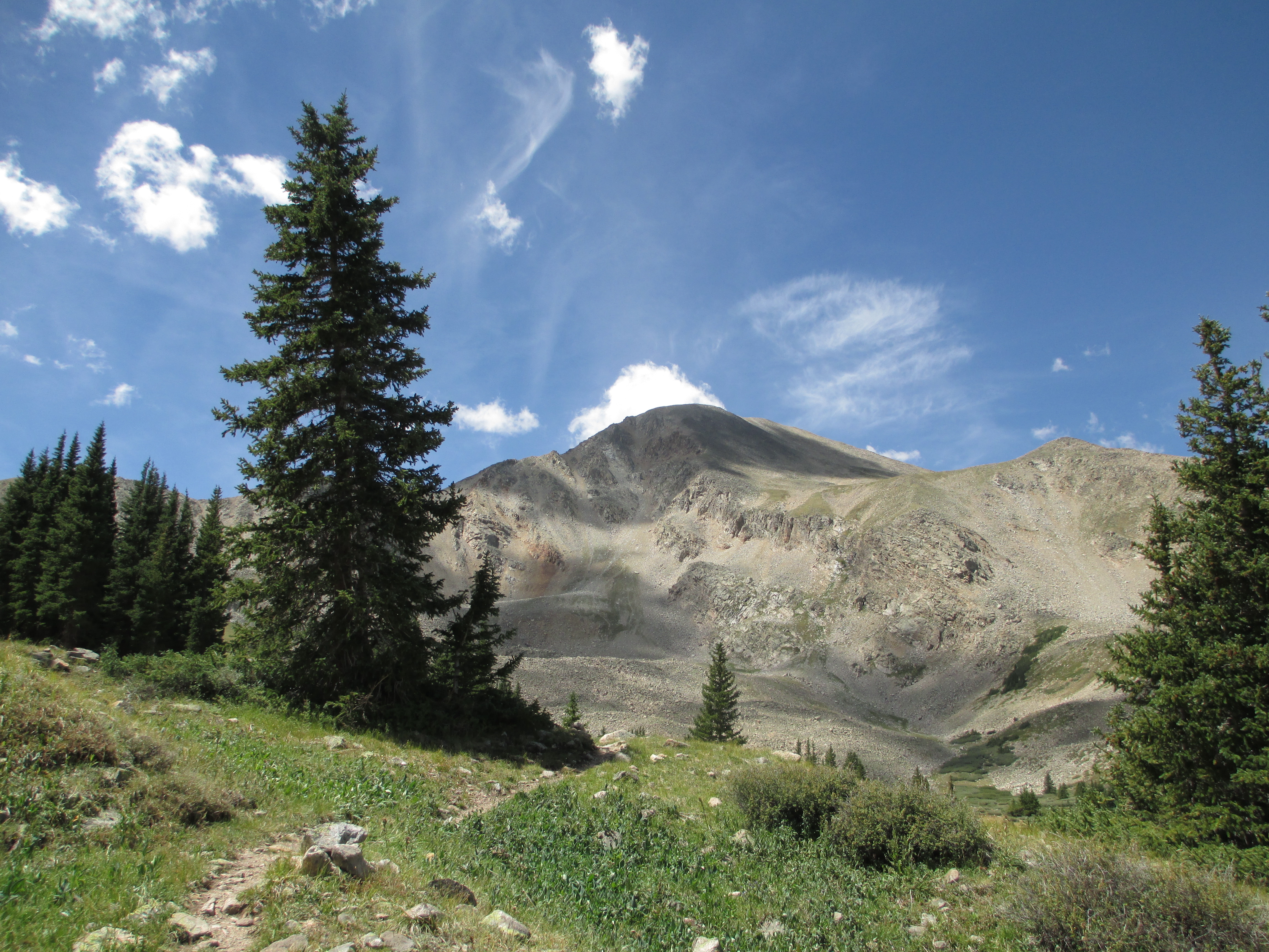 I passed a couple of trails on the right, but none were the CT. I decided to flag down the next car. The driver happily pulled over. I told him my predicament. “Well, let me pull out a map!” I told him I wanted to hike Mt. Belford and descend Elk’s path (I didn’t realize this was another 14,000+ foot mountain… Okay, just the CT will be fine…). He told me he was checking out gold mines. From his forest service map, he determined that I was 6-7 miles away (!). He asked if I was comfortable sticking out my thumb. He said he would have given me a ride, if he wasn’t running out of time. I couldn’t understand why he couldn’t at least bring me part way… Then, he realized my confusion. “Girl- you’re all turned around! You want to go that way!” (pointing in the opposite direction).