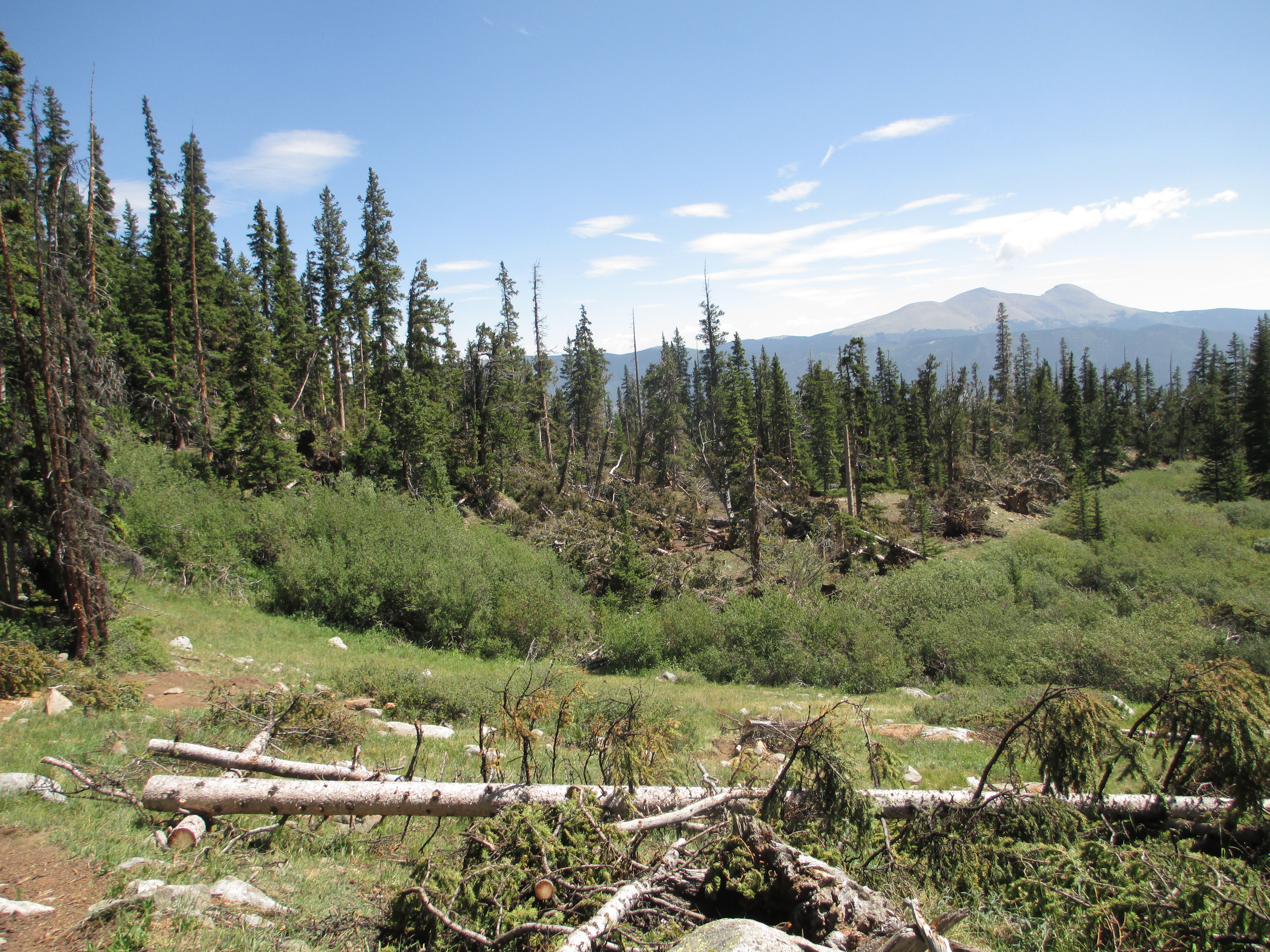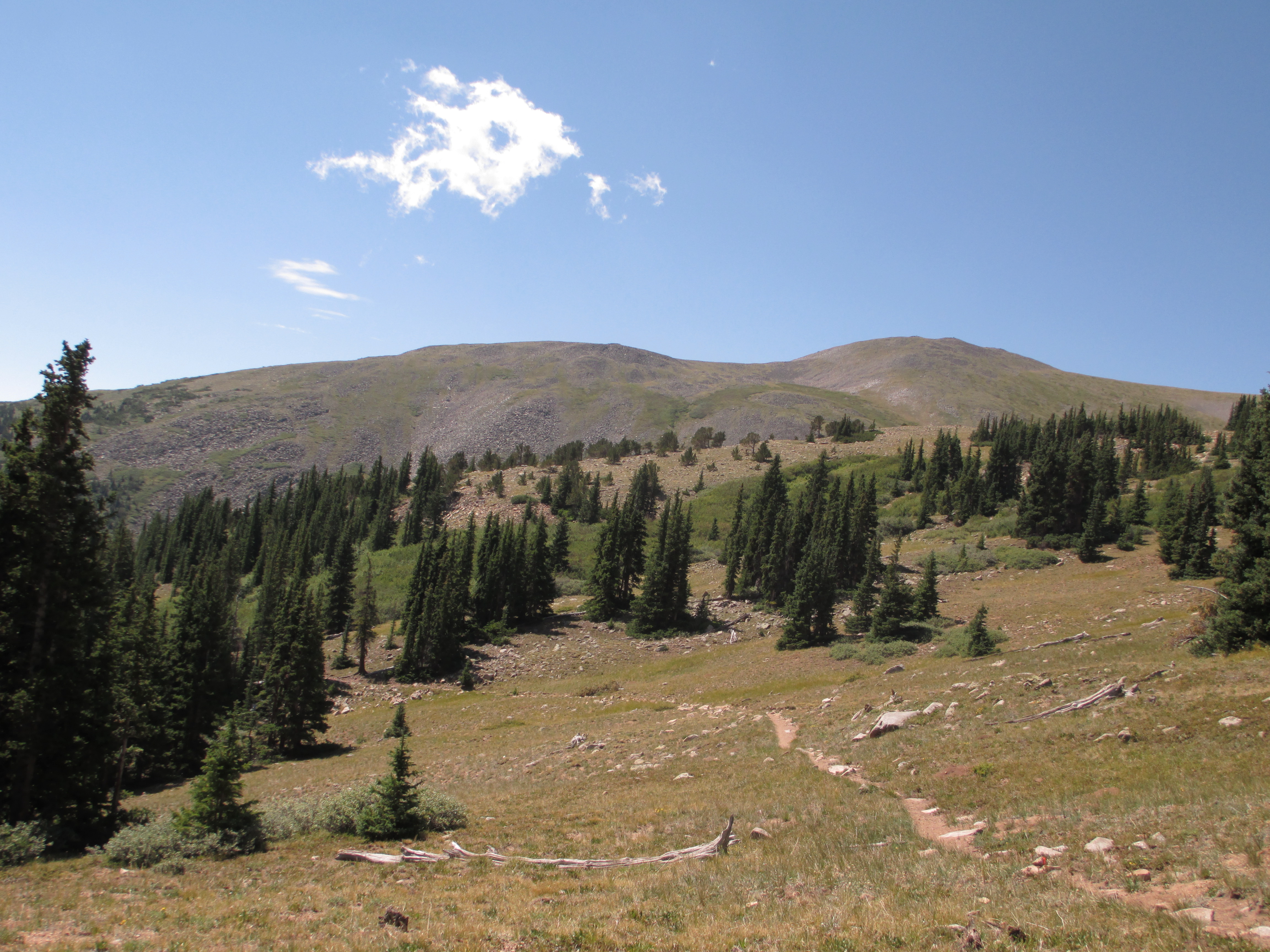 A man with a nice camera and his son hiked toward me. They told me that the man ahead told them there was “a lady” behind. The father said that if he ever thru-hikes the Colorado trail, it will be on horseback.