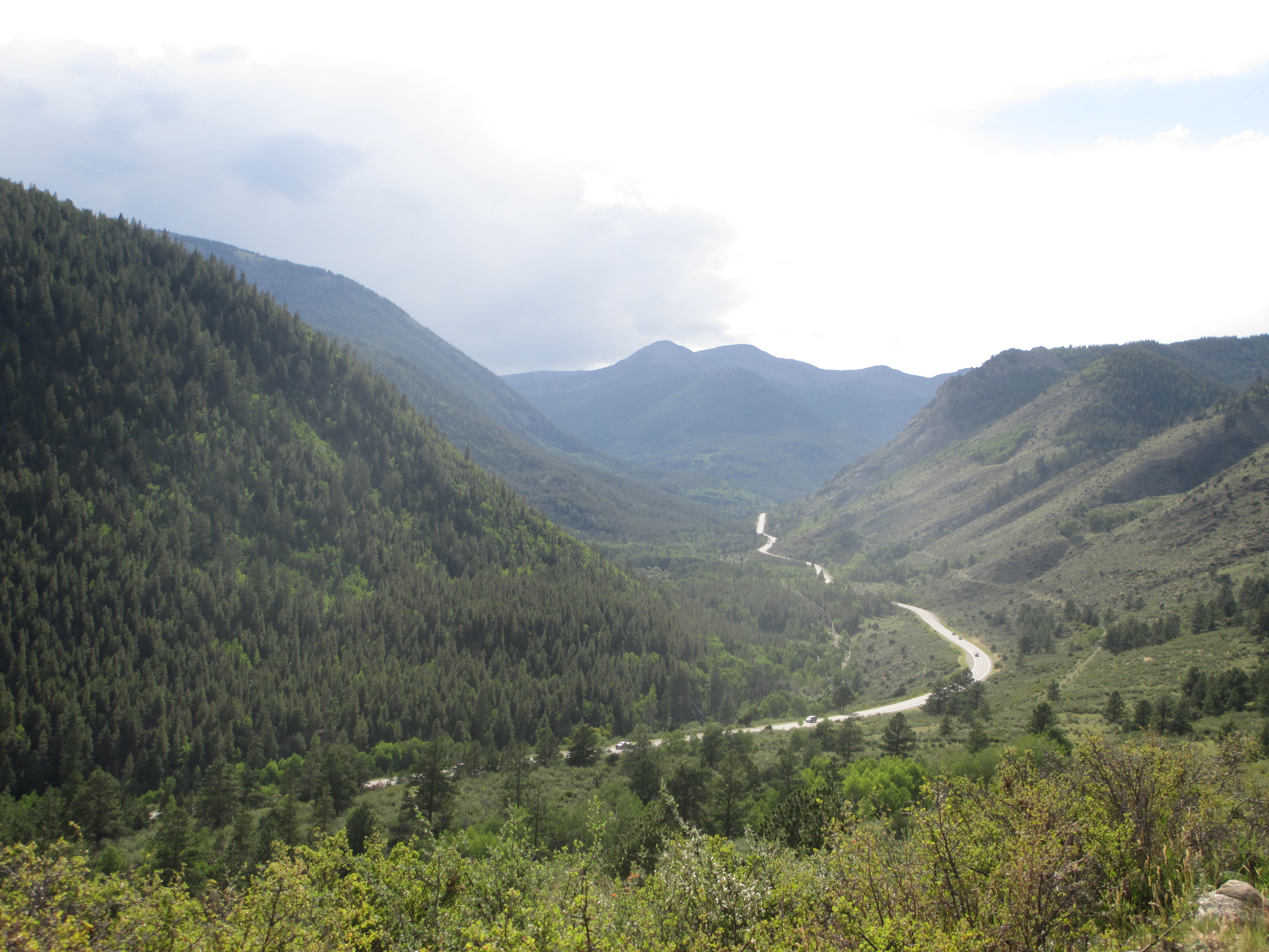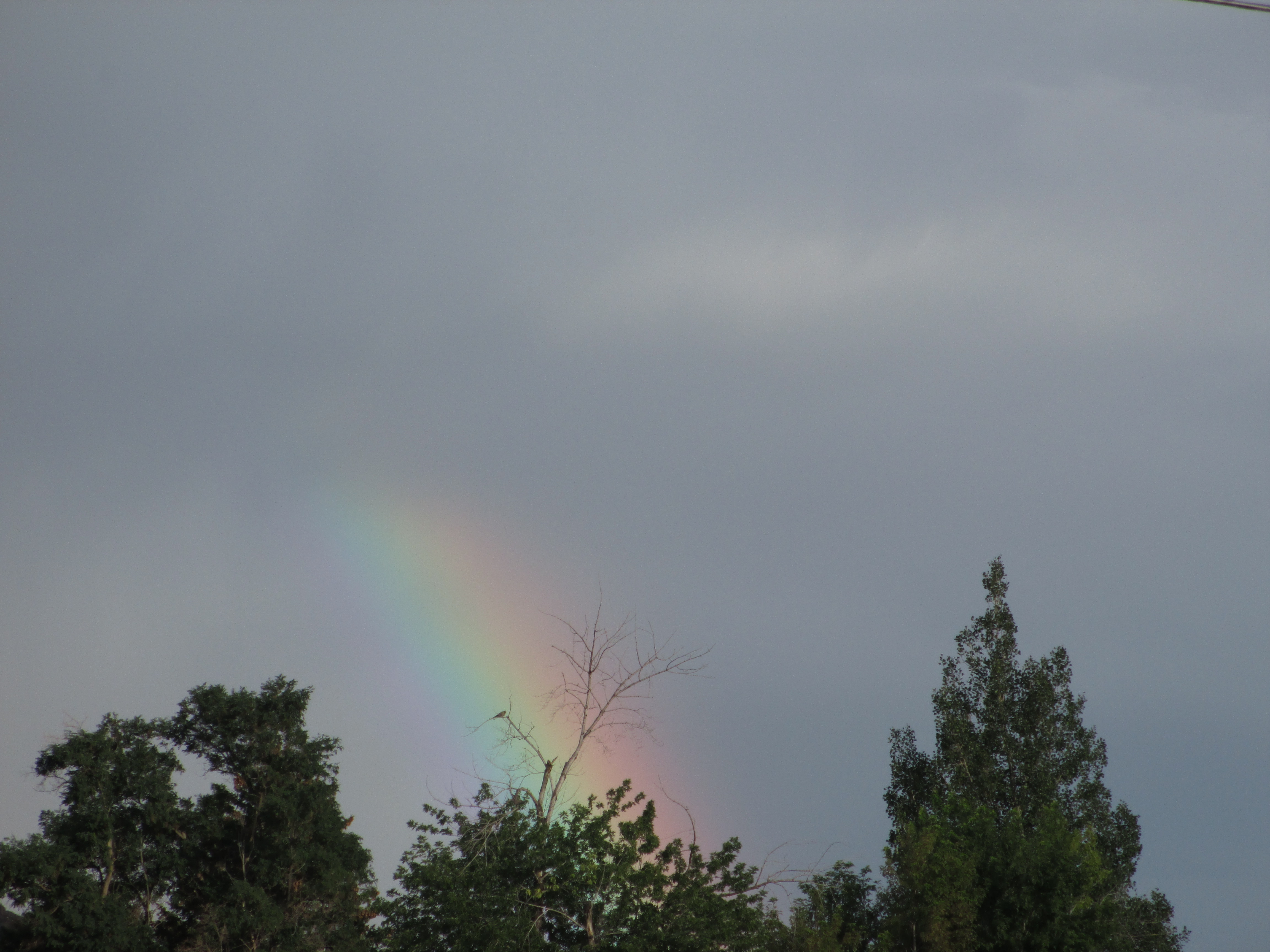I finally reached it, exhausted and completely out of energy, at 5:40pm. I didn’t know which way to hitch so I just stuck out my thumb. The first vehicle stopped. It was a shuttle, but going the opposite way. So, I crossed the road and stuck out my thumb again. Car after car passed, but no one stopped! Out of energy and wanting desperately to be able to rest, I dug into my pack for another power bar. I stuck out my thumb again, and still no one stopped. Then, a jeep coming from the opposite direction pulled in! I ran over and told the girl I was trying to get to Salida. She had passed me earlier and then thought that I seemed harmless and looked like I needed a ride. So, she turned back. She said that she used to pick up hitchhikers all of the time, but now that she is alone, she only picks up female hitchhikers. (Thank goodness I am female!). I put my pack in the back with Fred, the 2-colored eye dog and joined her in the front (warning her that I smell and that I could stay in the back…). The ride was pretty quiet. We did see a rainbow along the way! My first of the trip!