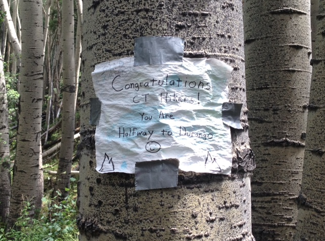 I reached Sand Creek at mile 10 and saw a piece of paper hung on a tree, congratulating the thru-hikers. We had reached the half way point of the trail! A big smile spread across my face and I paused for a minute, reflecting on the meaning of this point in my journey.