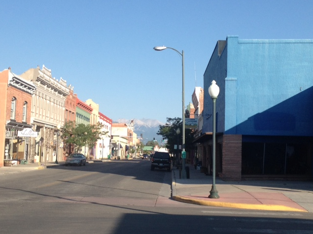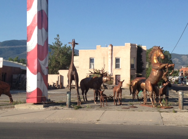 I saw a cloud that had a ring of sunlight around it like a halo, and decided to see if I could get a better view of it. I walked around the back of the restaurant, and a girl in an apron, sitting on the steps smoking, asked me if I had had a nice dinner. I told her I didn’t eat there. “Well, if you have some money, they have some really good food here.” I thanked her and walked on, then headed back to the river. There is an “S” on a dirt hill that you can see throughout town, and I saw that it was lit up in yellow lights as evening fell. Then, I saw the lights switch to a red heart! This town was growing on me.