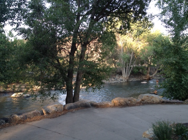 I walked down to the river and discovered a nice park! Right away, I felt more peaceful and comfortable. I had found the romantic part of town! I sat on some rocks and watched a couple paddle boarding.