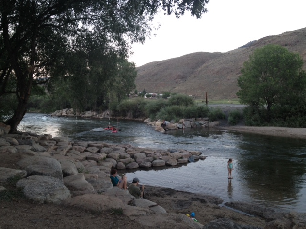 I couldn’t imagine myself living in any of the towns I had stopped in along the trail so far, including this one- until I found this part! I continued walking along the river and found the bluegrass band that the people at the community table last night had mentioned. I didn’t want anymore food, so I just stayed at a distance and sat on the rocks, watching a little girl play in the water while her father took photographs of her. I was very content.