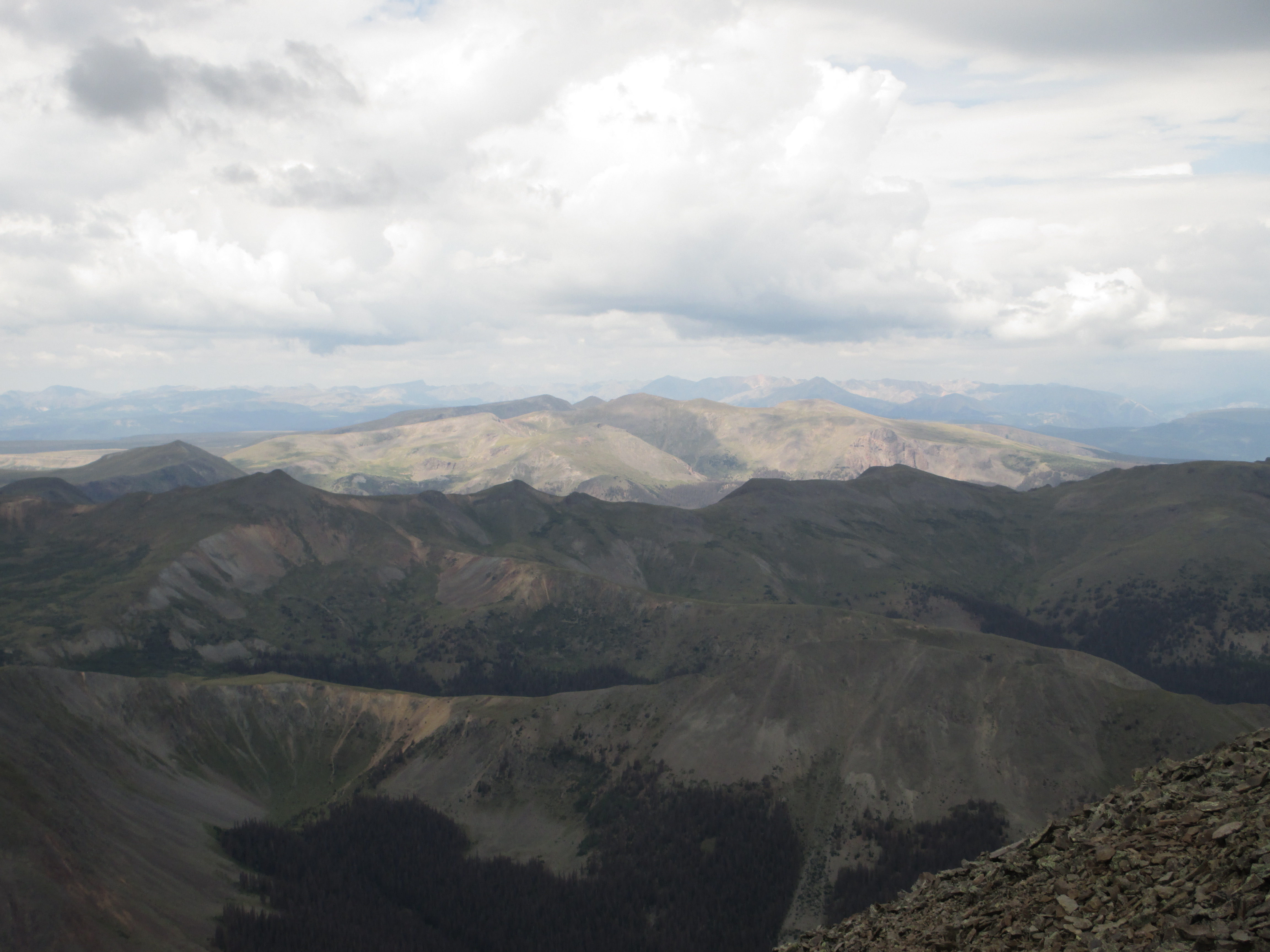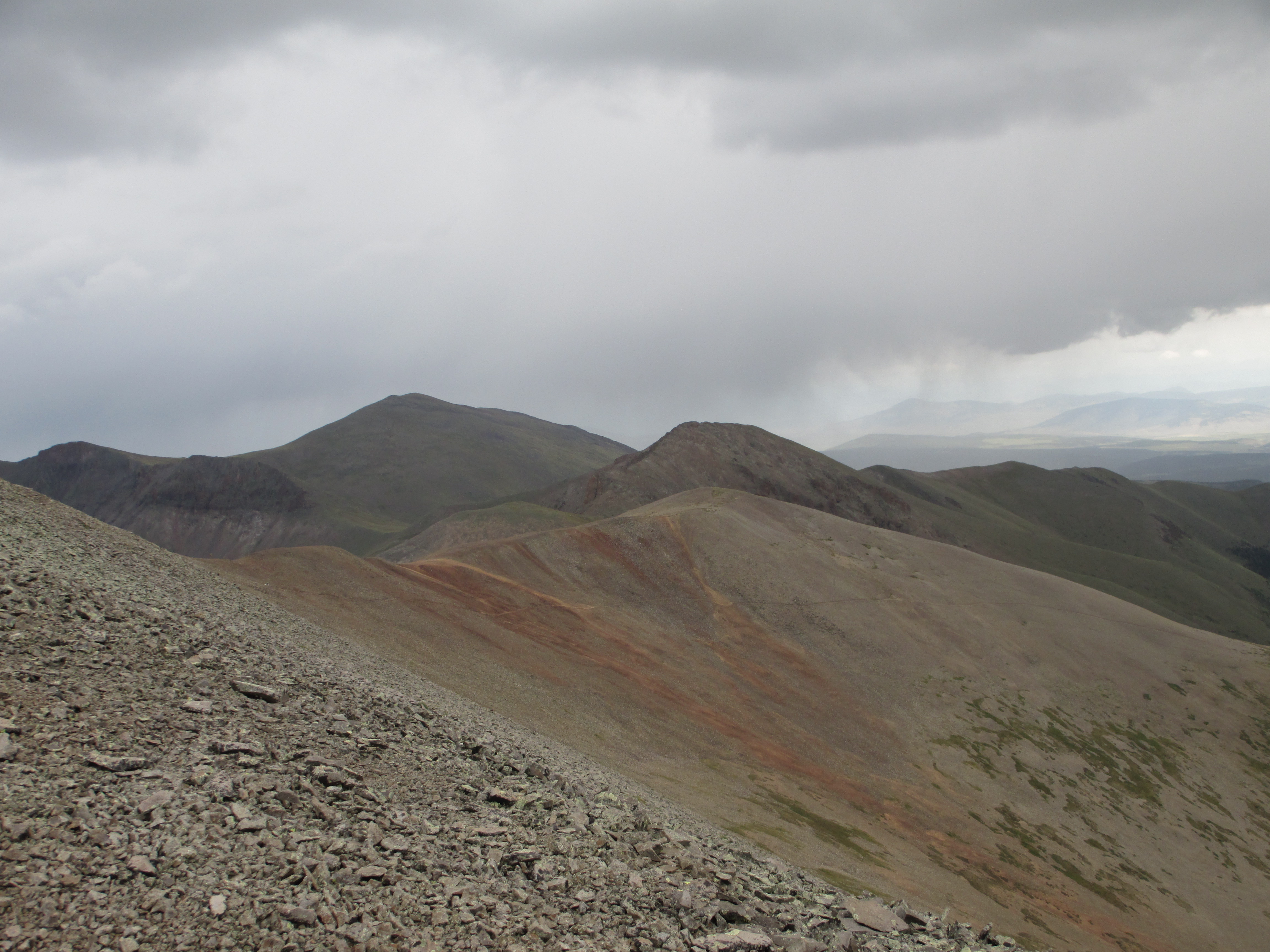 About halfway through, one of the girls and the son, passed me. They were descending easily without poles and weren’t slipping. I wondered why I couldn’t glide as easily as them. Why was I slipping so much while digging my poles into the ground? Rain began to fall and a feeling of slight panic and certainly pressure filled the air. As the father and daughter came closer to me, I half-fell, but managed to save myself. Then, I really fell (for the first time on this hike) when they were steps behind me. One of the girls who was in the first group to descend was stopped on the trail. Her boyfriend was helping her with her rain gear. I passed them. As the father and daughter passed me, he asked if I was okay descending alone. I thought that was kind of funny, as I had hiked the entire Appalachian Trail and now 340 miles of the Colorado Trail alone… If I had voluntarily climbed this peak and couldn’t descend on my own, that would be a big problem!)