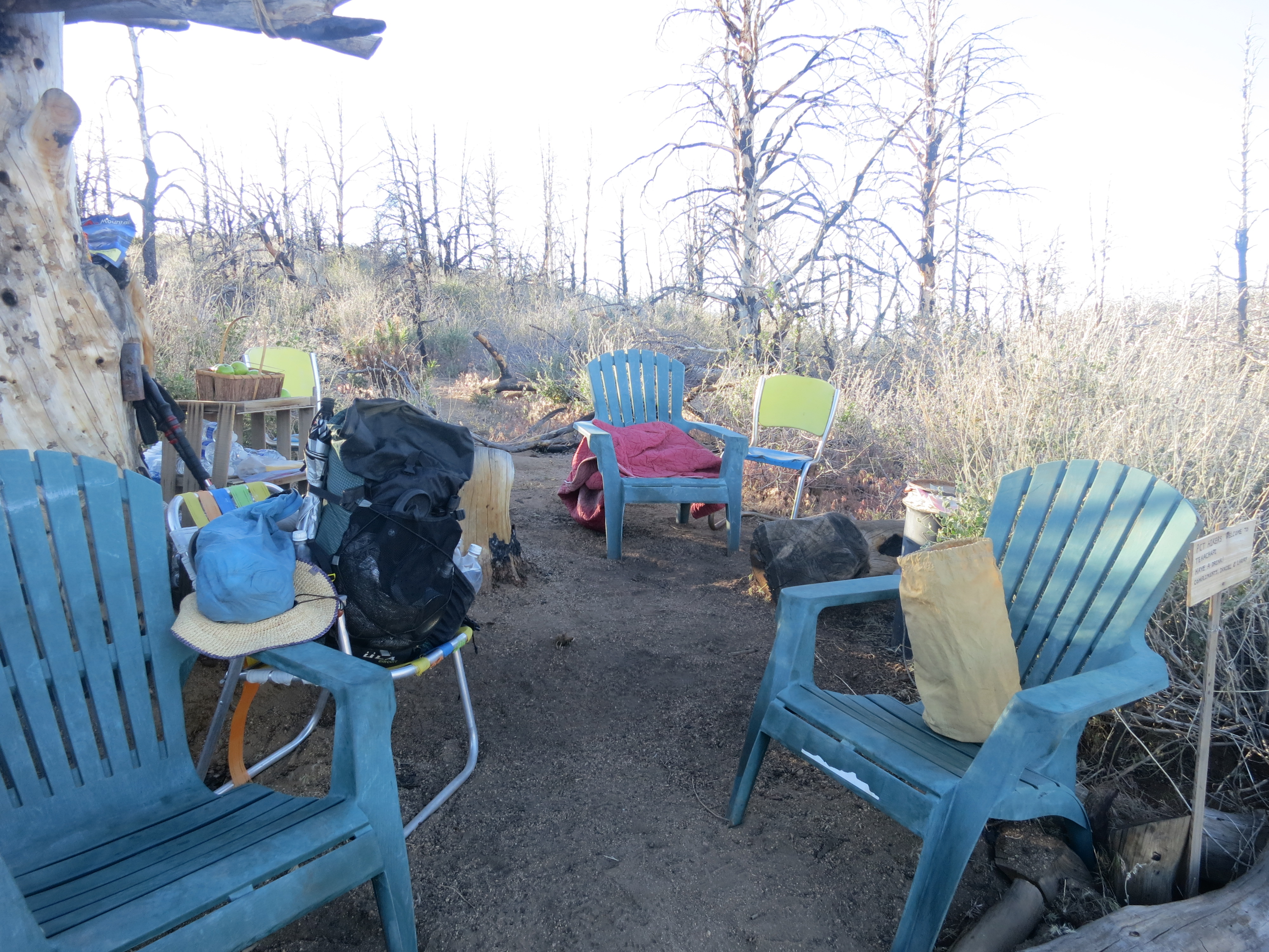 Weeds came along and asked me to watch their packs while they scouted out their campsites. She was afraid of bears taking them. When I told her I was going to move on, she was very dismayed. “Stay with us! We’re a hoot!”.