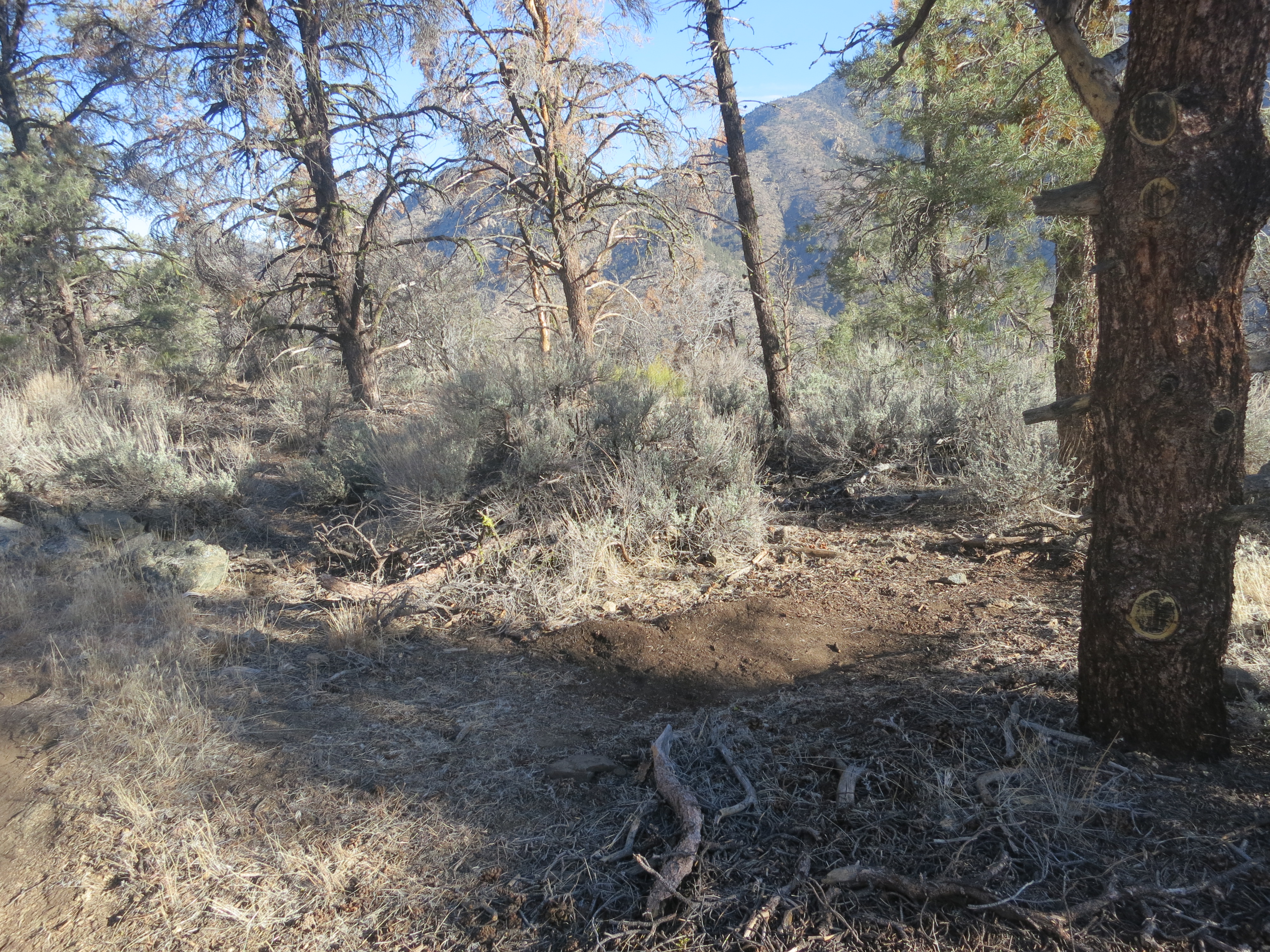 I knew that I wasn’t going to make it to the water trough tonight (where I thought everyone else was camping) and started scanning for a place to camp. Just above a bend in the trail, I found a space that would just fit my sleeping bag. I wedged it in between a bush and rock, put on my warm clothes, and washed up. I was talking to myself, as I was taking out my contacts and was startled my a hiker. I told him I didn’t think I knew him. He said his name was “Jug.” I wished him a goodnight and tucked myself in. It was 53 degrees by 8:20. The temperature had dropped quickly and the winds began to pick up…