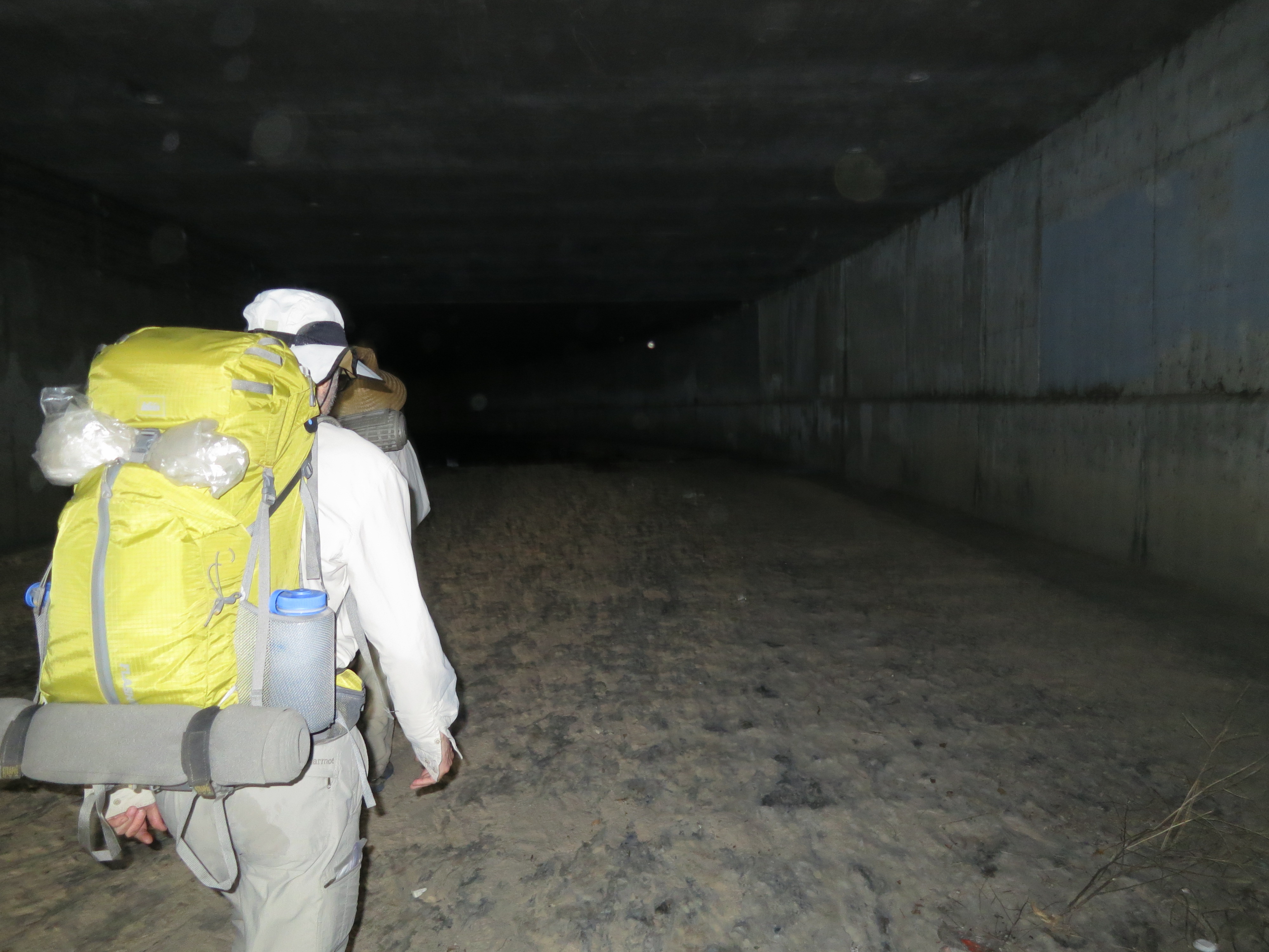 The moon was full and the night air was pretty as I headed out along the road and across a field. Soon, the sun disappeared and darkness took over. I had my headlamp ready. I got very confused at the road crossing and went back and forth looking for the trail and then, I was finally on my way! I reached the LA aqueduct, which at this point was an open canal. As I looked back at a bridge crossing the water, I felt like I could be in Paris right now! I followed the water, checking my GPS often to make sure I was on the right course.