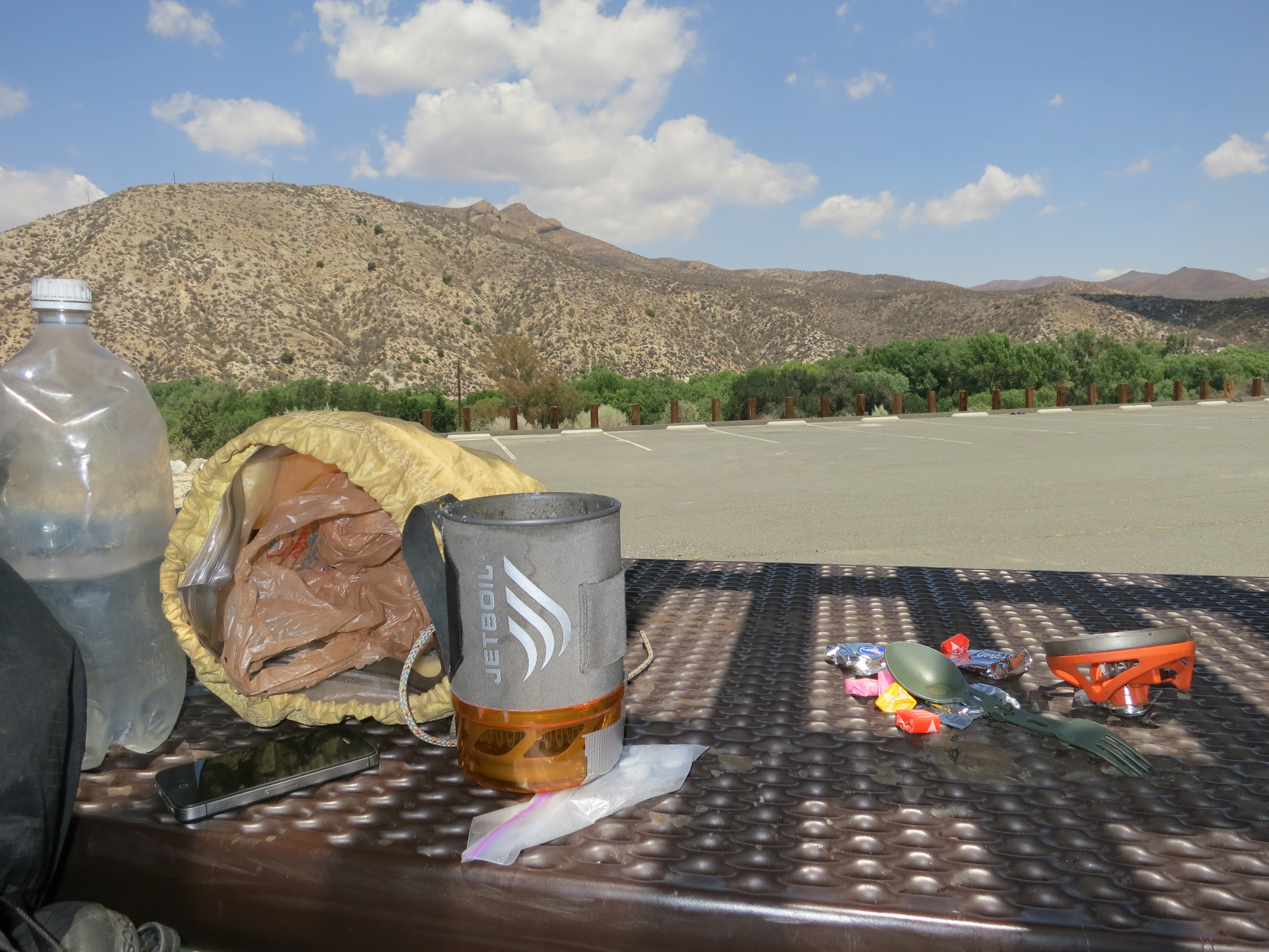 I returned to my things and found that Mark and Chip had come in. Everyone seemed to be planning on spending the night and waking up around 3 to start the desert hike. I preferred to hike during the late night and sleep in the morning. My box did end up arriving, which I was extremely thankful for- especially when I discovered that they had put my second pair of shoes in there! I had asked for them to be put in the Mojave box since these ones still had some miles left in them. It’s a good thing I didn’t have to walk away from that box!