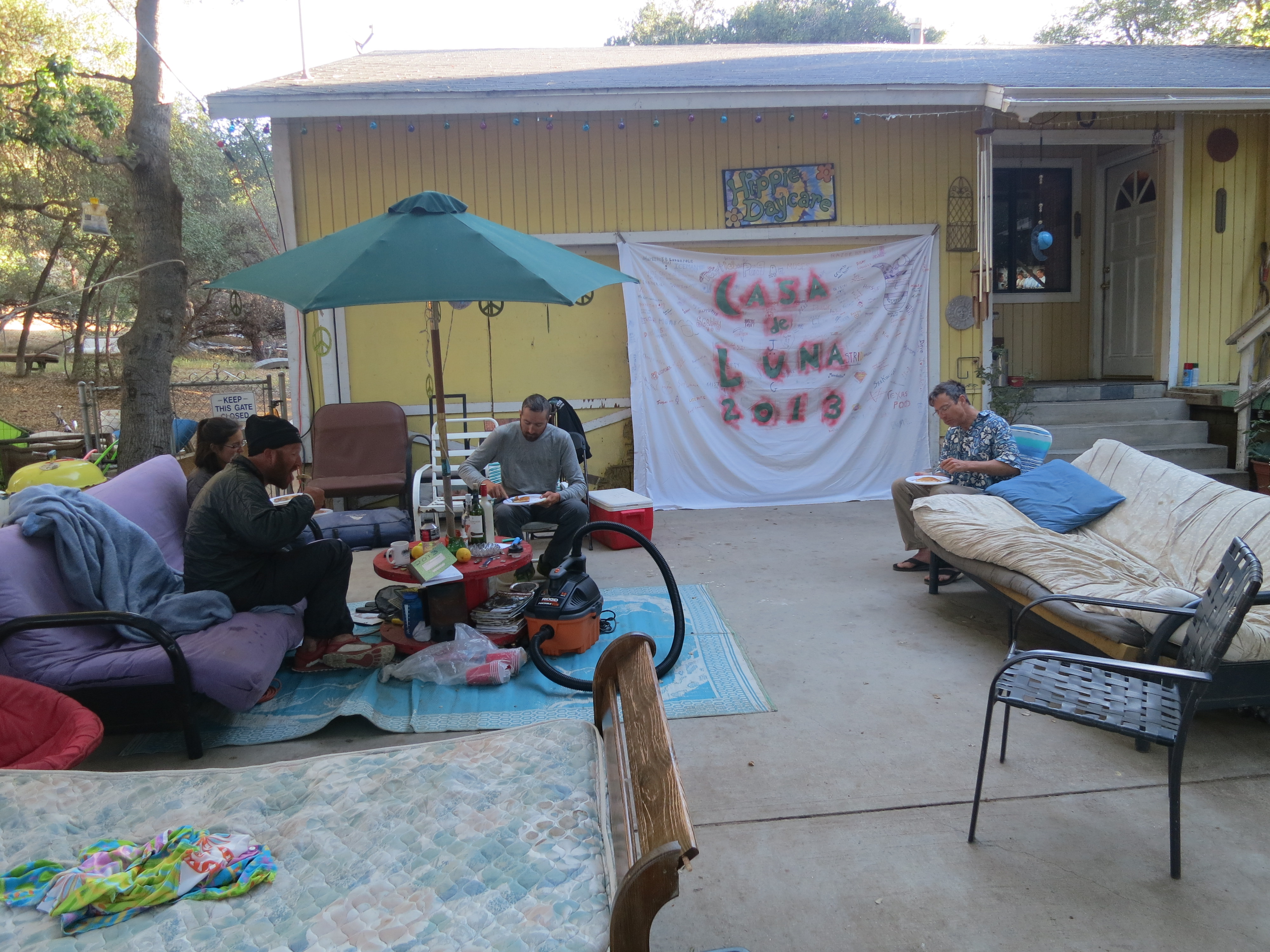 I returned to the couch and rested my head on my pack, as I needed to get in a little nap. Cattywampus walked past me and loudly said, “Did she fall asleep right here?”. One of the employees noticed that this wasn’t the best place for me to sleep and asked if I wanted a place to nap for a little while. I nodded. This room was too loud. He took me to his room, with the TV blaring and said I was welcome to hang out there, pointing to the bed. I told myself in my tired state that “this is normal…”. (“Normal” takes on a different meaning when you are a tired traveler at the mercy of others). I was about to step into the room when he said that wasn’t what he had in mind, unless I was thinking otherwise. It was now getting weirder! He then took me to another room with no TV and said I could sleep there unless I got lonely. I asked if I could bring his dog in with me. I lied down on top of the bed, but I wasn’t feeling comfortable enough to actually fall asleep. And the dog wanted to go back outside. I stayed there for about an hour, and then headed back to sort through my things. I was made fun of by some of the hikers for my nap. (?). By this time, the owner had come in, and had a captive audience listening to his stories on how this place came to be a haven for PCT hikers. The sun was starting to set and I needed to be on my way. “But he’s telling really interesting stories!” someone said.