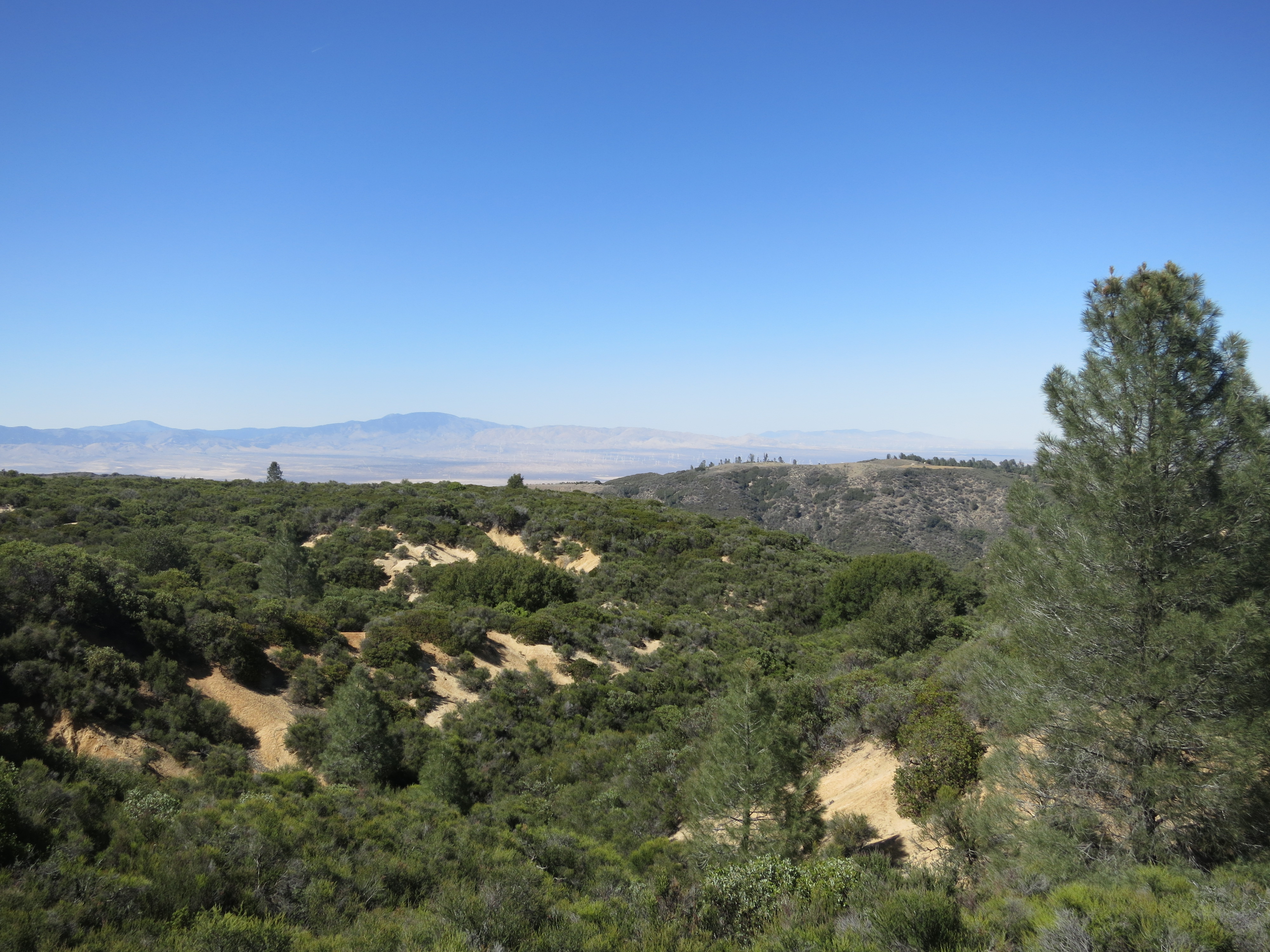 I could see the soft green folds in the distant mountains. When I reached a dirt round, I found a rock to sit on and snacked before the trail took me back into the trees, and eventually wound down the side of a mountain.