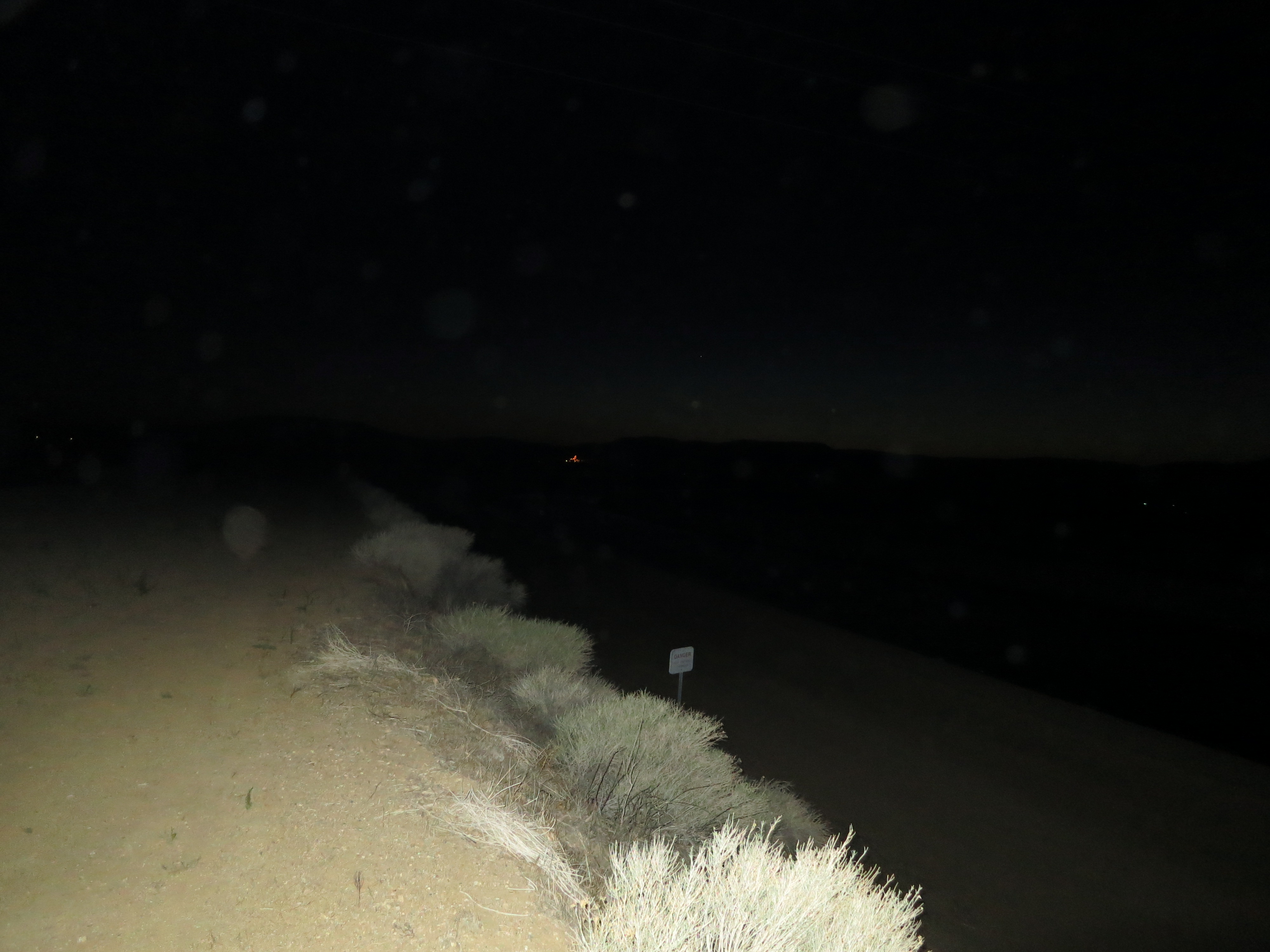 At one intersection that I had continued straight ahead on, I decided to double-check my GPS and make sure I was still on track. I wasn’t! I went back and took the right hand turn, wondering how many people had made this same mistake, especially in the dark! There were a couple more intersections ahead and I took my time making sure I was following the PCT. I would stop and pee and rest my shoulders and snack, as usual, and for the most part, my energy remained pretty strong. But then, I started feeling tired.