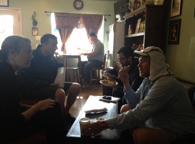 I sorted through my food and other resupply items, re-organizing for the next stretch of trail. Chip, Mark, and the Chief had decided to order some lunch and I figured I might as well have some real food, too, rather than eat my disgusting backpacking food. I hadn’t planned on spending the money, but for $10, you could get salad, a meal, and ice cream. When I cut into my chicken, I discovered it was still raw and wondered what to do. I returned it to the lady who had cooked it and waited for her to cook it some more. It definitely wasn’t the greatest meal!