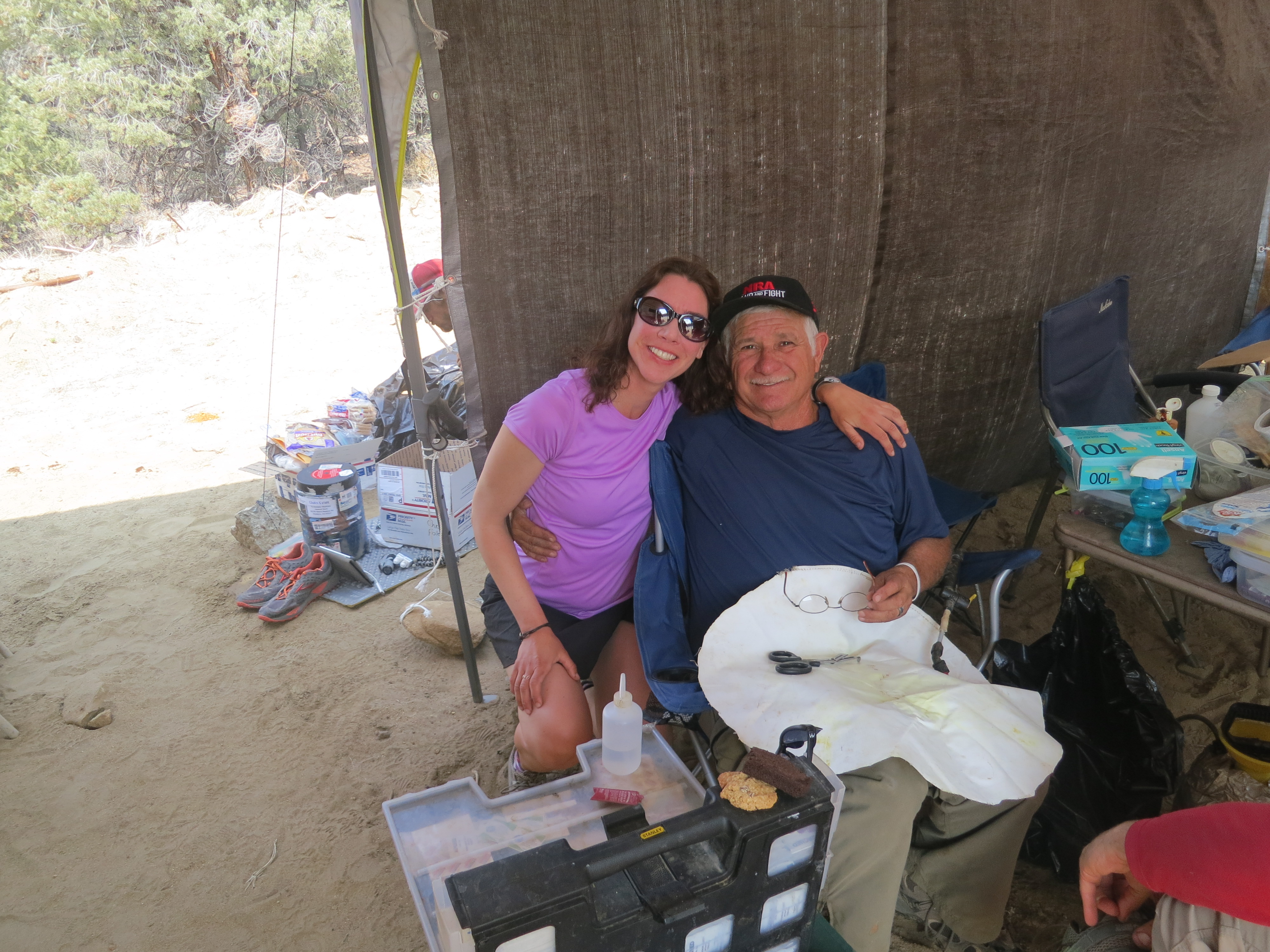 Scott, one of the store workers at Kennedy Meadows, had given Weeds a gatorade bottle filled with Tequila to help her get over this momental place on the trail. She welcomed us to share it with her. I had never tasted Tequila before, so I tried it, hoping it would help kill my stomach bugs. It was not too strong! Ice Bucket shared his Good n Plentys, and we talked and laughed, and then headed off to sleep. Weeds wanted to step under crossed hiking poles raised over her head to the sound of Chariots of Fire in the morning.