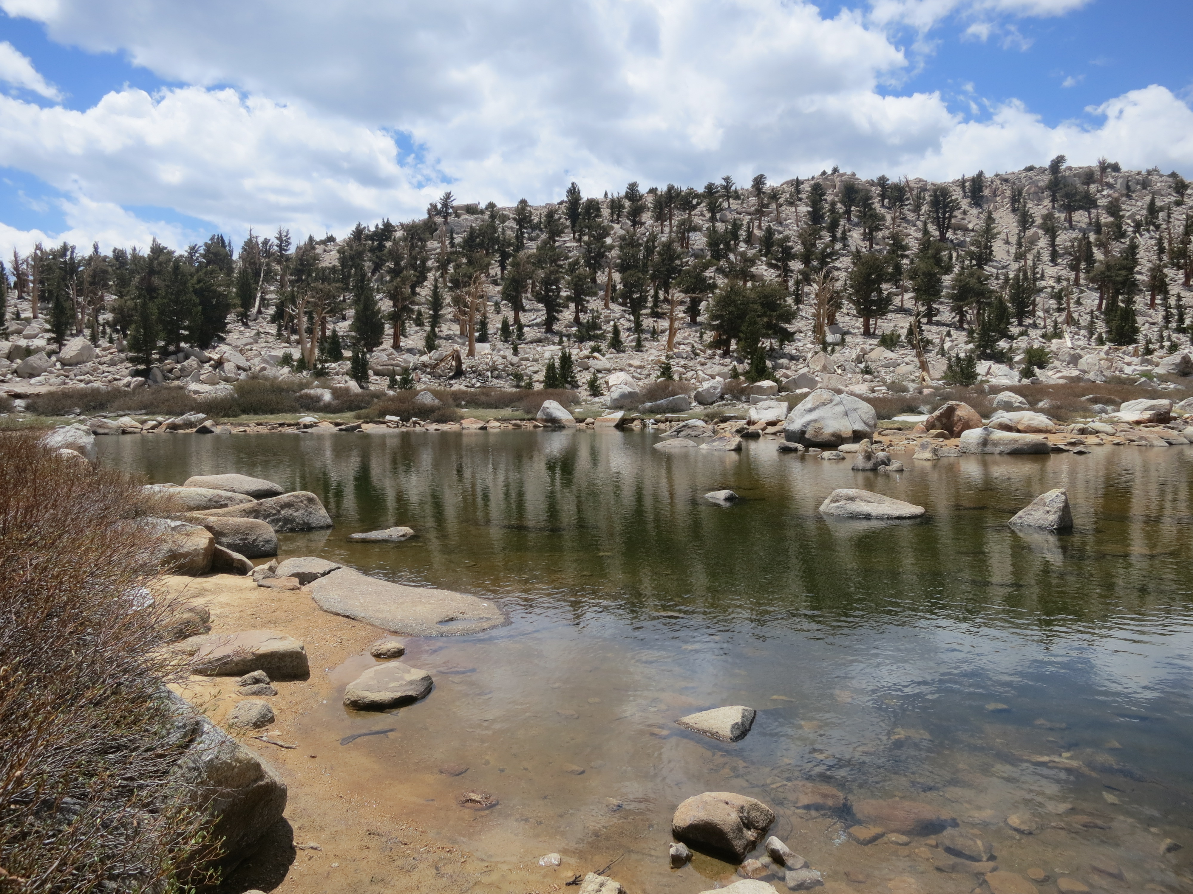 I lingered as long as I could and then got moving again. Weeds and Drama had left long before me. As I was climbing away from the lake, another hiker caught up to me. He had just come back from Lone Pine on the Cottonwood side trail. He walked with me and I was grateful for some conversation to distract me from my stomach pain. He told me his story about the lady at the Lone Pine Post Office. He knew exactly how many letters and packages had been sent to him, had the tracking numbers for the packages, and went up to her and asked for them. She came back and told him there was nothing there for him and told him to come back later. He returned just before they were to close, and once again, she said there was nothing there and that he should check back in the morning. He returned, told her to forget the letters and other packages- he just needed the package with his shoes in them. She quickly looked and again said there was nothing for him. This time, he would not take no for an answer. He told her that he had nowhere to go except the trail and that he couldn’t hike unless he had his shoes. Until she was able to give him the box that he had the tracking number for, he would set his tent up in the lobby and wait. She took one more look and came back with every letter and package that he was expecting, explaining that it was out of alphabetical order. Oh, boy… This worried me because I had my packages sent to that post office, as well!