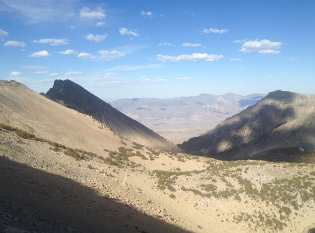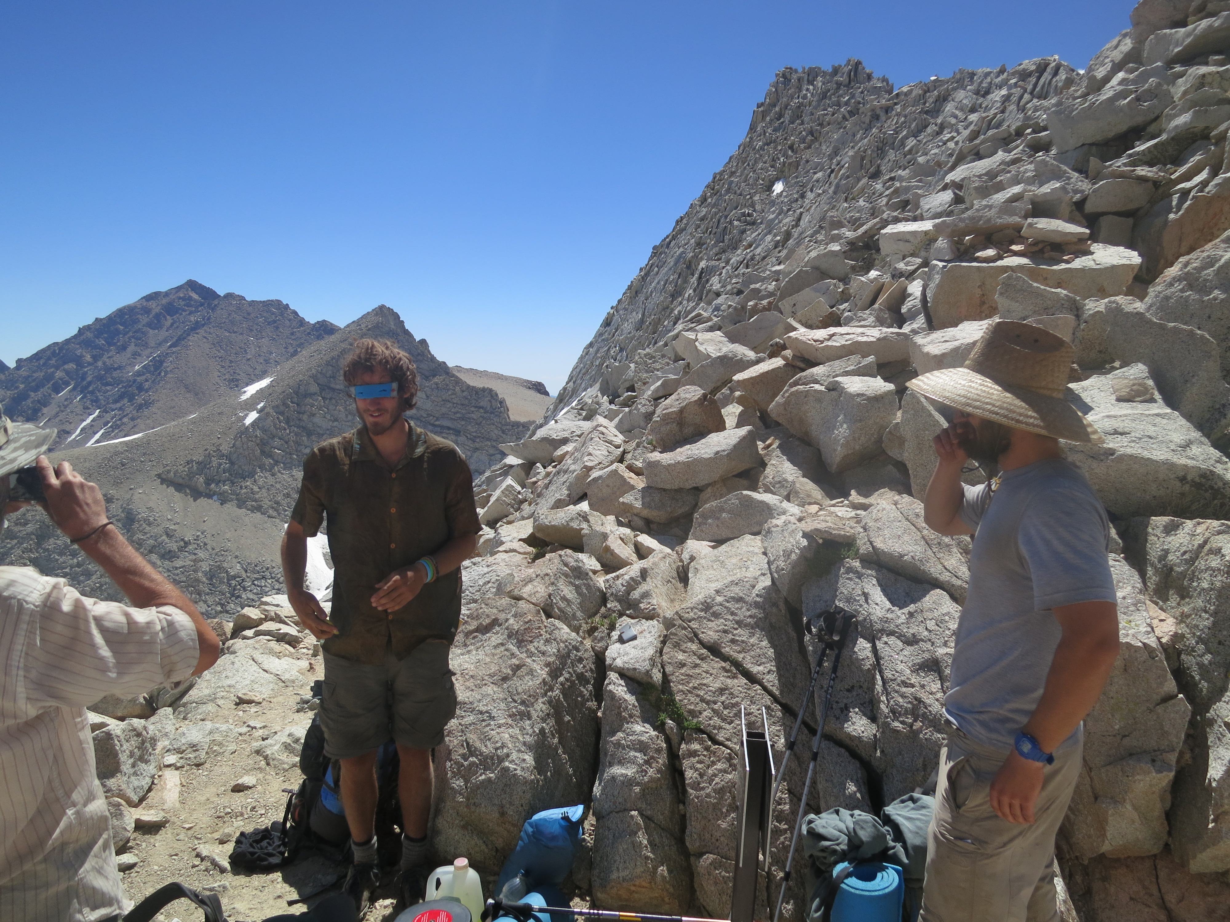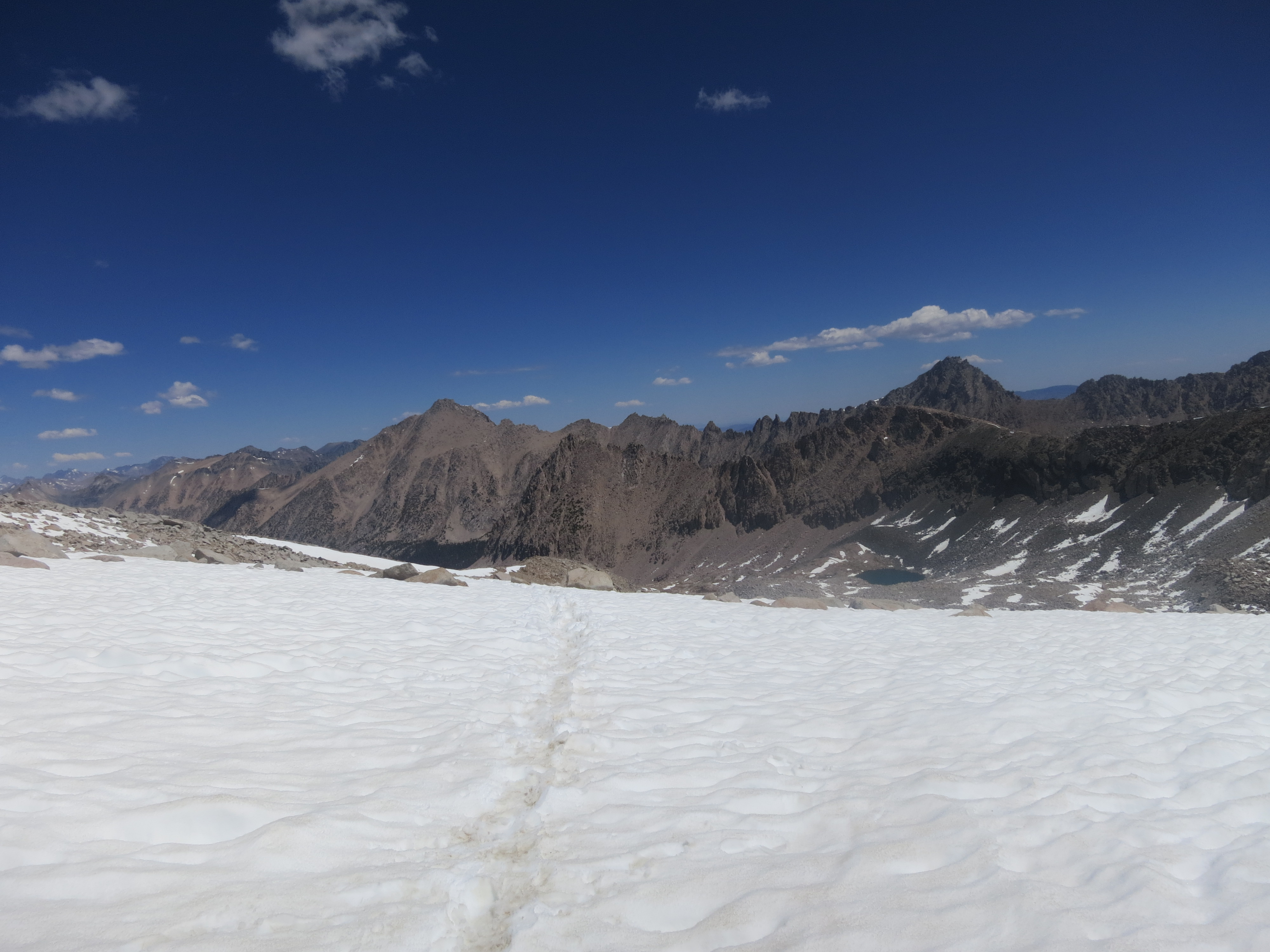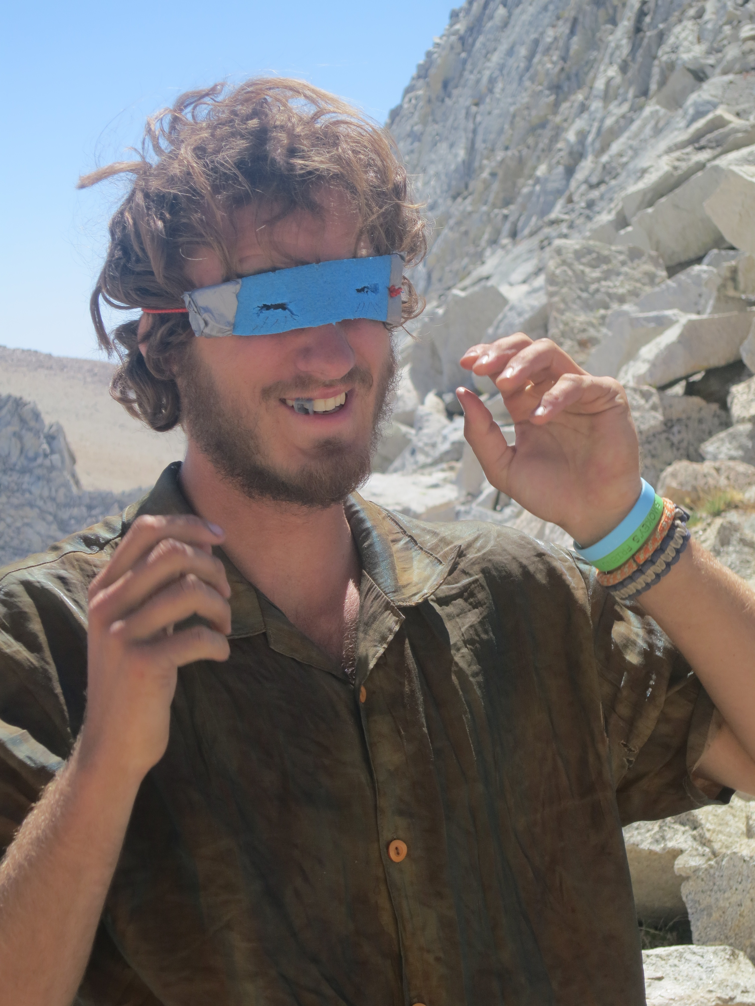 Bambi had cut some of his foam sleeping pad off to help Jug make some temporary “sunglasses” by cutting slits into them. For some reason, Jug had decided not to hike the PCT with sunglasses and now seemed to be suffering from the symptoms of being snowblinded, although we hadn’t yet come across much snow at all. The north side of Forrester pass was a different story, though. The sun had not yet had a chance to melt a good deal of snow on that side of the mountain!