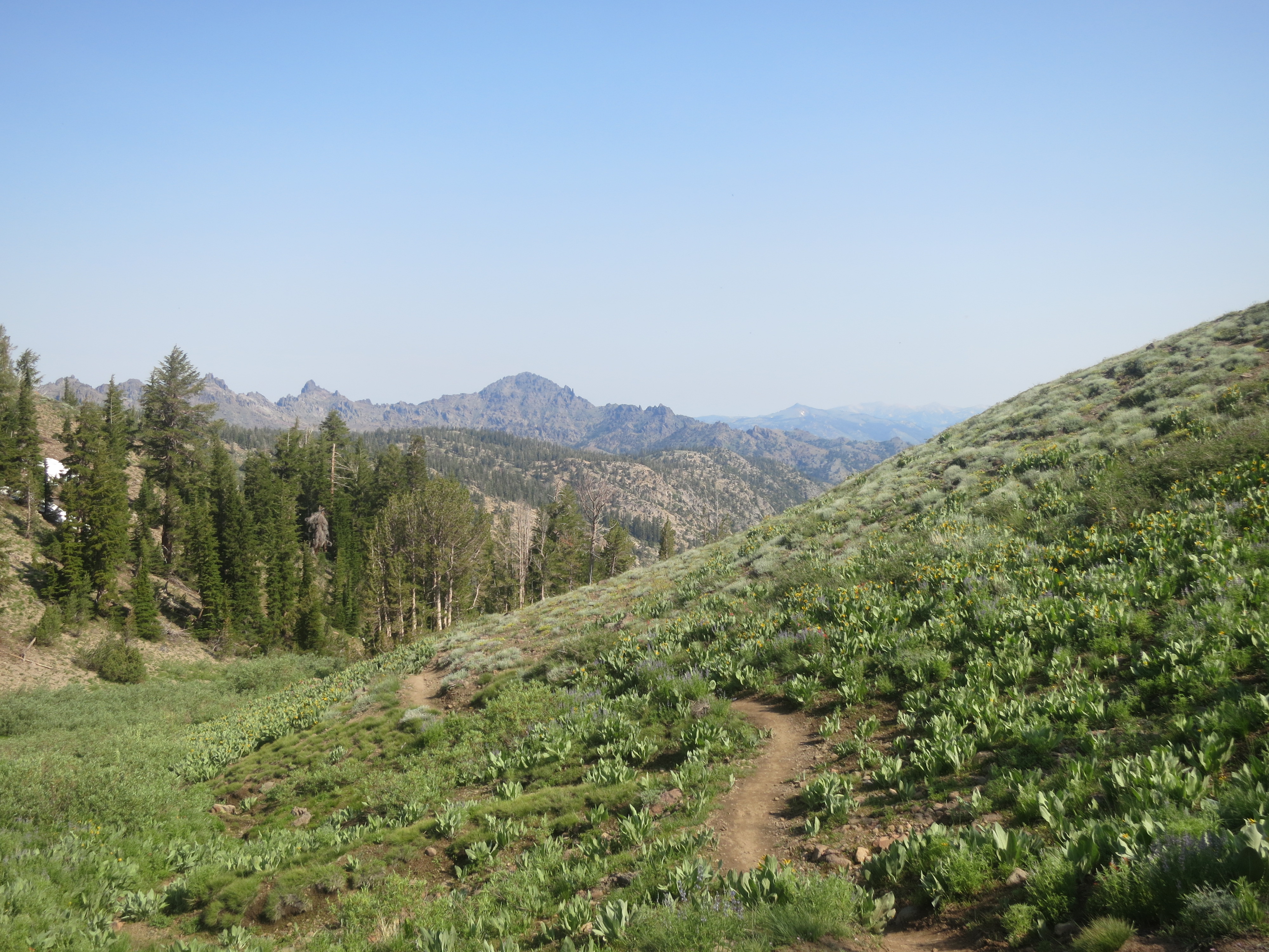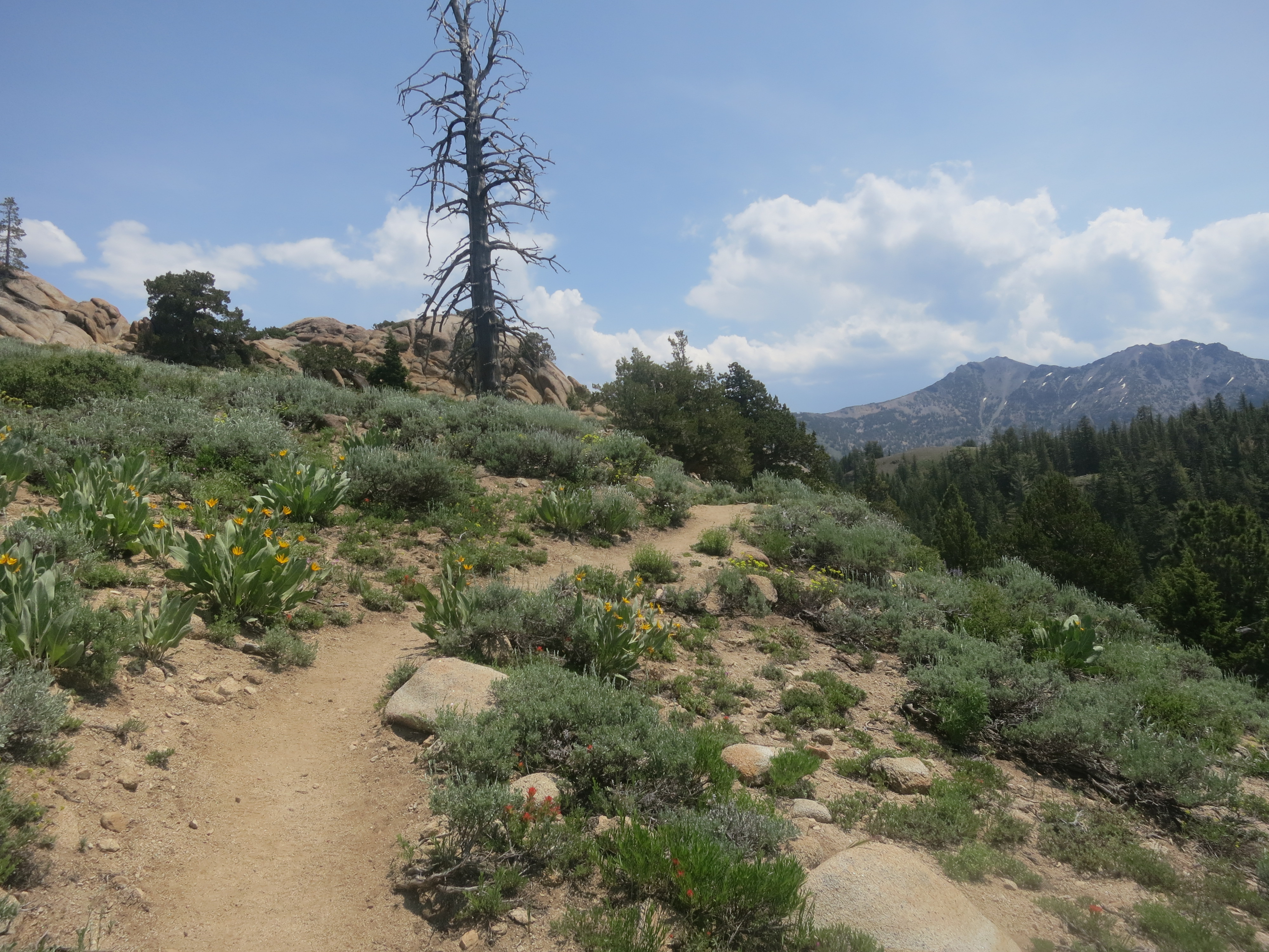 By mid-morning, I saw a hiker heading towards me. He looked familiar, and as he approached, I saw that it was 5-Star! “Why are you walking the other way?” I asked. He explained that he had hurt his foot after Sonora Pass and spent a few days in South Lake Tahoe to let it heal. He decided to hike this section southbound and then planned on spending another day in South Lake Tahoe. After about 20 minutes of chatting, he told me about some trail magic at Ebbetts Pass and we agreed to meet up in Tahoe for a meal.