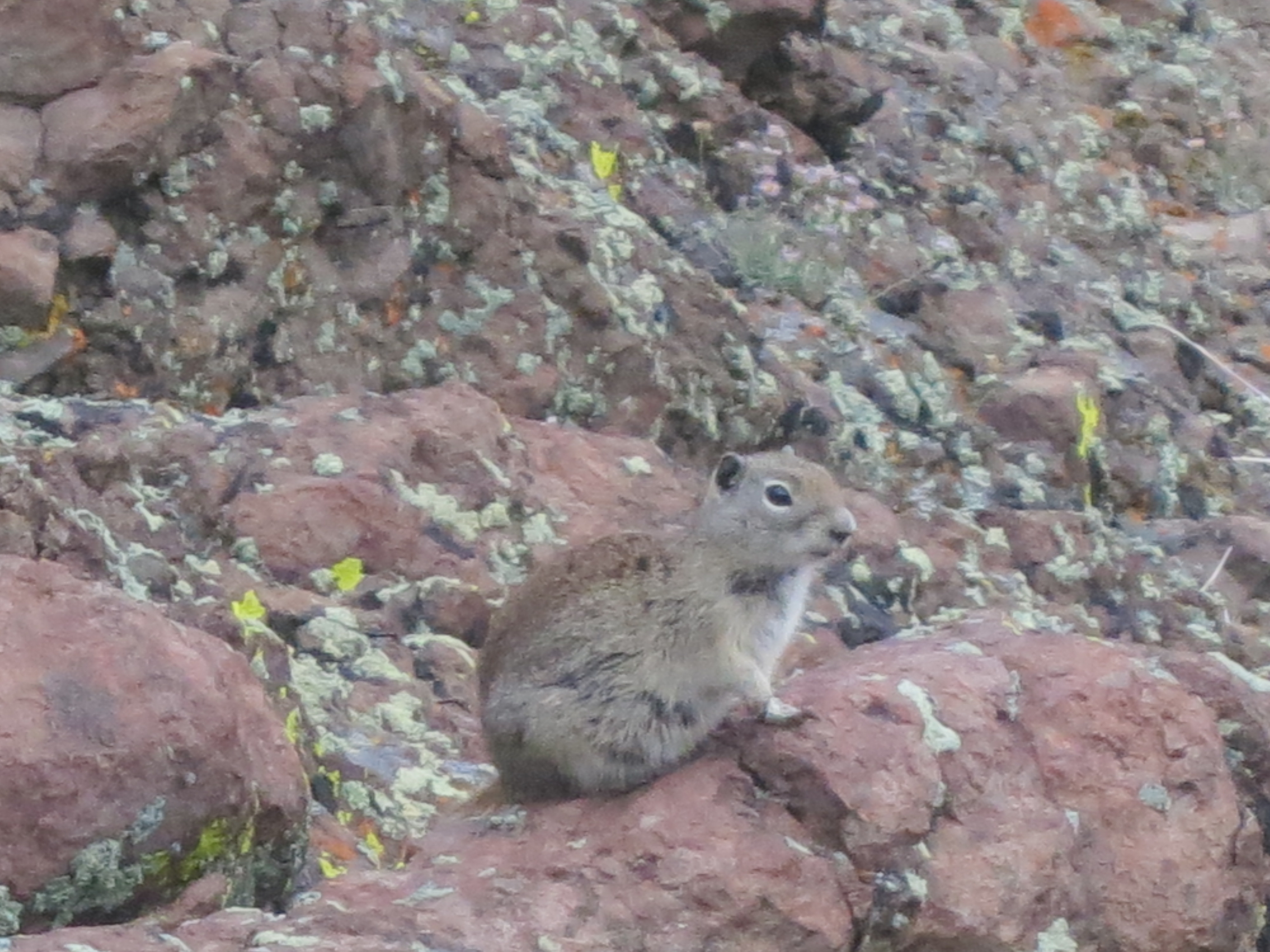 I reached the top of a hill and pulled my camera out of the ziplock bag I had put it in, so I could take a picture. I also decided to see what mile I was now at. The hiker, who I learned was named, “Two Hats”, caught up and wanted to know the mileage as well. He commented that, due to the scarcity of rain out here, he didn’t know what to do when it rained anymore! I agreed.