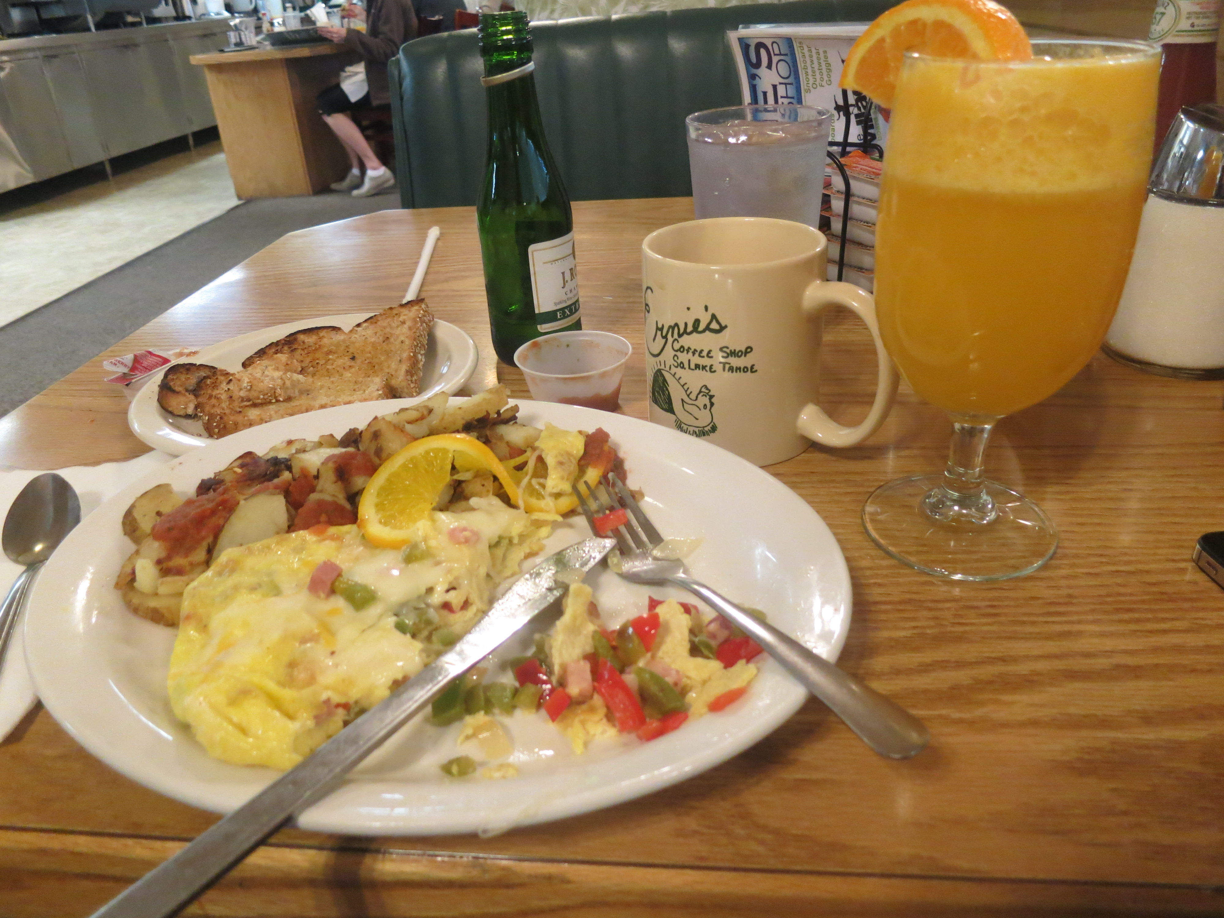 I headed over to Ernie’s for breakfast again, and this time decided to have a celebratory mamosa with my meal. After all, I had just walked over 1,000 miles and it was the 4th of July!