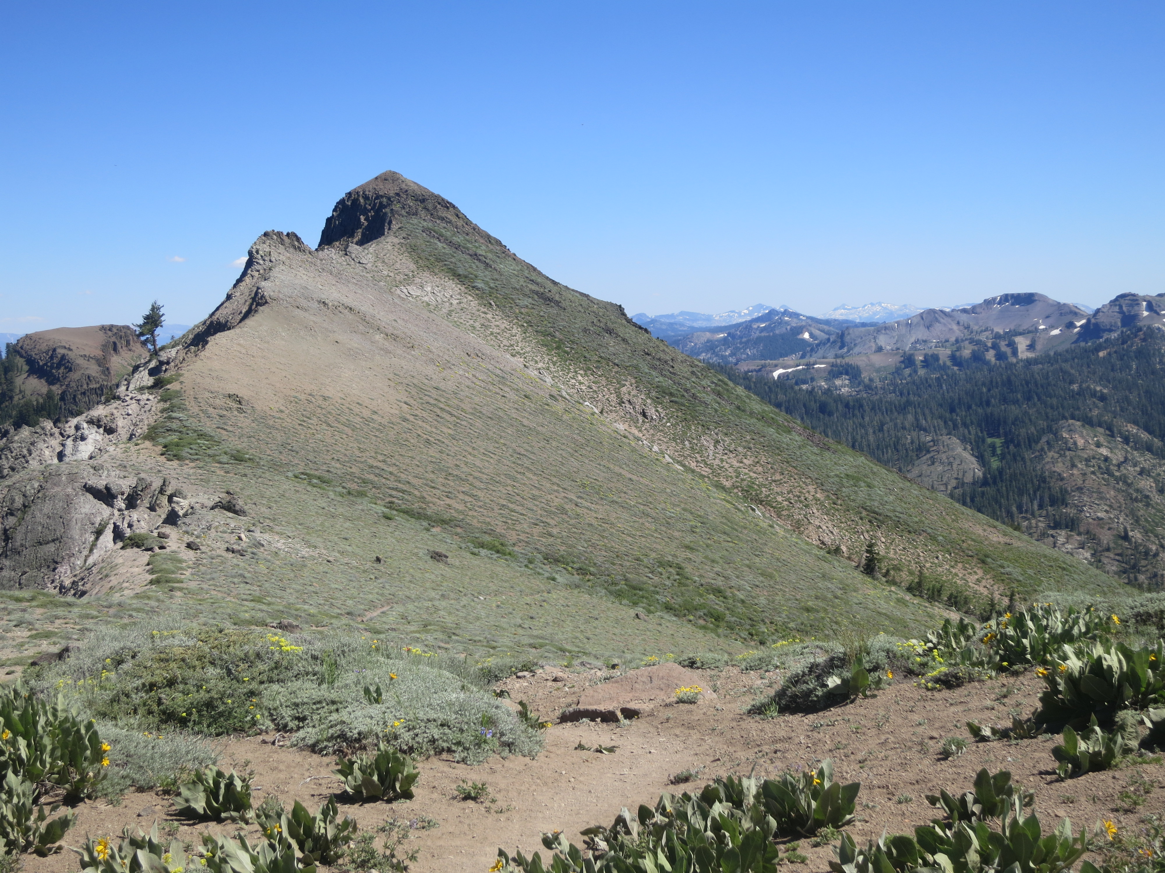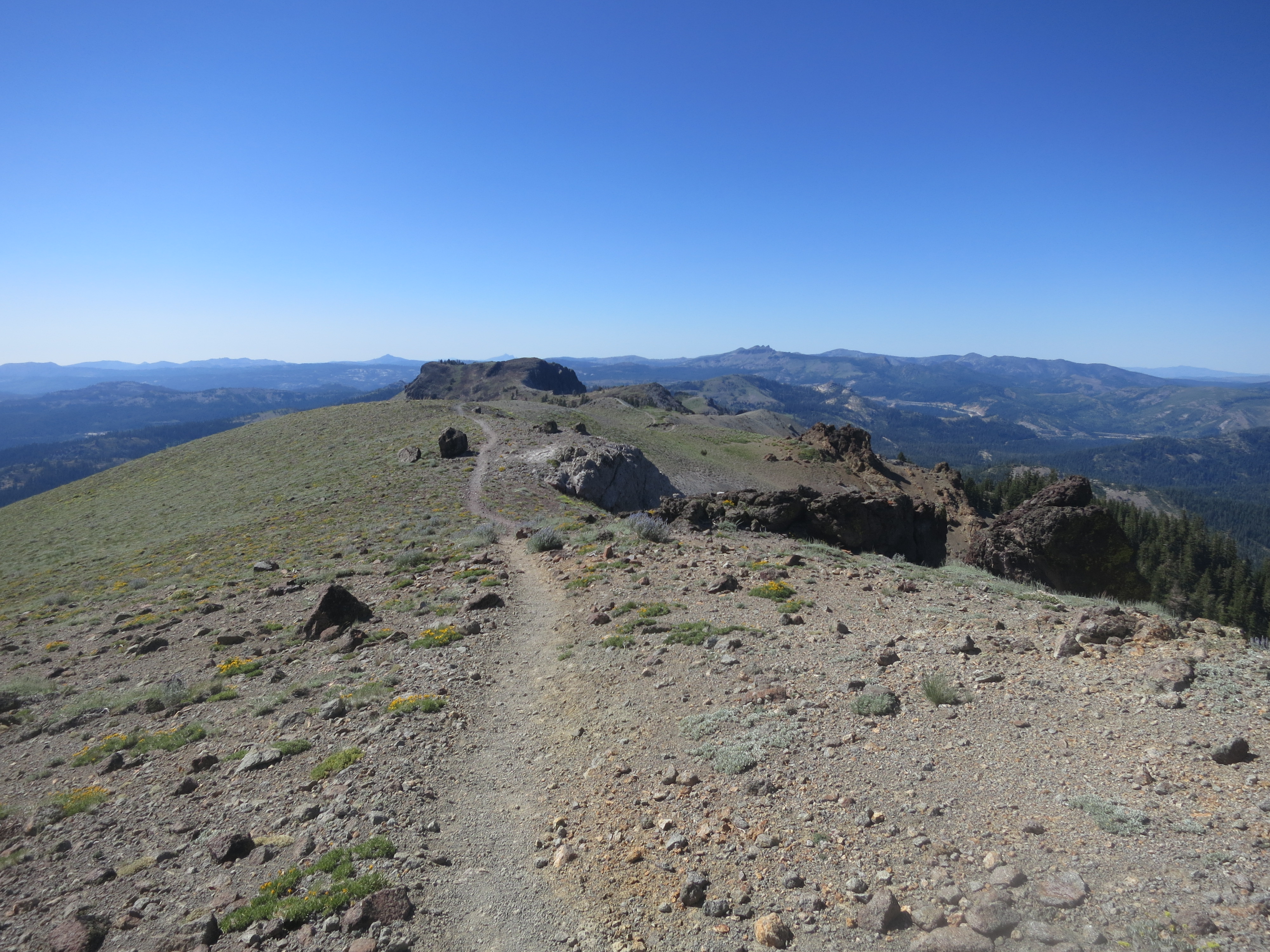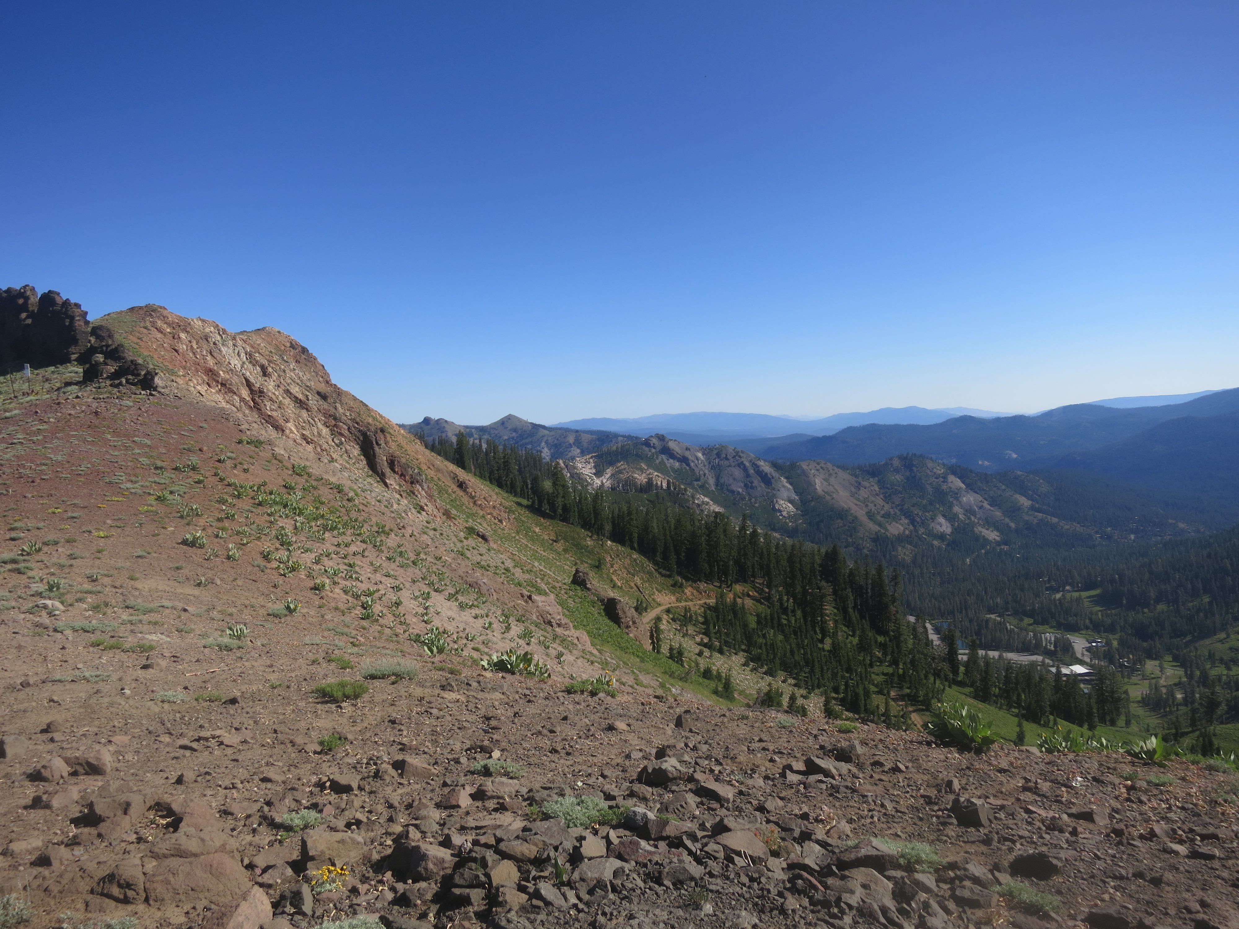 I stopped to eat lunch at the top of a climb and realized that I was overlooking Squaw Valley, where the 1960 Olympics were held. I tried to take in the significance of this spot, as two of the Israeli hikers approached. One asked if there was reception here and proceeded to stop as well. I had been wanting my own space, but remained there to finish my snack as the one guy made a phone call and then joked with the other one. It was hot in the sun!