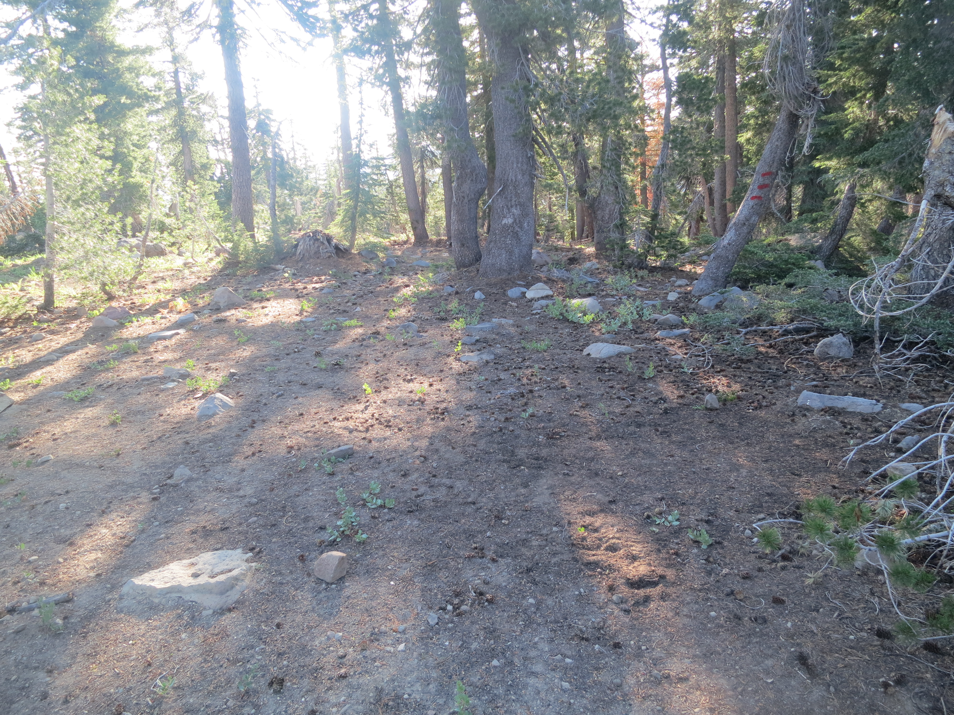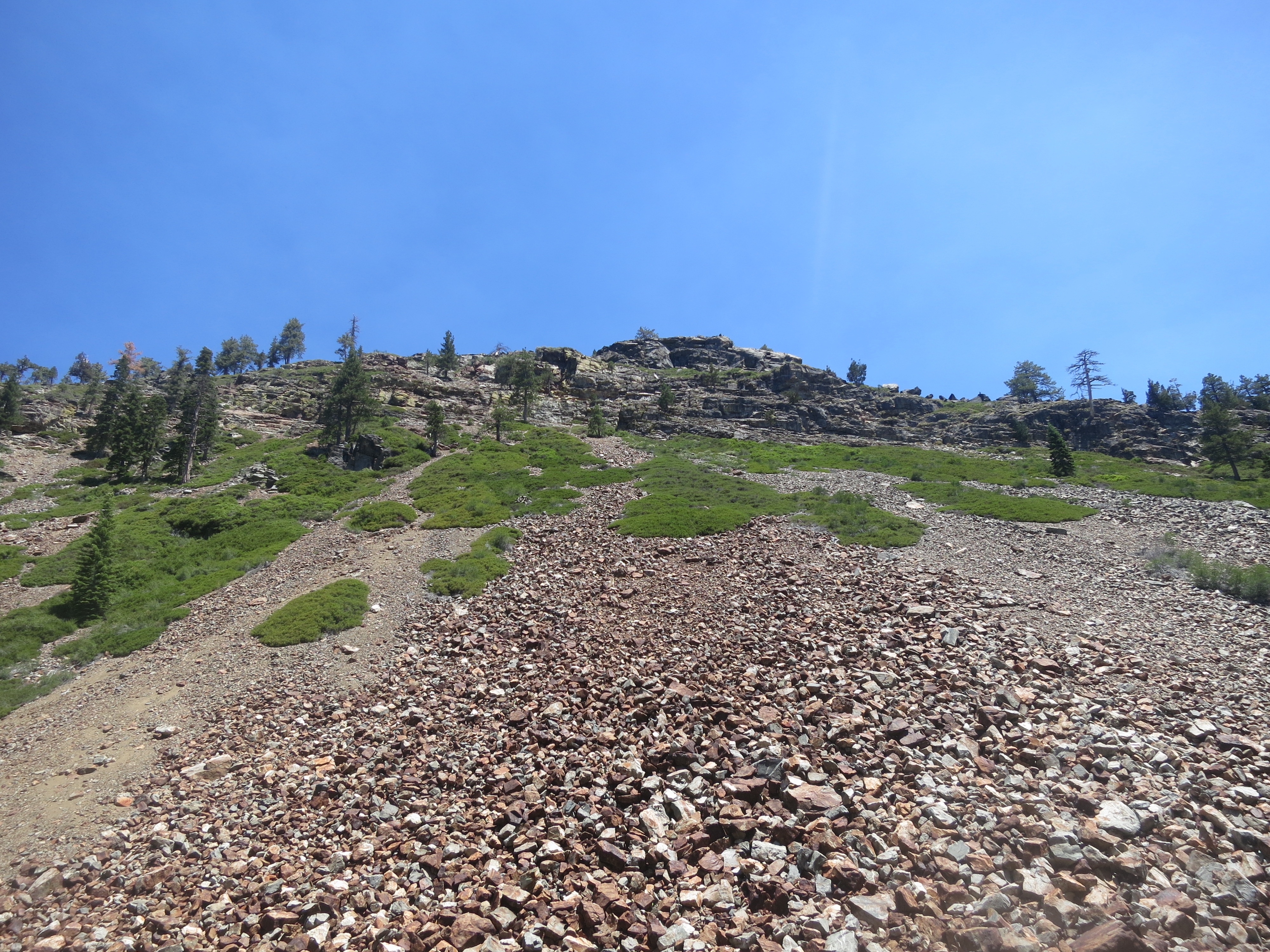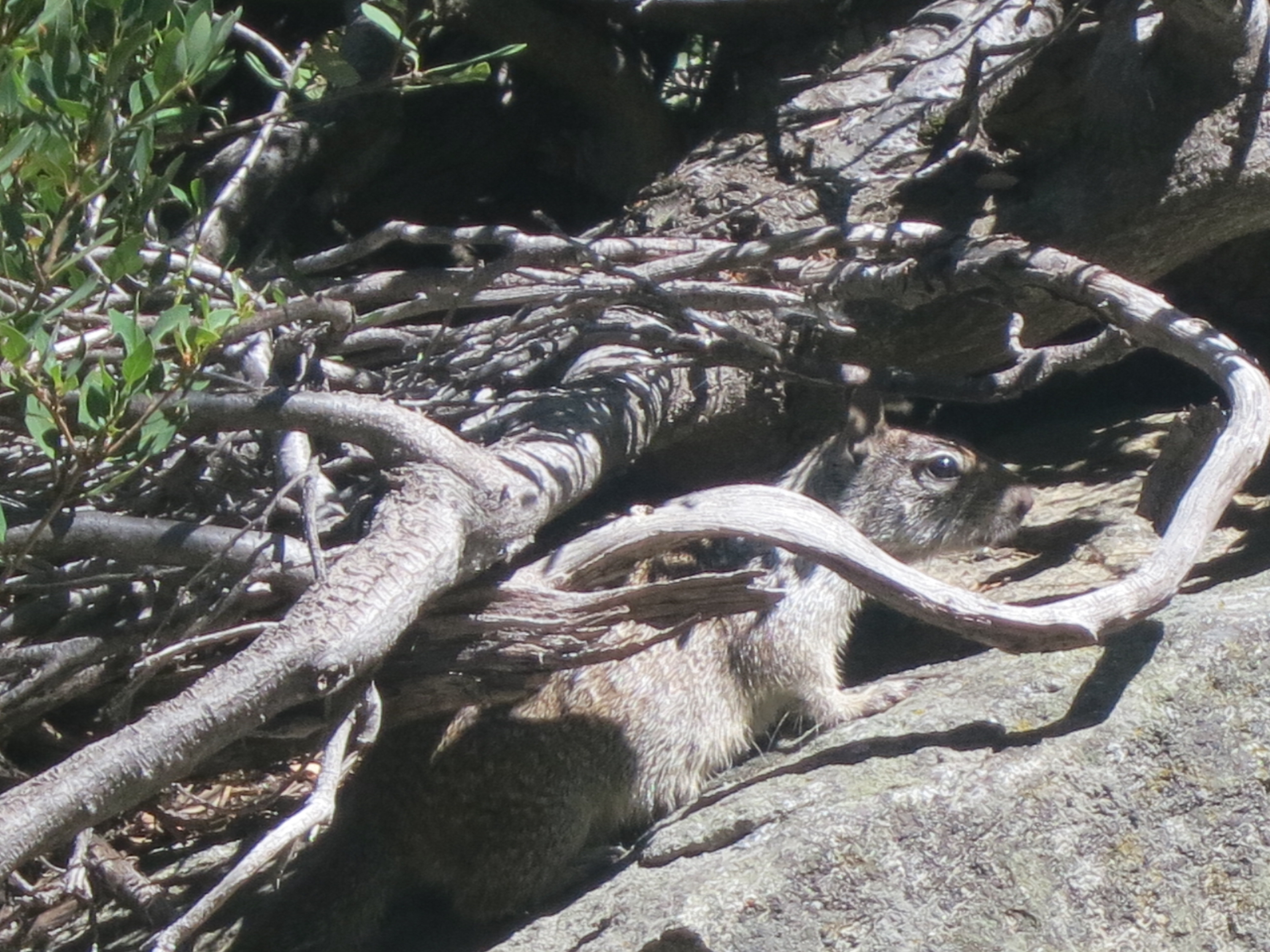I continued downhill and later ran into a man who was out running on the trail. He stopped before I got near him and seemed a bit annoyed about having to do so. A few minutes later, I sat down for another break. He turned around and started chatting with me. He talked about how crowded the PCT is with us thru-hikers and how hard it is to keep stopping to let us go by. He asked me if I had seen the guy with the tiny pack and we both wondered how he was hiking the trail like that! It looked as if he was carrying an empty daysack! He told me that he taught nature classes and could tell me anything I wanted to know about the flora and fauna out here. He said he loved how everything was interconnected. It was fascinating to find out a few things about the plants around me and I wished I had the time to learn more about what I was seeing. My hike would be so different! He told me that he had seen a bird’s nest on his way through and was going to go back and check it out. When I didn’t follow him, he invited me along! It was on a ledge of a big rock and I had to jump up to get a very quick and tiny peak! He said he wished he could have lifted me up! I felt lucky to have been where I was at that moment. He invited me to hang out at the nature center if I had time and then continued his run as I slowly meandered on.