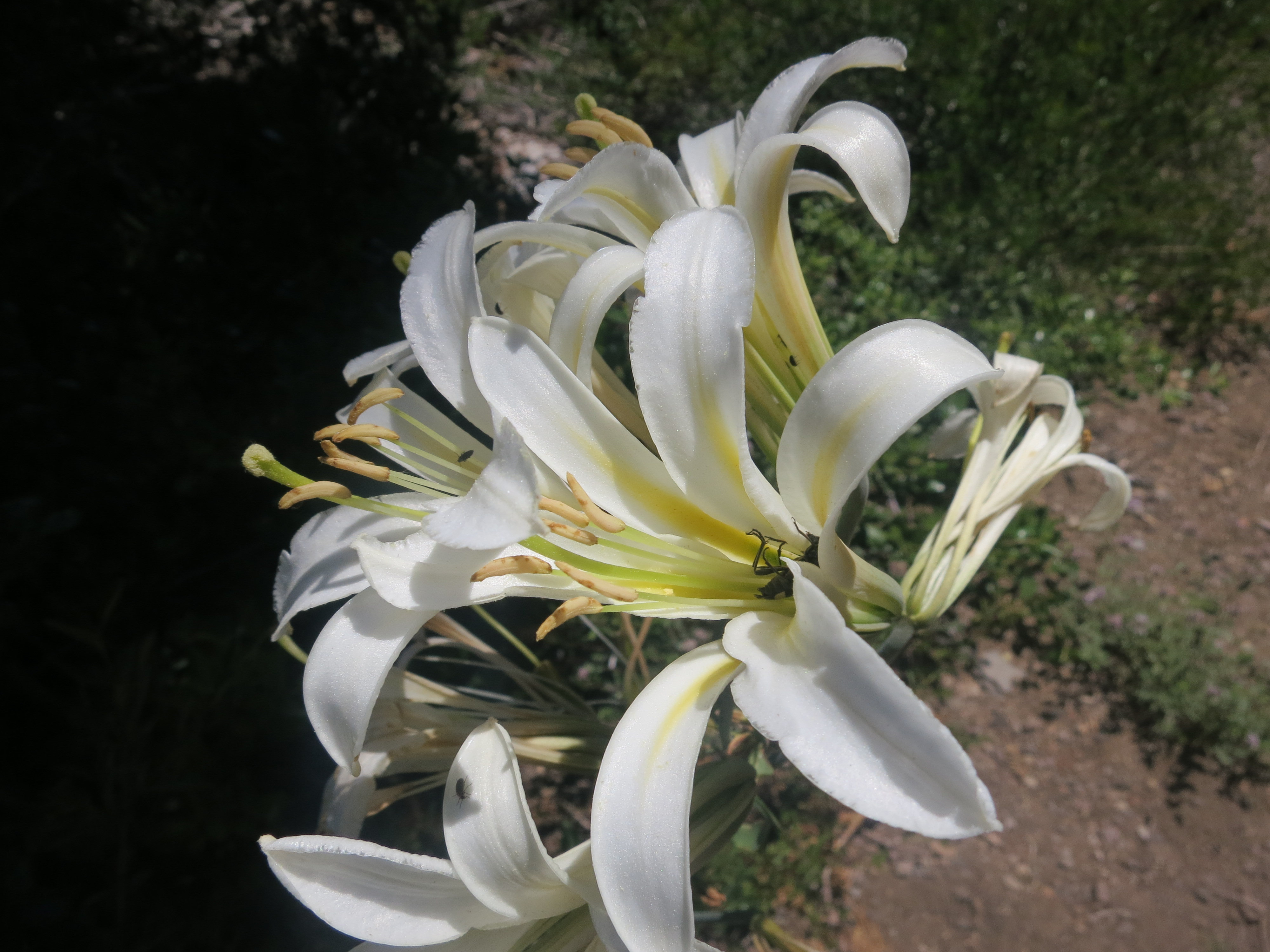 The trail climbed again and I walked by some beautiful white lilies, which I love the smell of and watched some butterflies flittering on the ground together as if they were gossiping.