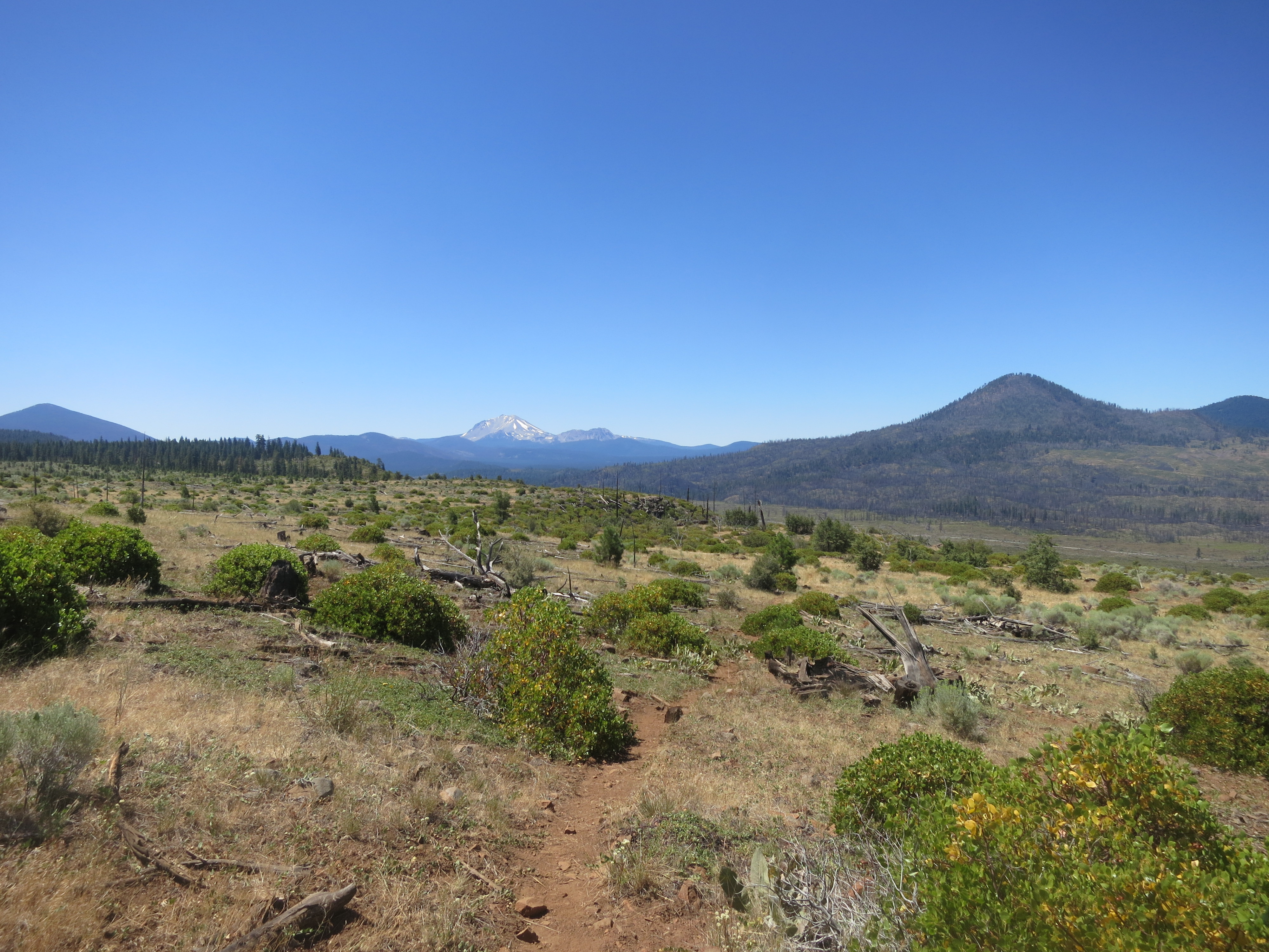 Mt. Lassen framed one side of the landscape, while Mt. Shasta, which we were heading to, framed the other. As I sat snacking, a car pulled up, and an older man and woman got out to see the view. The woman told me she hadn’t been here in years and I asked her how different it looked now that a recent fire had destroyed much of the area. I often wondered what hiking the PCT was like before all of the fires destroyed so many sections of the trail. Visually, these burned areas are unpleasant to hike through, but the lack of shade in already scorching sections makes conditions even tougher.