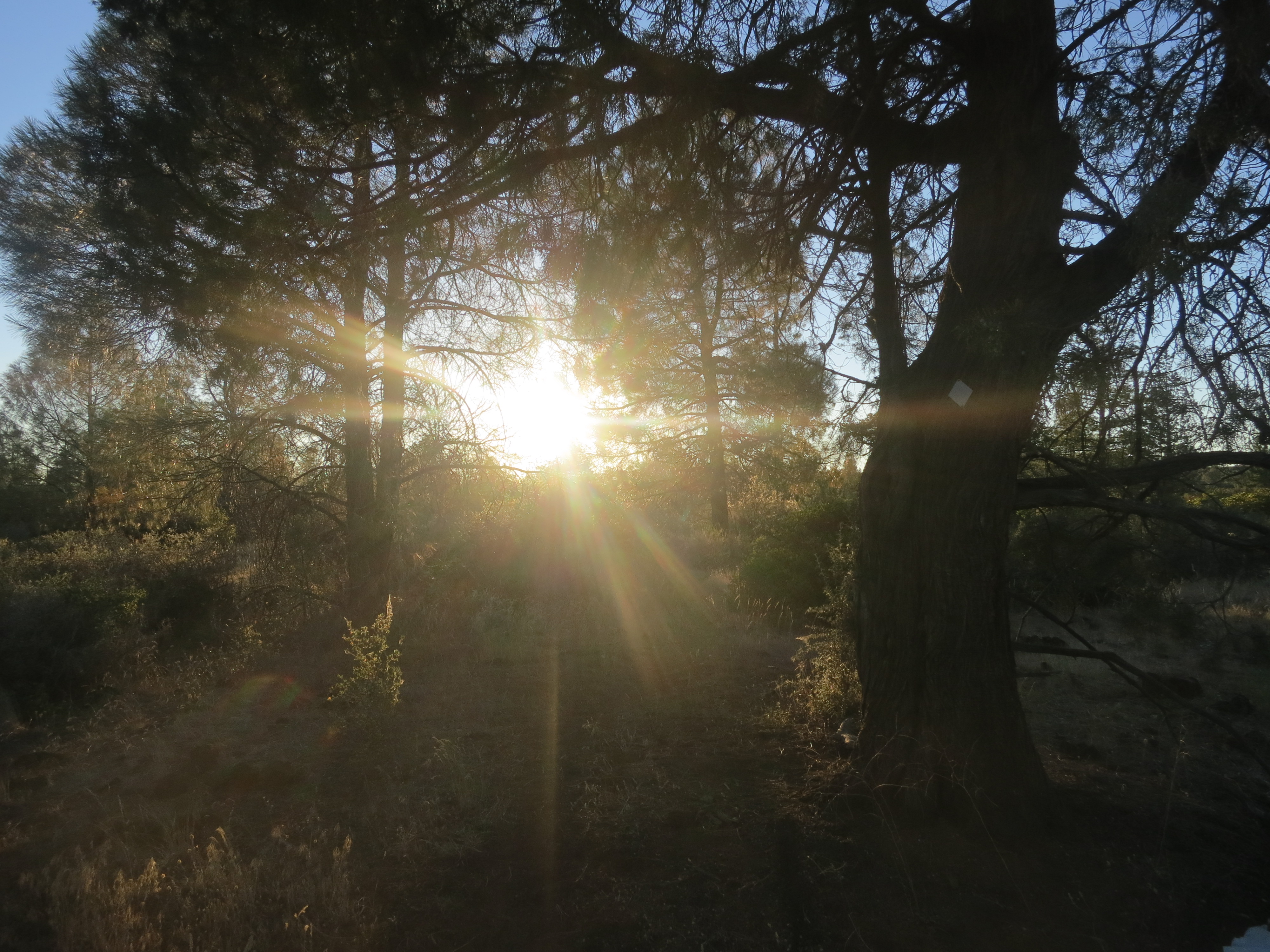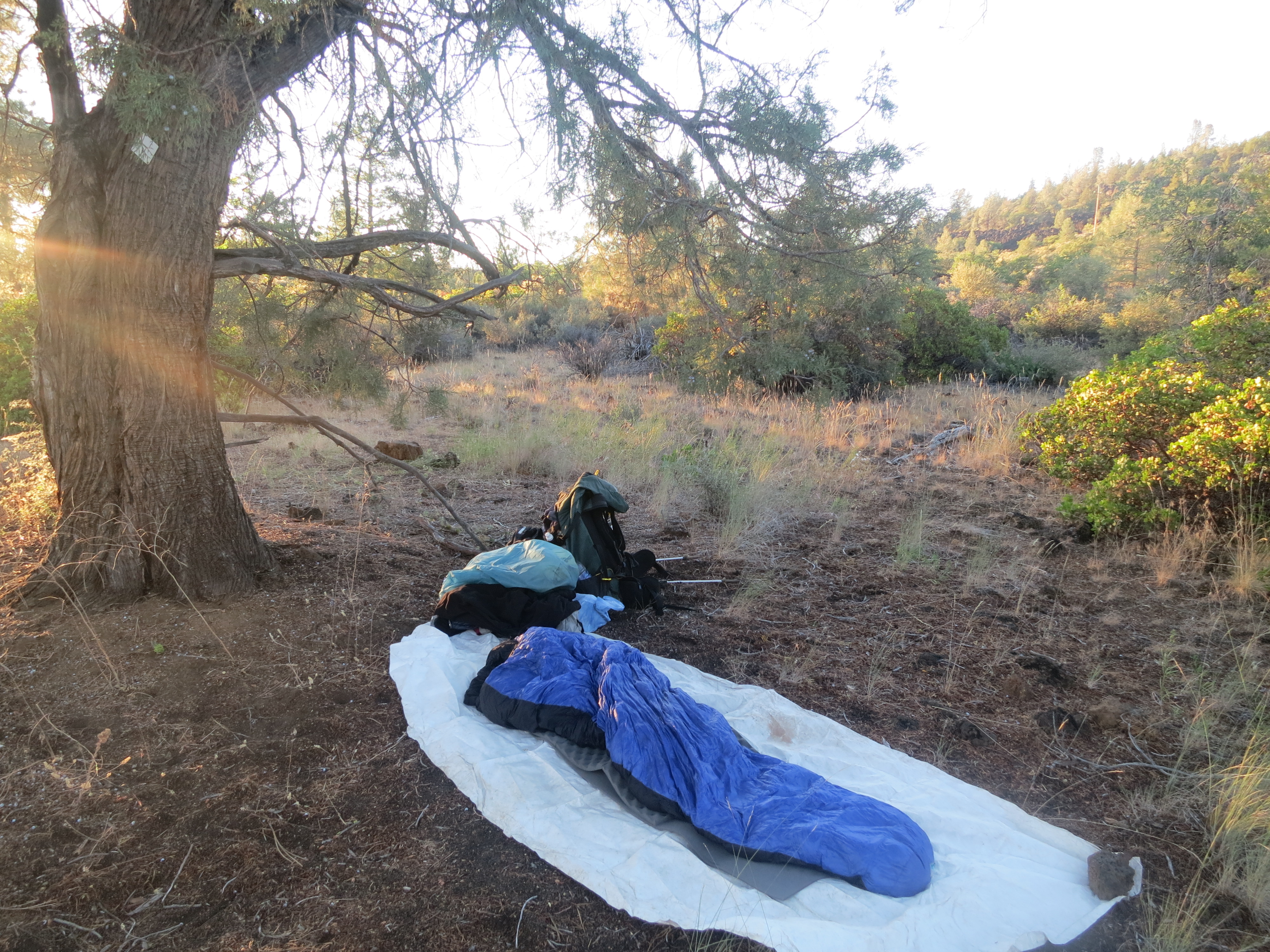Fortunately, I found a tree just next to the trail that had a nice patch of dirt in front of it. This would be my bed for the night. I set up my cowboy camp, cooked my dinner, and watched the sun set behind some trees. I wanted to write down some thoughts that were in my head about the day, but when it came time to do so, I was too tired to remember any of them!