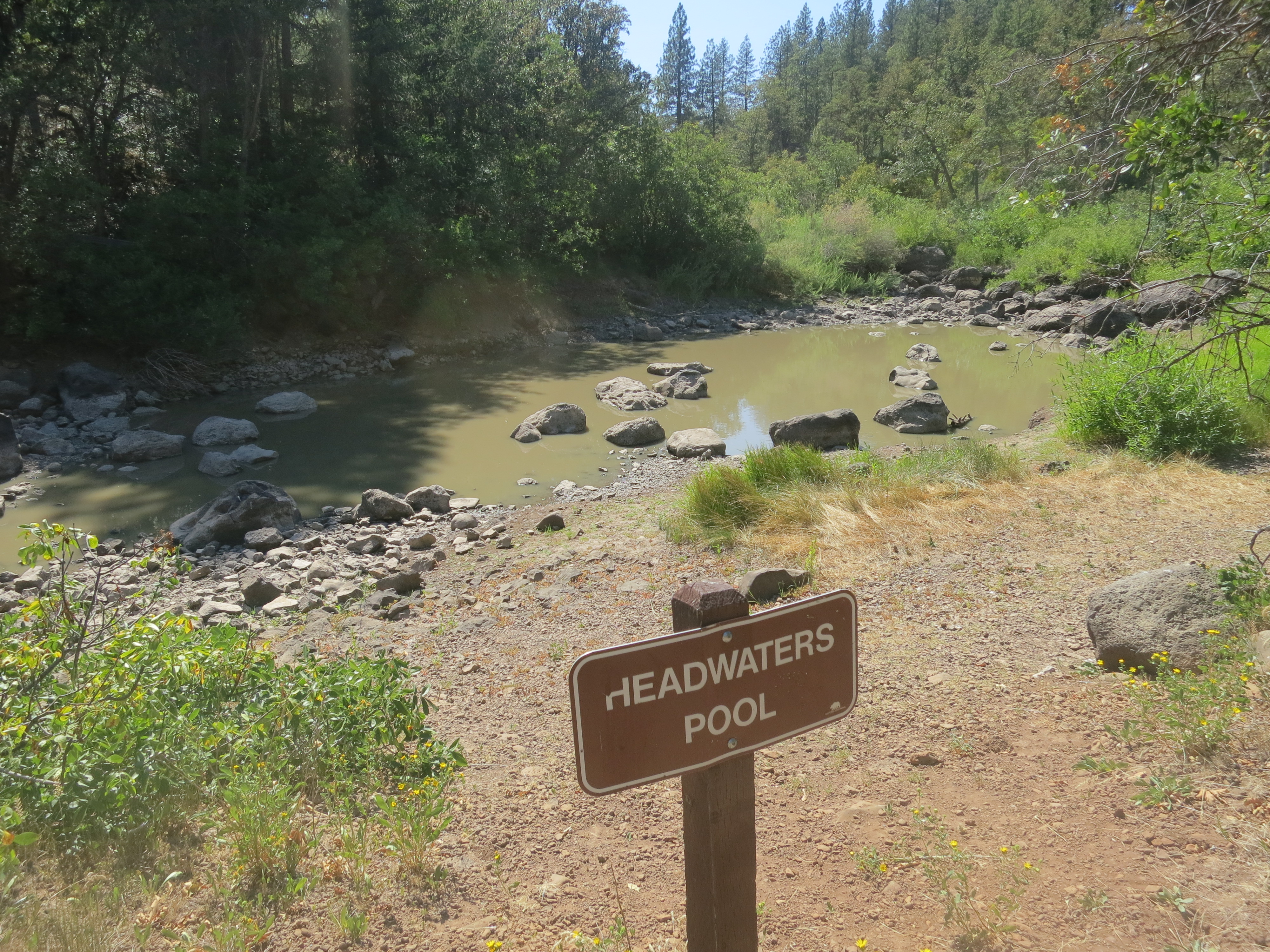 Eventually, I reached the next highway and continued on, looking everywhere for the campground and trail to Burney Falls. I saw a bridge ahead and decided to turn back and take the signed path, following the small headwater pool as it turned into a river, and finally into the falls.