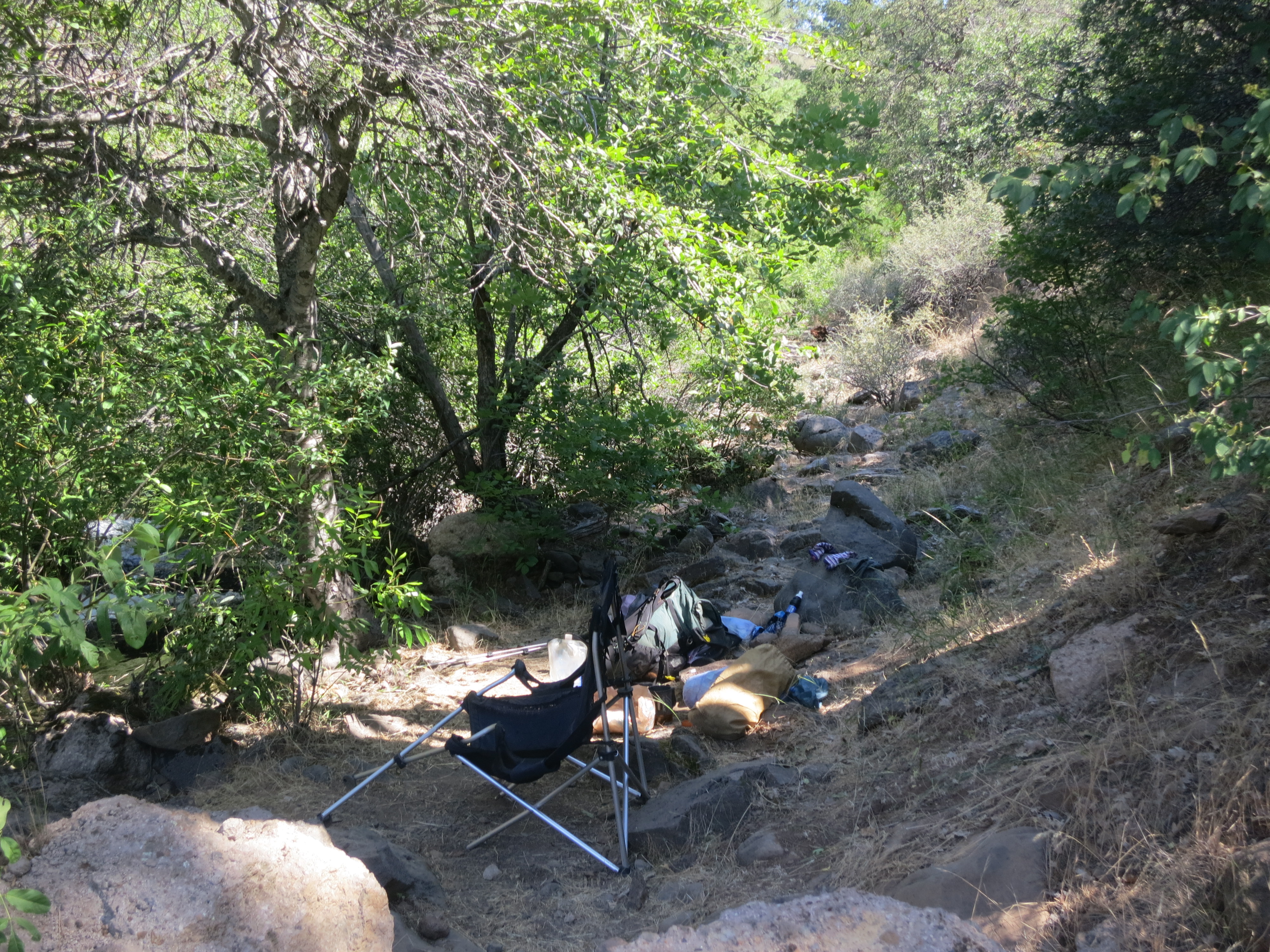 It was much cooler under the bridge and I decided that I would be happy just sitting and listening to the water as I enjoyed some snacks. I wondered for several minutes if I should make myself an ice coffee as an additional treat and finally decided to collect some water, filter it, and do so. My powdered milk wouldn’t dissolve, but I still enjoyed it, feeling completely content, not wanting anything more than what I already had. This is one of the best feelings possible.
