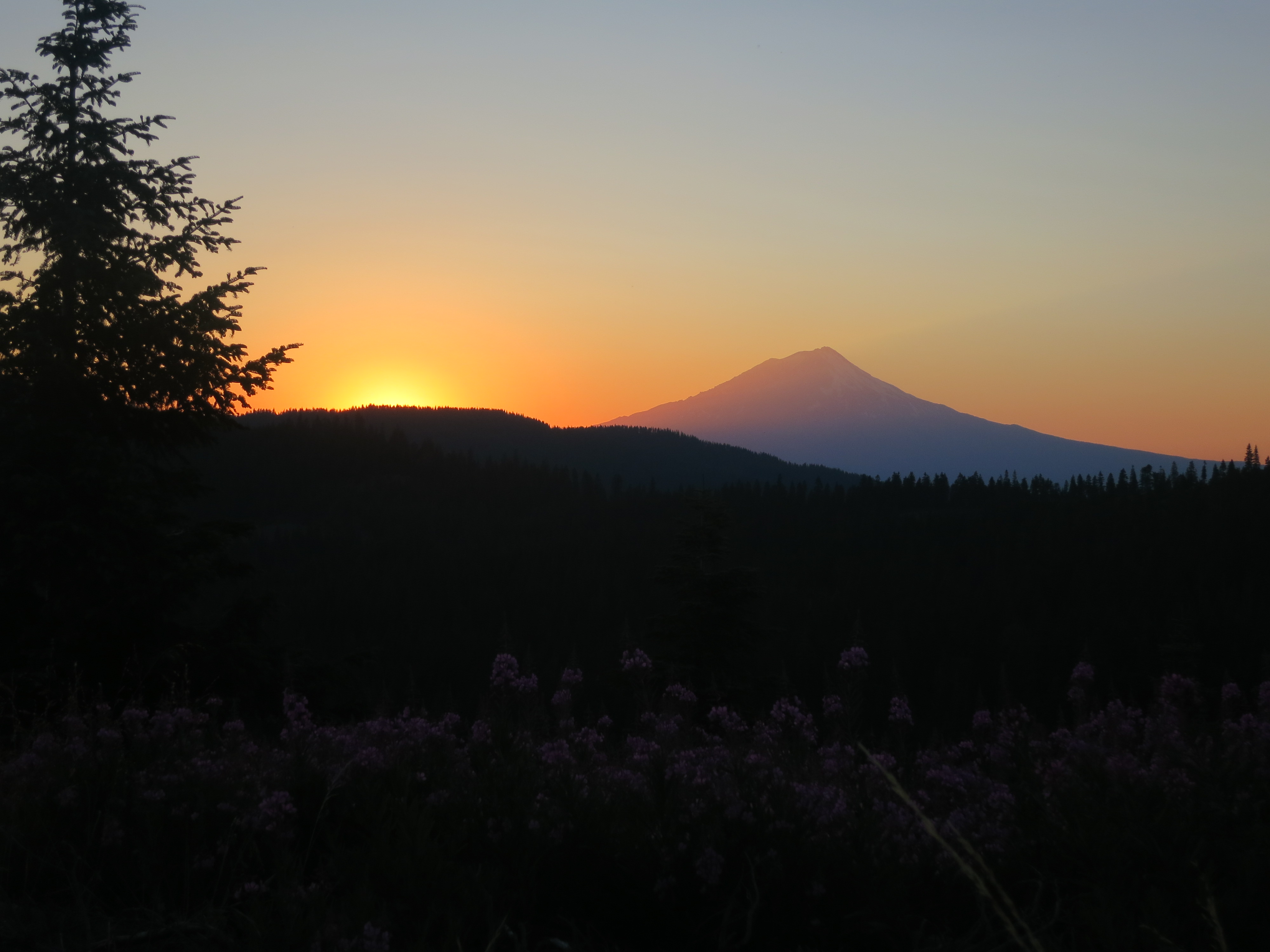 As the sun lowered and the glare lessened, I was stunned to see an incredible view of Mt. Shasta that I had been unable to see when I first stopped! Holy cow! Although yellow jackets buzzed around my stove, garbage bag, and food, joining the flies and mosquitoes that were interested in my body, I was glad that I had chosen to stop here.