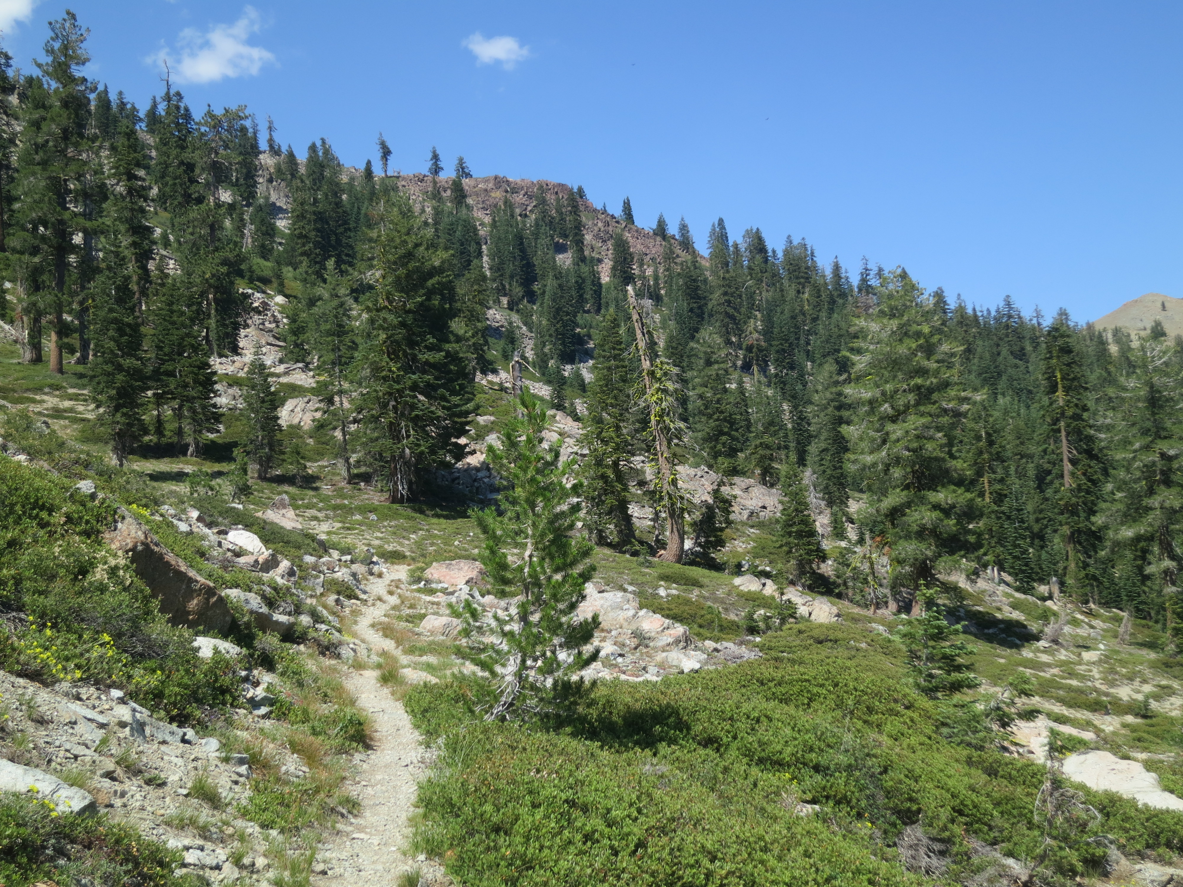 I could see a lake off to the left, well below the trail, which was too far off the PCT to get to. I ran into two older day hikers who were heading towards me. One of them said, “There are a lot of hikers ahead of you.” I wasn’t sure what to make of this. Of course, there were a lot of hikers ahead of me. There were even more behind me!! Then, the man said, “In about three and a half miles… you’re going to come to a road… ” “Yeah,” he said. That was it! I was going to come to a road? I had crossed plenty of roads by this point! Why was he saying this to me? If there was something meaningful at this road, like jugs of water or food, he could have said that, but that was all he had to say! Part of me thought that maybe they didn’t want to ruin a surprise for me, so I felt a bit hopeful!