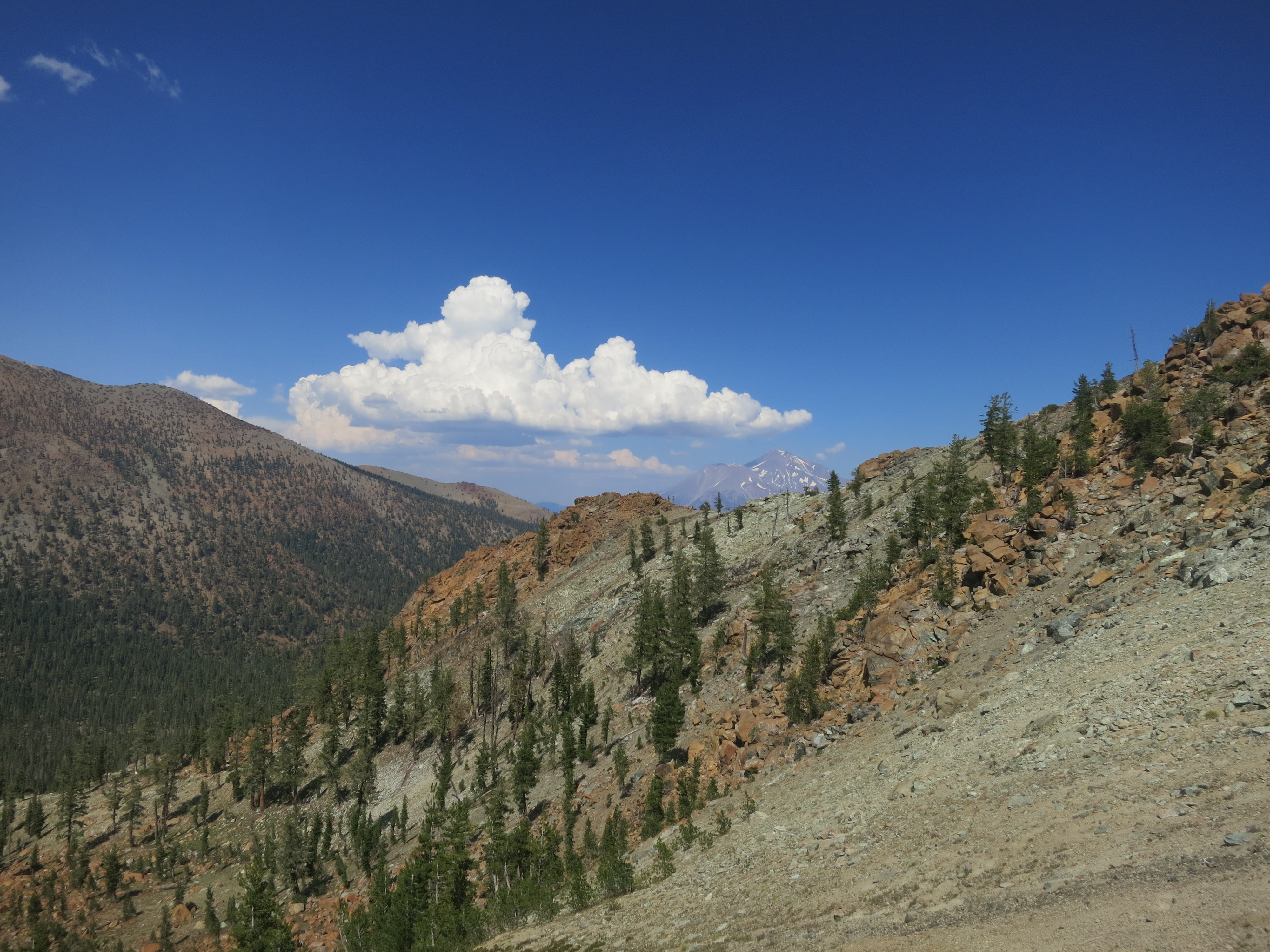 As I walked away, I put in my new headphones and was so happy to be able to hear music so clearly with two ears! It helped get my energy going. I didn’t think anyone was around me so I sang along with several of the songs. While I walked, I could see Mt. Shasta, now from a different vantage point. It is quite an incredible mountain and I found it interesting that I had been able to see it for so many miles! I don’t think I’ve ever had an experience like that before. Although I felt very sick today, I could feel the freedom of being out here on the trail, and felt grateful for it. And although my pack was heavy with three and a half liters of water, I felt like I was moving well. The bugs weren’t as bad as they were yesterday, either.