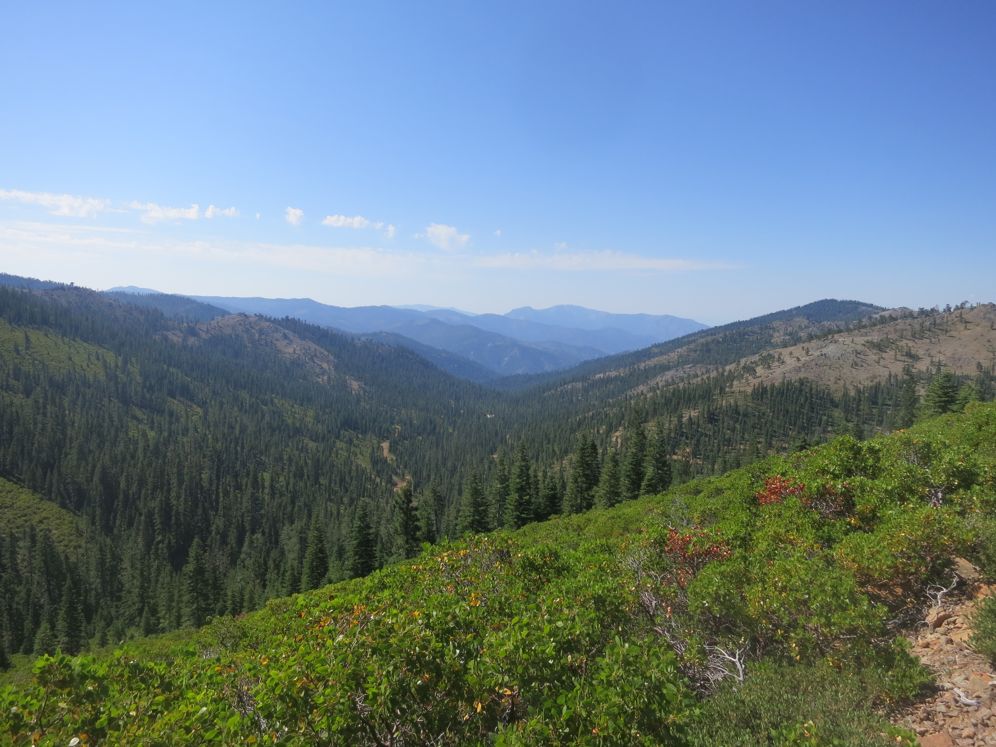 I managed to stay ahead of him for longer than expected. Up ahead, I saw the other hiker lying down next to the trail, eating a bagel with cream cheese. He didn’t see me until I was practically upon him and said hi! When I stopped to take a pack break, Braveheart caught up to me and asked if I had seen the rattlesnake 100 yards back. I had not. He said that he had brushed up against the bushes and then thought, “Wait a minute… Bushes don’t sound like that!” I said that it didn’t rattle at me. Braveheart said I probably woke him up as I passed by. (Actually, I think brushing against the bushes is what woke him up!). I hadn’t had a rattlesnake encounter since way back in the desert!