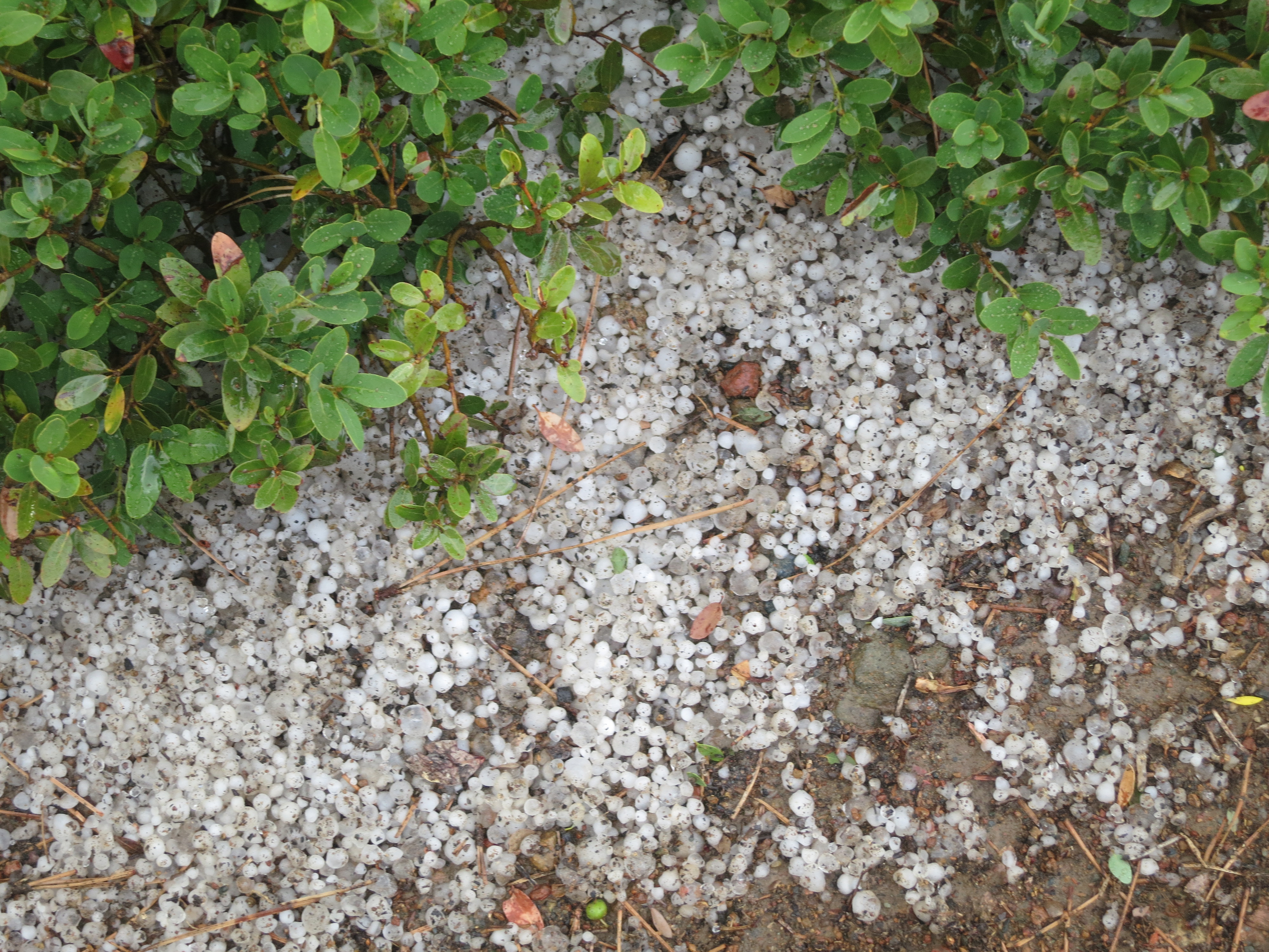 However, within a couple of minutes, big drops began to fall on me! I quickly put my rain cover on my pack and headed off the trail into a patch of trees. They offered no protection, though! The wind was blowing the rain horizontally! I decided to get back on the trail and keep walking. My skirt got completely soaked in the next few minutes and the trail turned into a river! Then, the rain turned to hail. The size of the hail increased and pelted my body. It hit my hands, my head, and my neck, stinging me each time. Oww! By now, it was marble sized! I had never seen hail this big before! I found a tree to stand under next to the trail, but I could not escape the onslaught of pelting. I backed myself as close to the trunk of the tree as possible, my feet standing on an incline, ready to slip off at any second. I was cold and wet and stood shivering. I watched the trail transform from a river into a field of hail. Everywhere I looked, it was white! Then, the hail turned back into hard rain. I decided to start walking to try to warm up a little. The hail returned and I spent the next hour alternating with stopping under trees and walking through ankle-high rivers flooding the trail. My feet were soaked and my body was extremely cold. I moved and then stopped, walked through the hail and river, then tried hiding under a tree. I was determined to make it to Mosquito Lake Creek! In my way was a raging brown river! The water was the color of coffee! This was an angry storm! I could see the tops of rocks above the strong current, but wasn’t confident that I could make it across that path the way the water was rushing. Instead, I just went right through it! Disgusting! My feet were now frozen and I decided it would be best to keep climbing so I could give my body a chance to warm up! I told myself that I would be warm in 2 hours. I just had three more miles to hike in this cold, wet state. I could do it! Finally, the rain lessened. From the amount of hail on the ground in front of me, it looked like the storm wasn’t as bad here, as it had been where I was.
