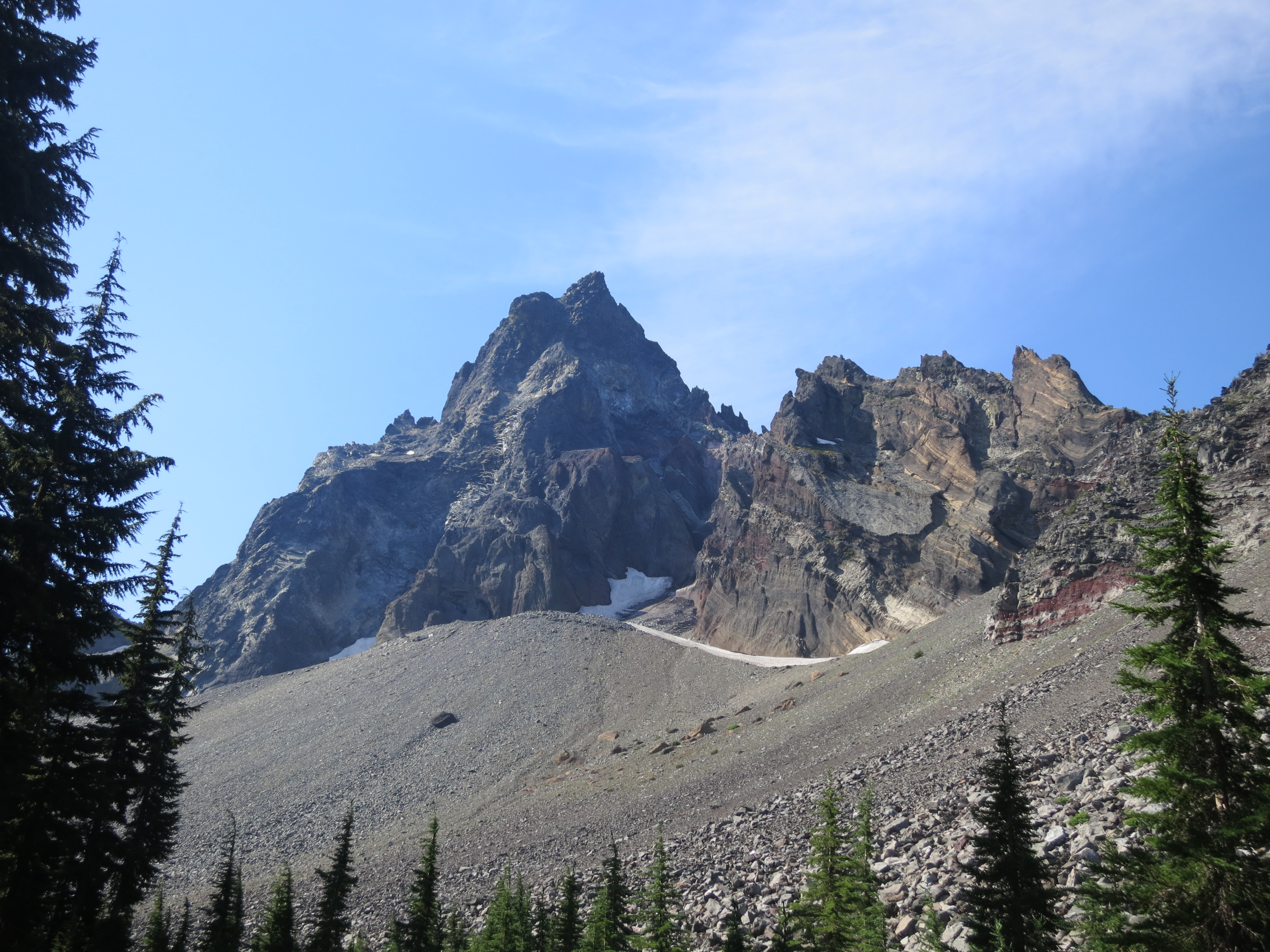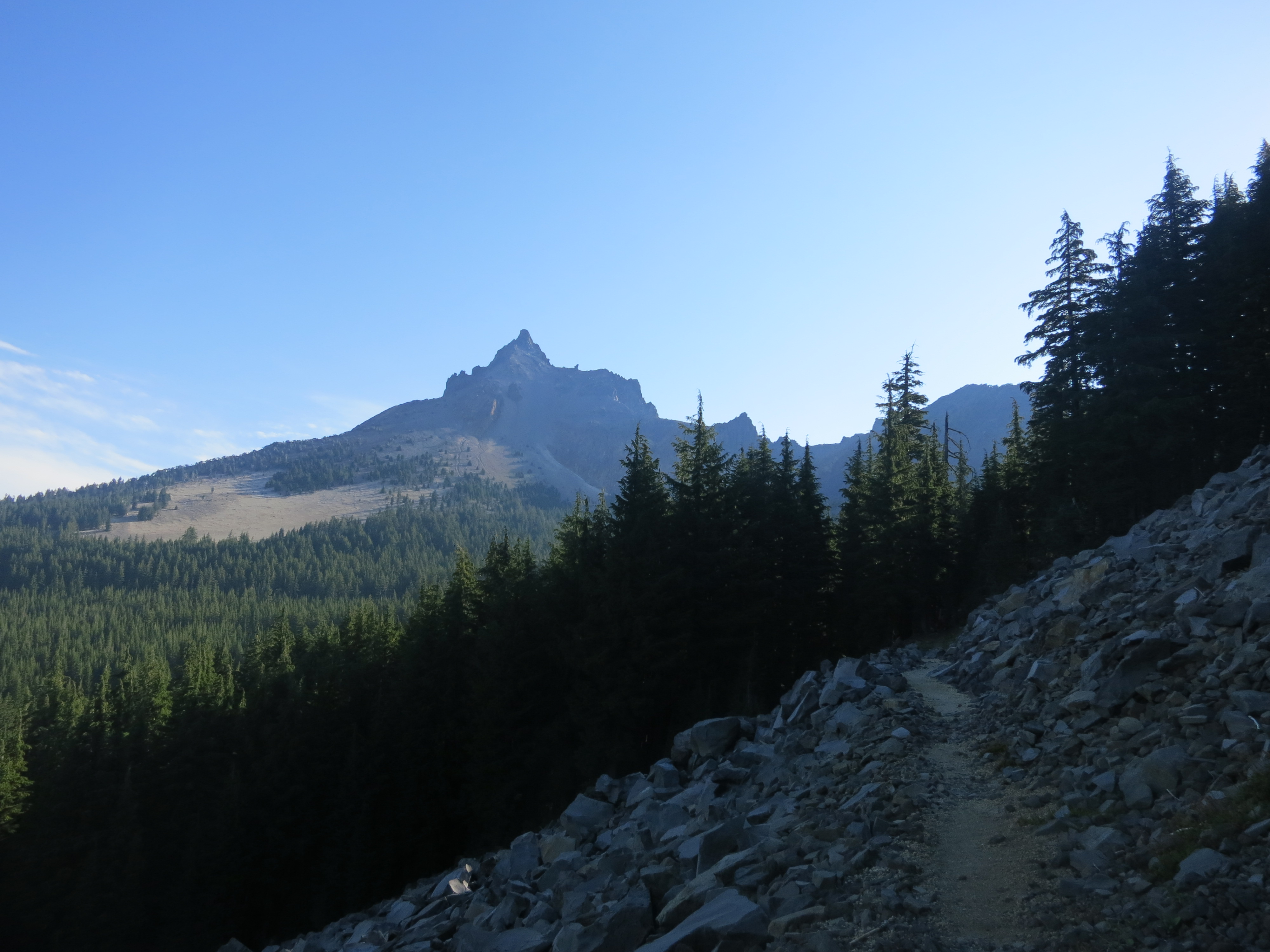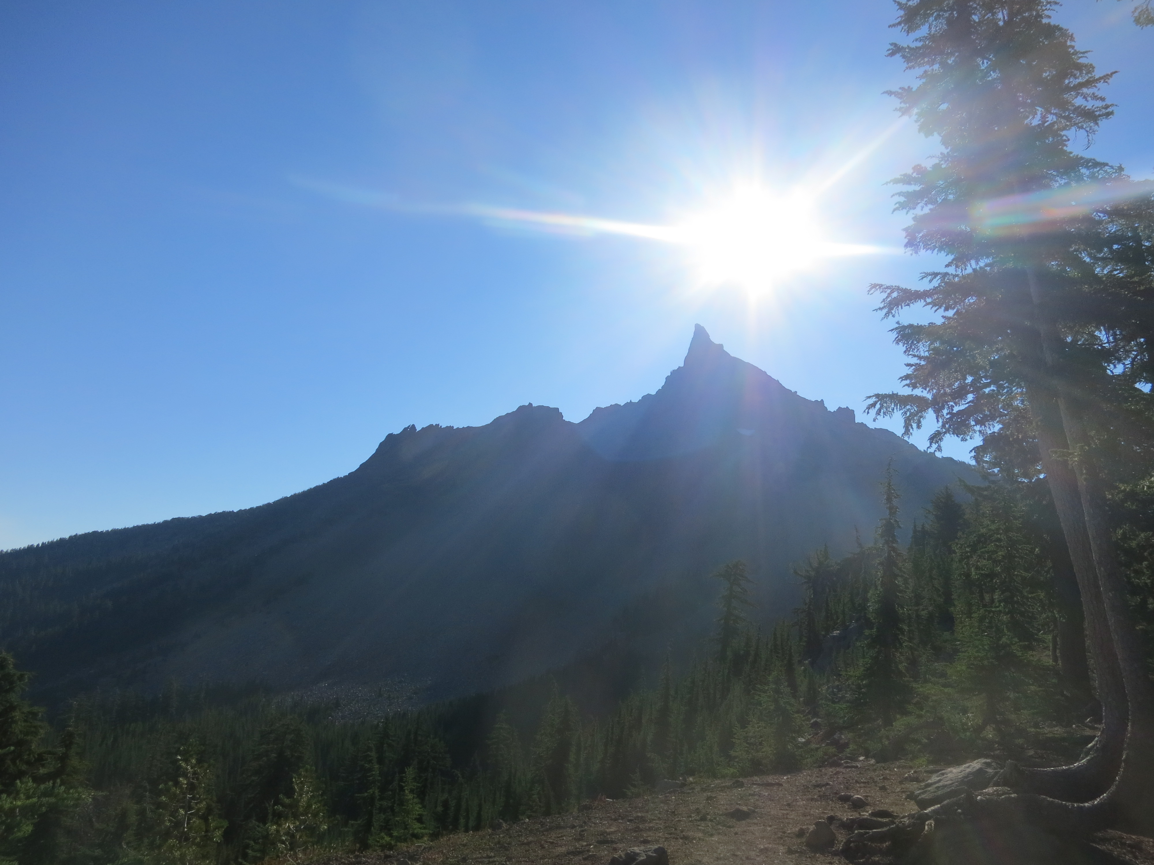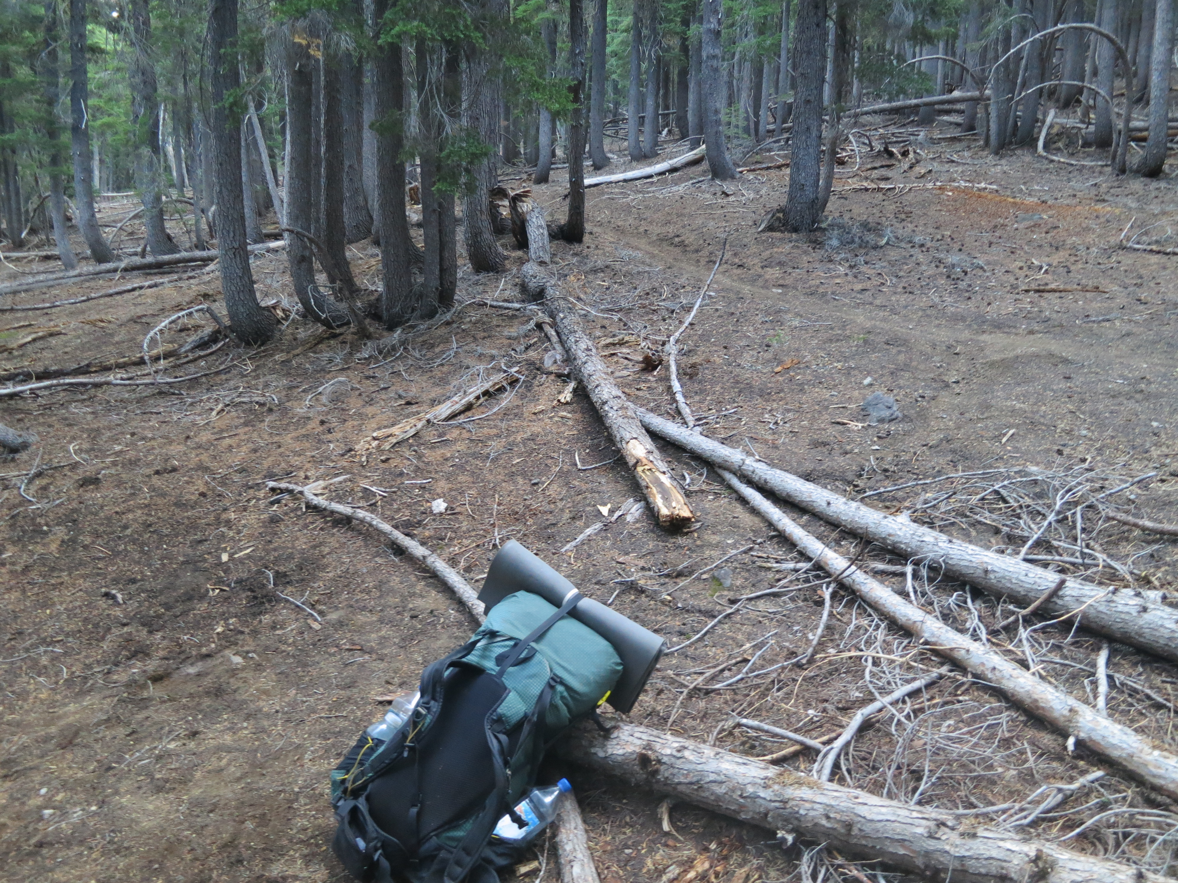 In just under three miles, I reached the Mt. Thielsen trail intersection. I got confused about which way to go, first heading the obvious way, then upon discovering that wasn’t right, bumping into a tent. Back and forth I went! Finally, I realized that the PCT headed in the complete opposite direction, where I hadn’t even noticed a trail!