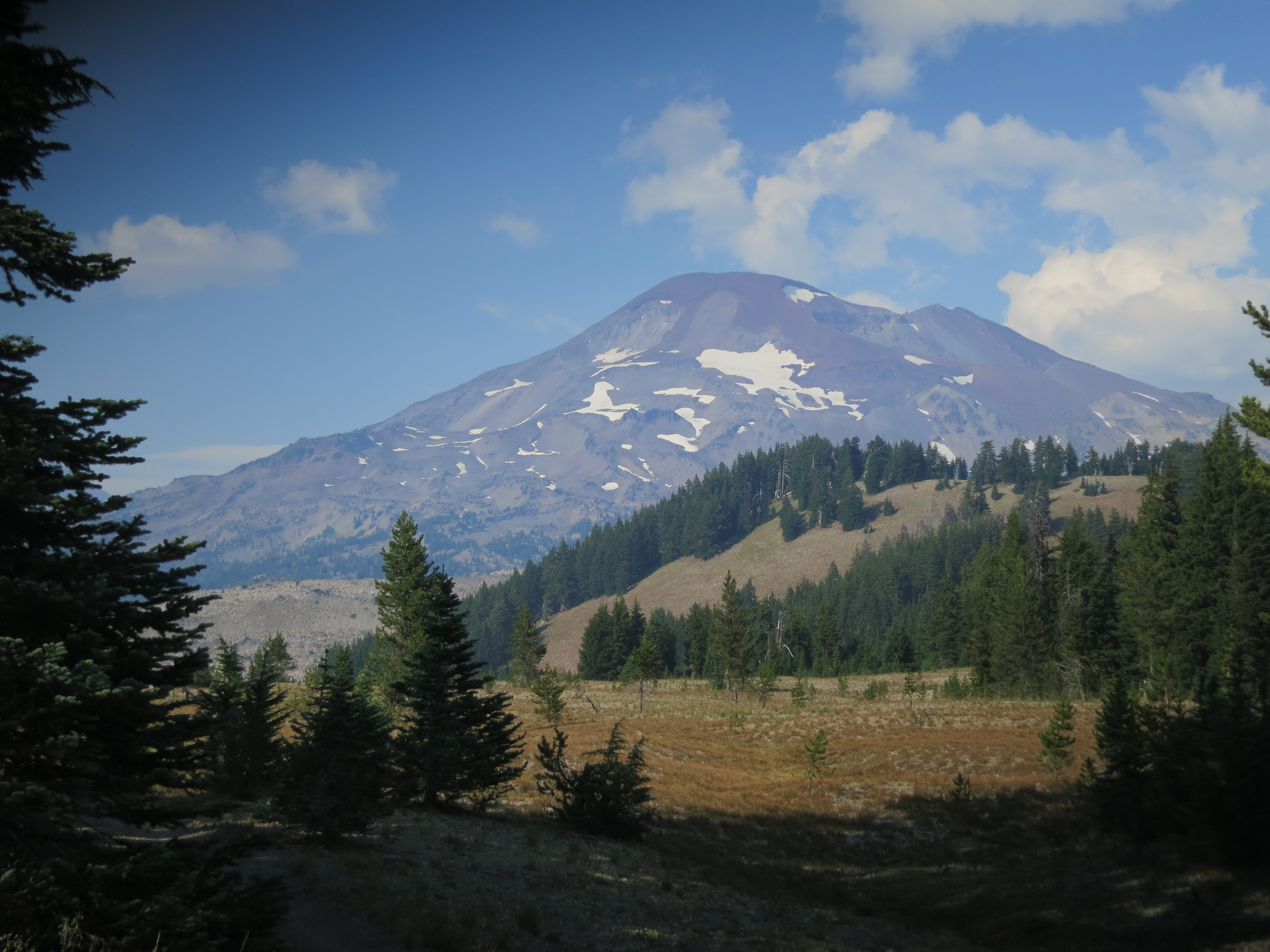 Soon after, the trail emerged from the woods back out into an open landscape. I could see a huge snowy mountain in the distance, but had no idea which one it was. All I knew was that I was happy to be back in an open expanse again. It had been a long time!