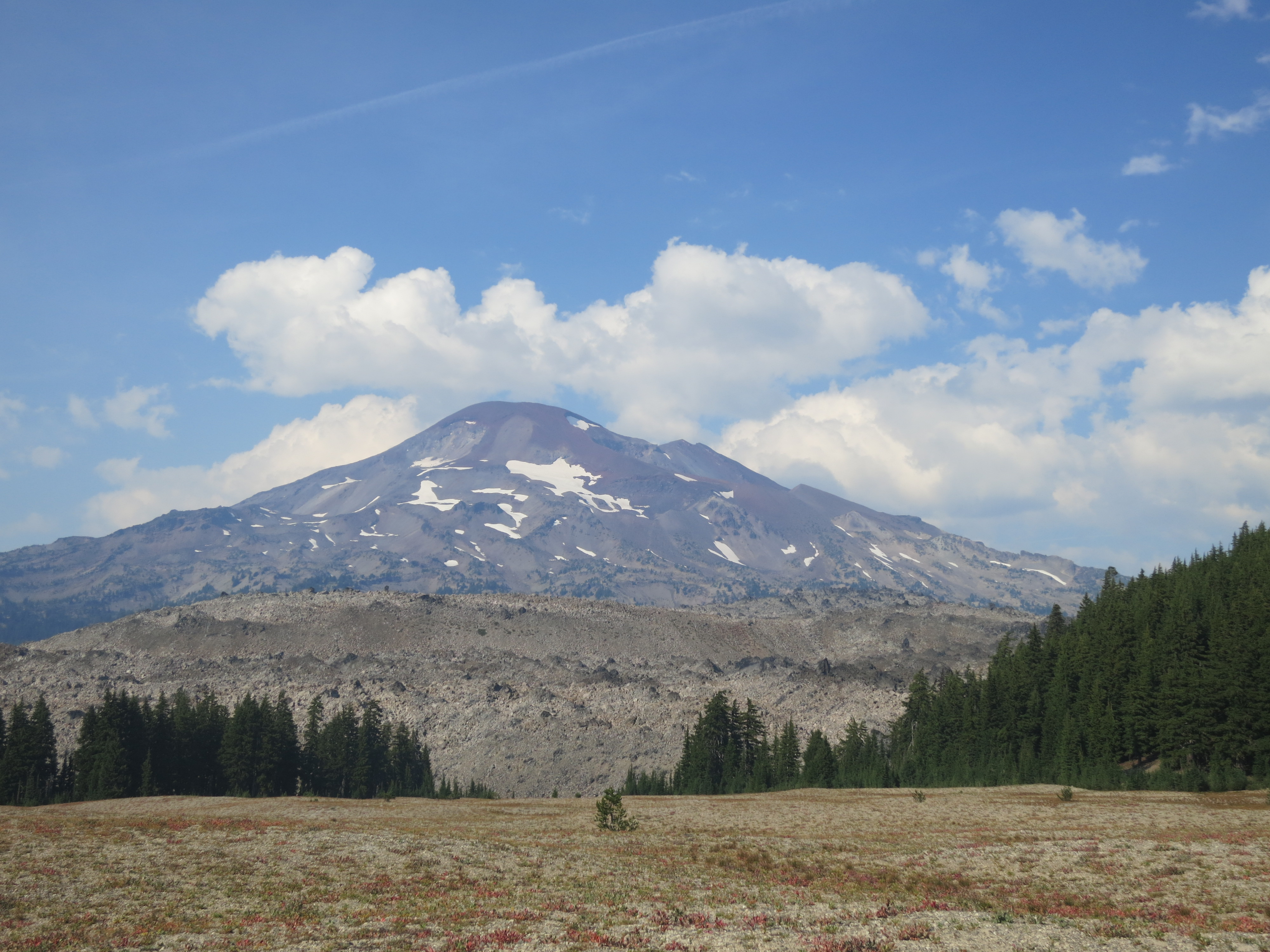 I asked him how he was now here. “Well, I’ve really picked up my speed since I last saw you,” he began. I was incredulous. Then he explained that the night he stopped at the Fish Hatchery, the smoke in the air from the nearby forest fires was so thick that he was having trouble breathing. He called his wife and she came to pick him up and bring him back home for a few days. He decided to get back on the trail just after Shelter Cove. Today, he was going to head out on the Elk Lake Trail and be picked up by his wife to spend another few days in Bend. I told him I planned on getting there tomorrow from MacKenzie Pass. I mentioned that his pack looked a lot smaller now! He explained that Slacks’s friend, who he had never met, saw him on the trail and told him that his pack was looking very lopsided. He asked if he wanted help adjusting it and spent several minutes adjusting all of the straps for him. Slack then came along and apparently had the same reaction to seeing him as I did! He couldn’t believe that he was now at the same place as him and Phil had fun playing with him about his increased pace and endurance. I thought it was so sweet that these guys took the time to help him and also thought it was interesting that Slack and I were the two thru-hikers that were repeatedly being placed in his path. I liked this connection. I slowed down my pace to keep chatting, as I was enjoying our conversation. I began to grow hot in the rain layers that I had started out in and stepped aside to peel off the extra clothes. Phil told me his last name so I could look him up in the phone book if I needed to be driven somewhere while I was in Bend.