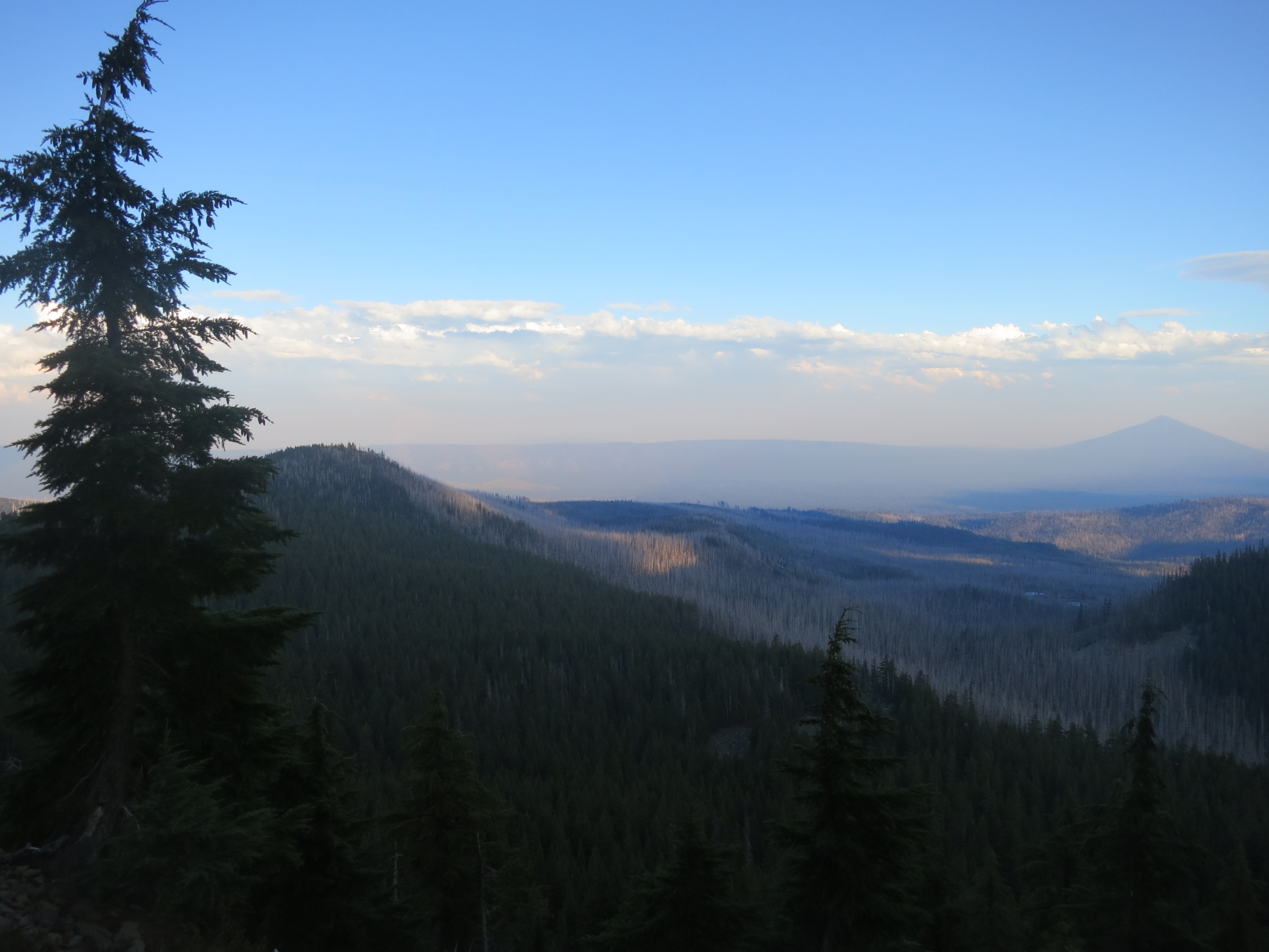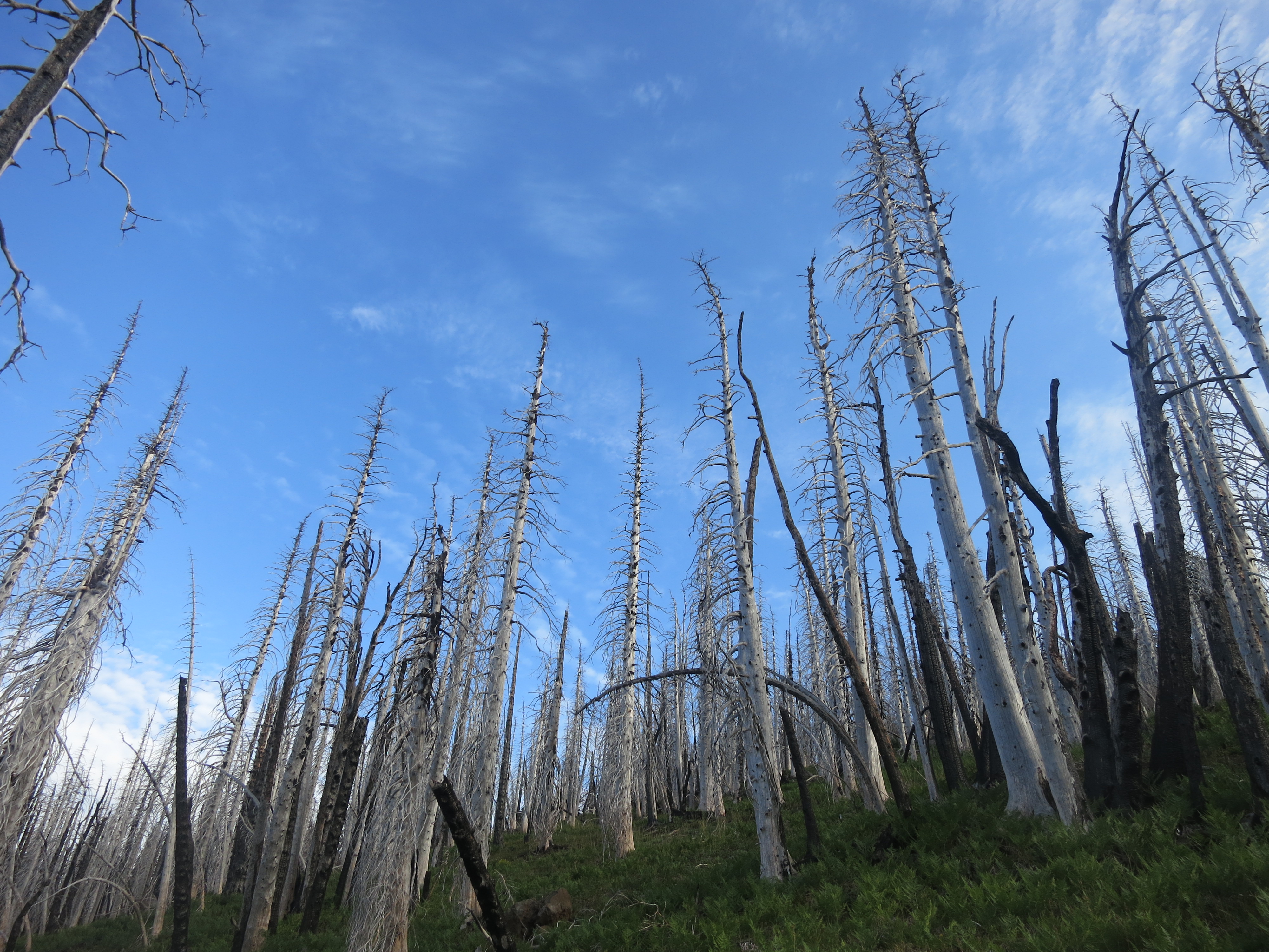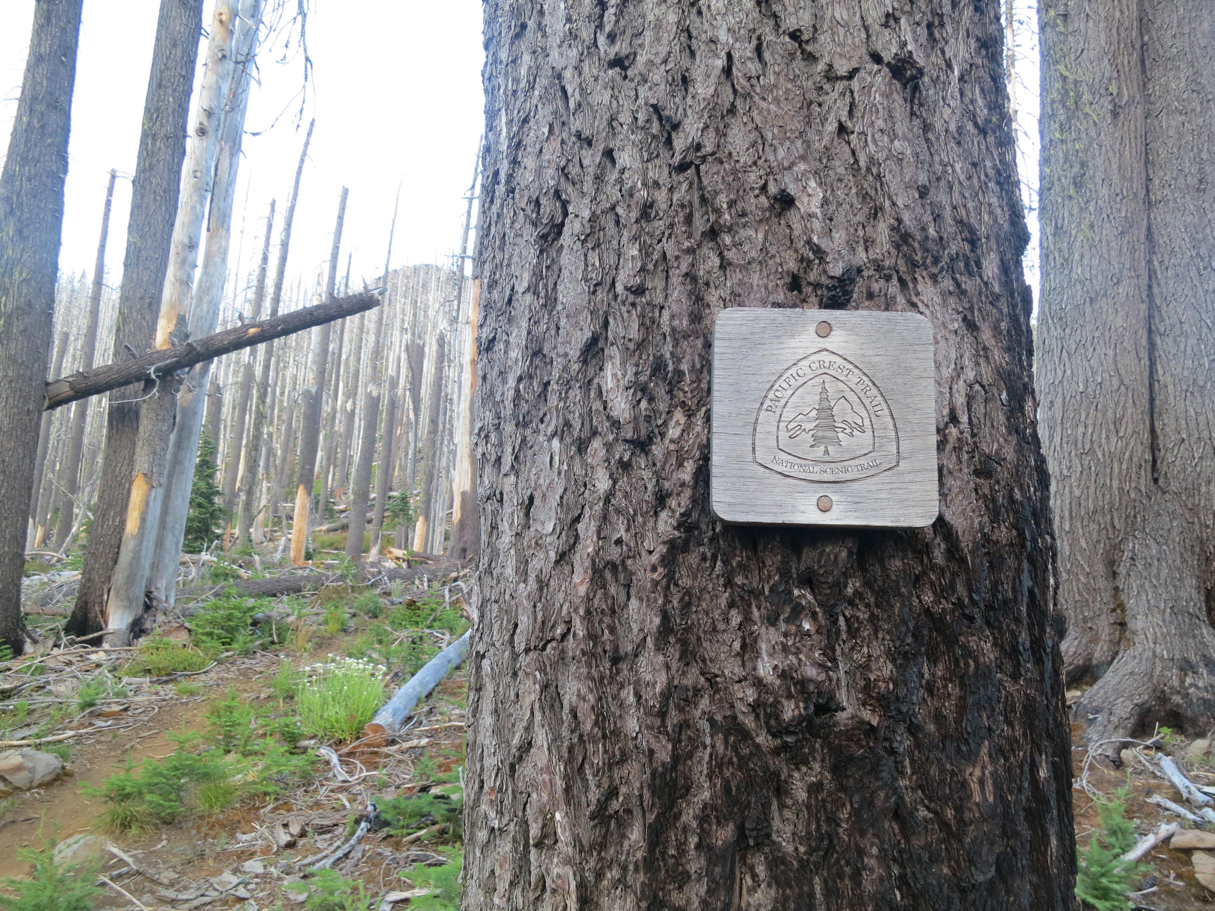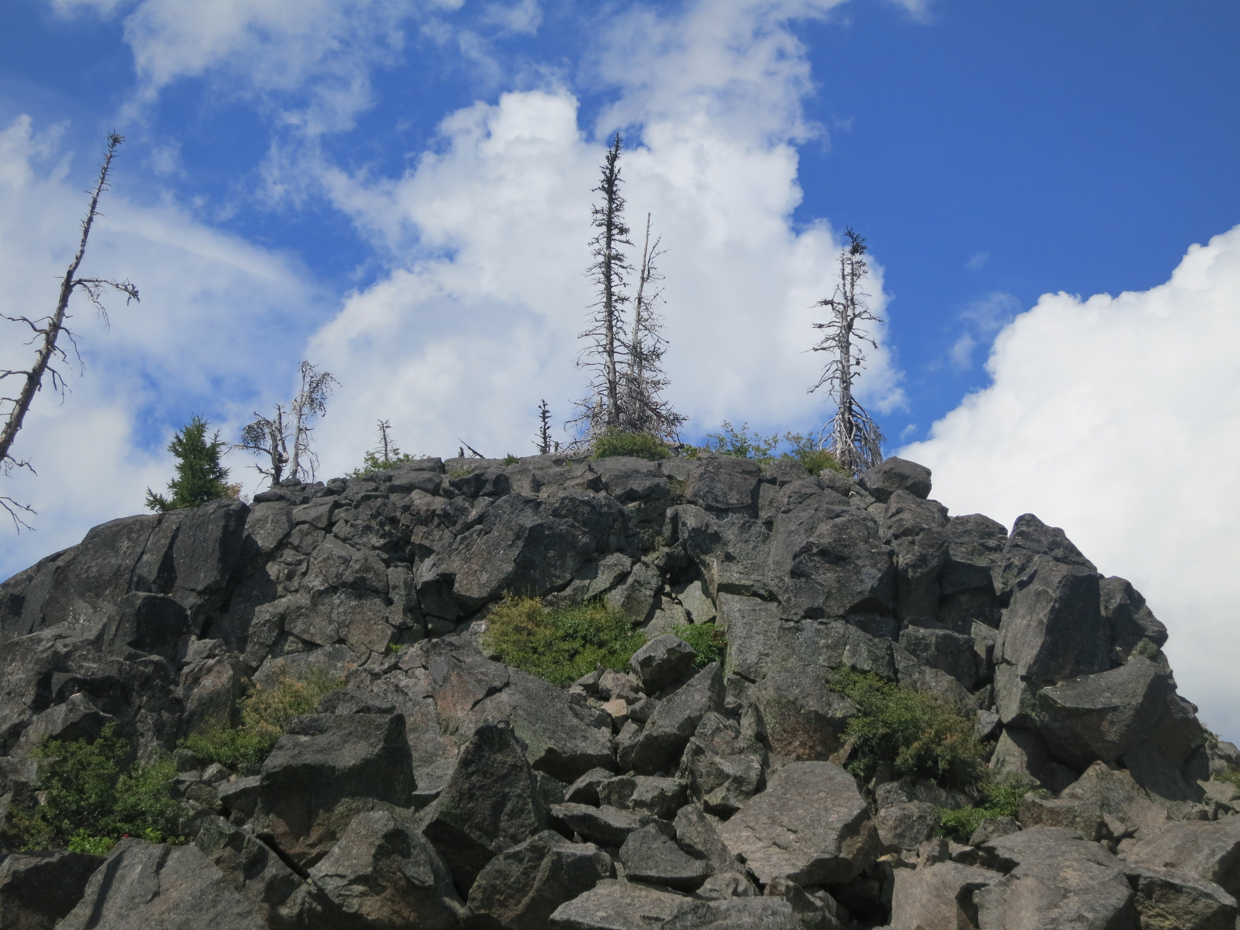 I headed out into the landscape of burned trees and lava rock and started climbing back into forest. Last night, Allyson had pointed out the huckleberries along the trail to me, and I got my first taste of these sweet berries. Now, it was easy for me to spot them and I stopped occasionally to grab and enjoy a few.