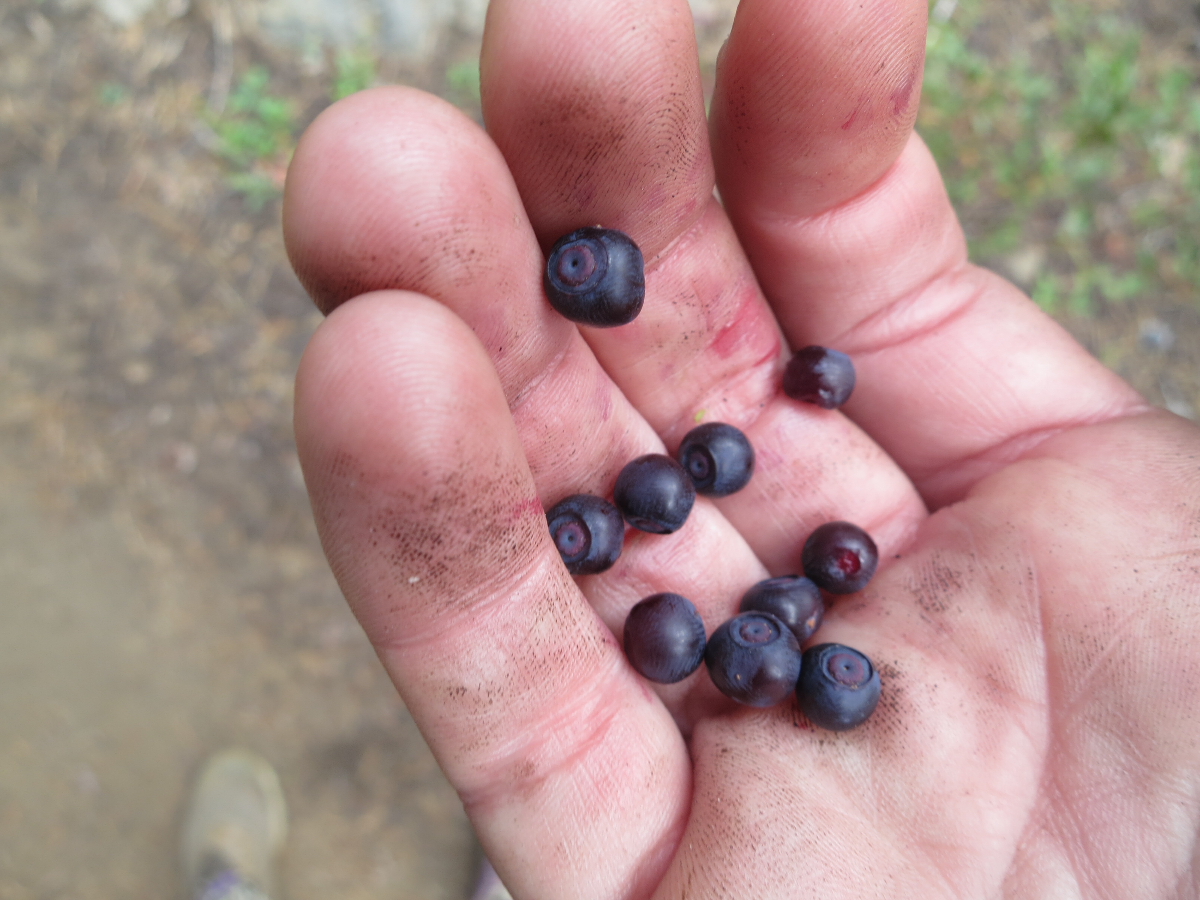 He remained ahead of me as we entered another zone of ripe huckleberries. We both seemed to stop at the same times to eat a handful now and then. When I stopped to take a short break, he zoomed on ahead. My intestines were still acting up. Baxter’s prescription only consisted of 6 pills and I had already taken two of them. I hoped they would kick in soon!
