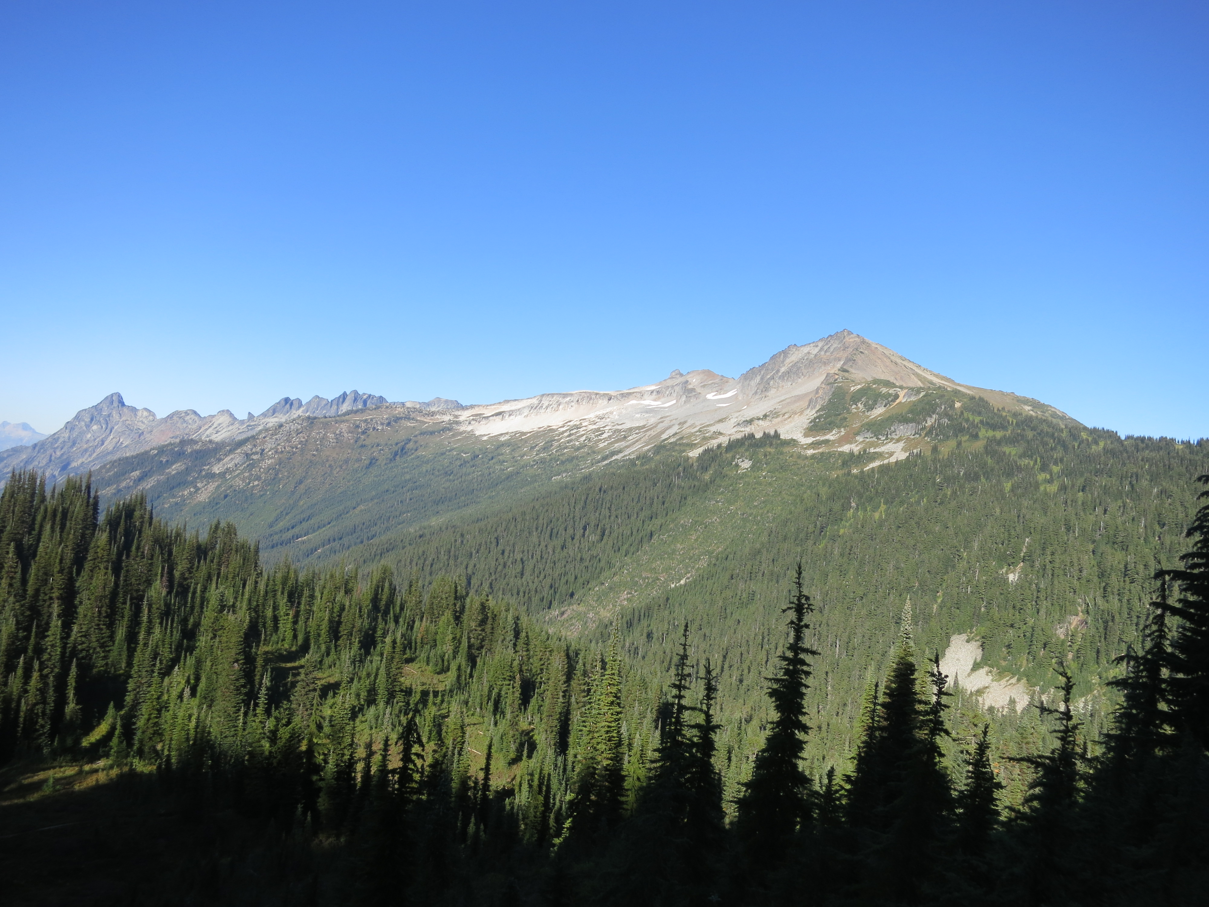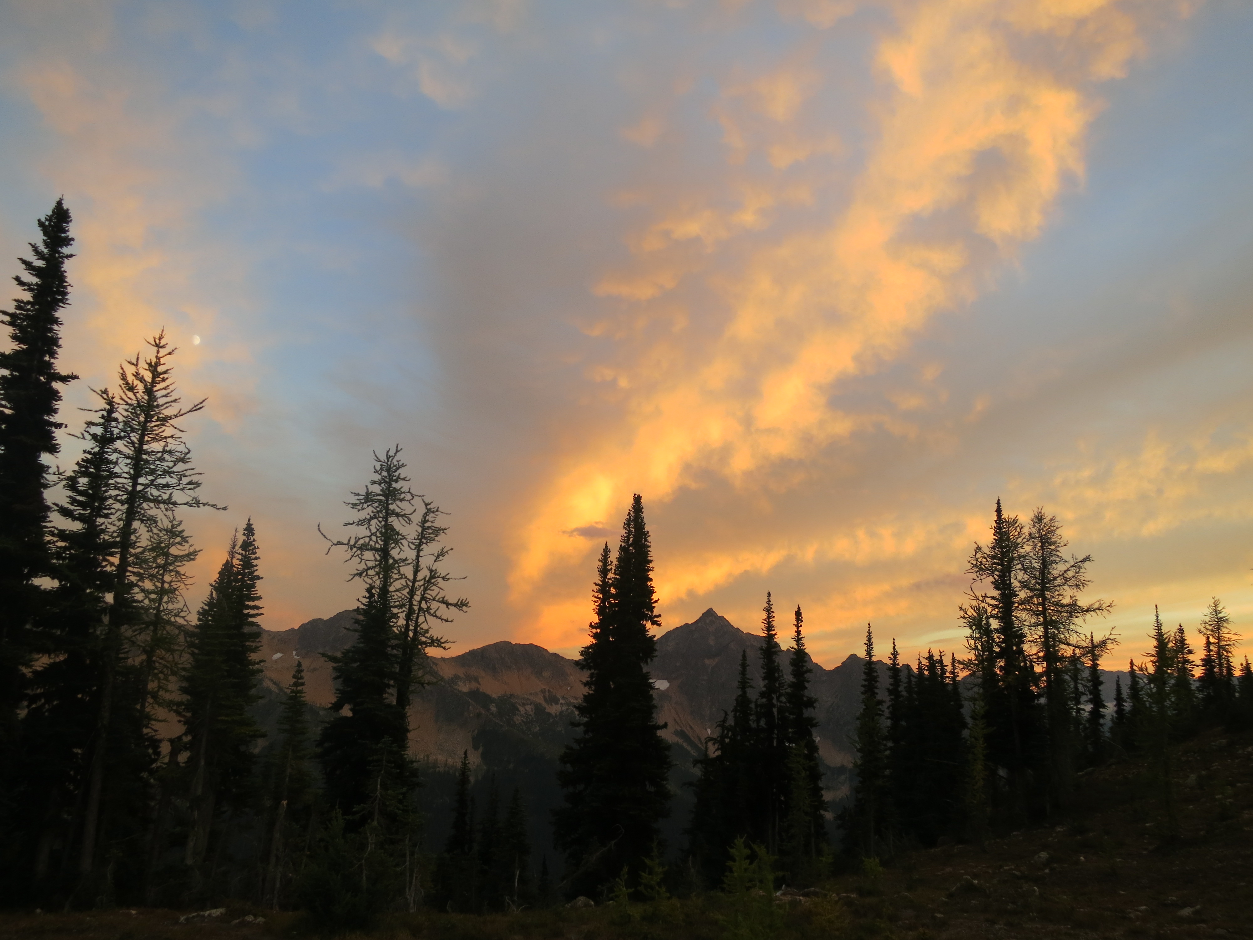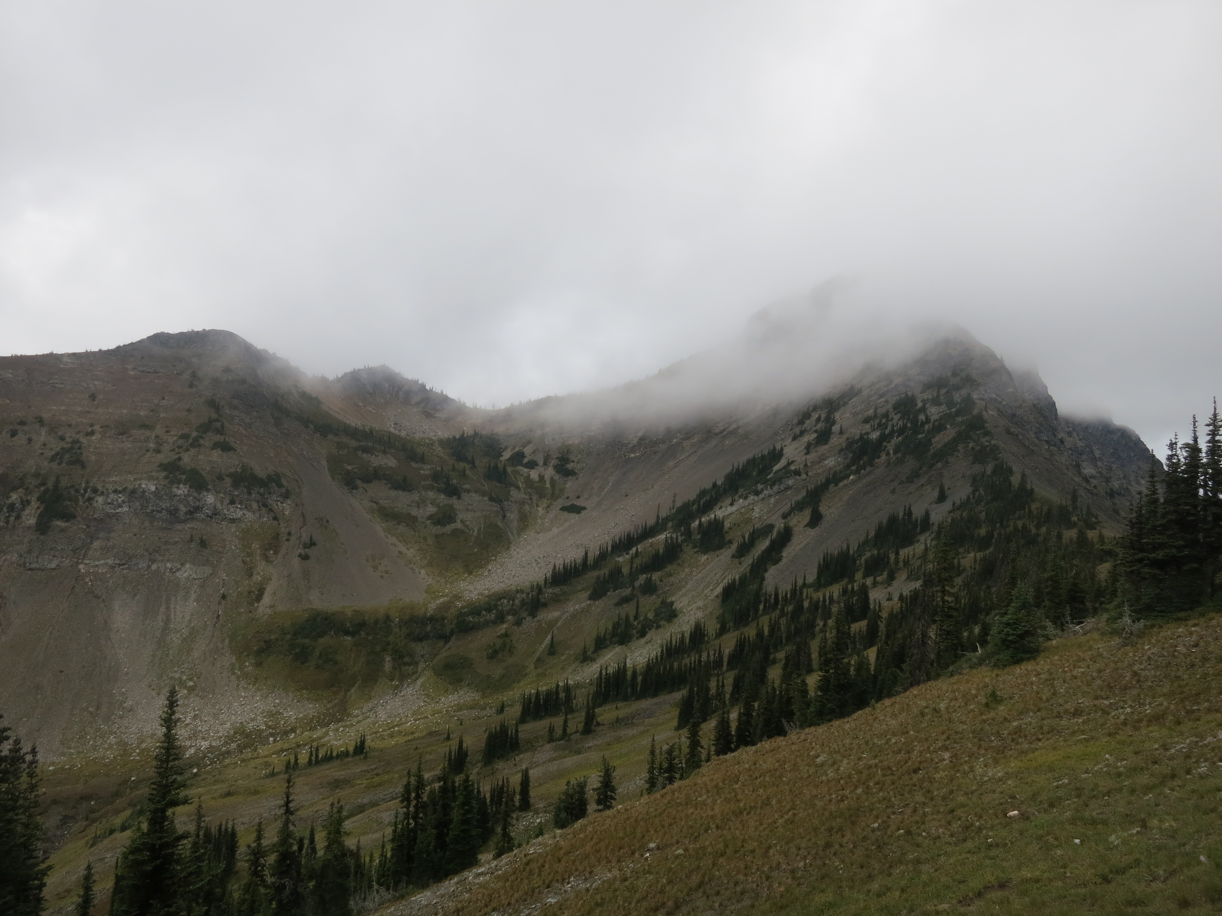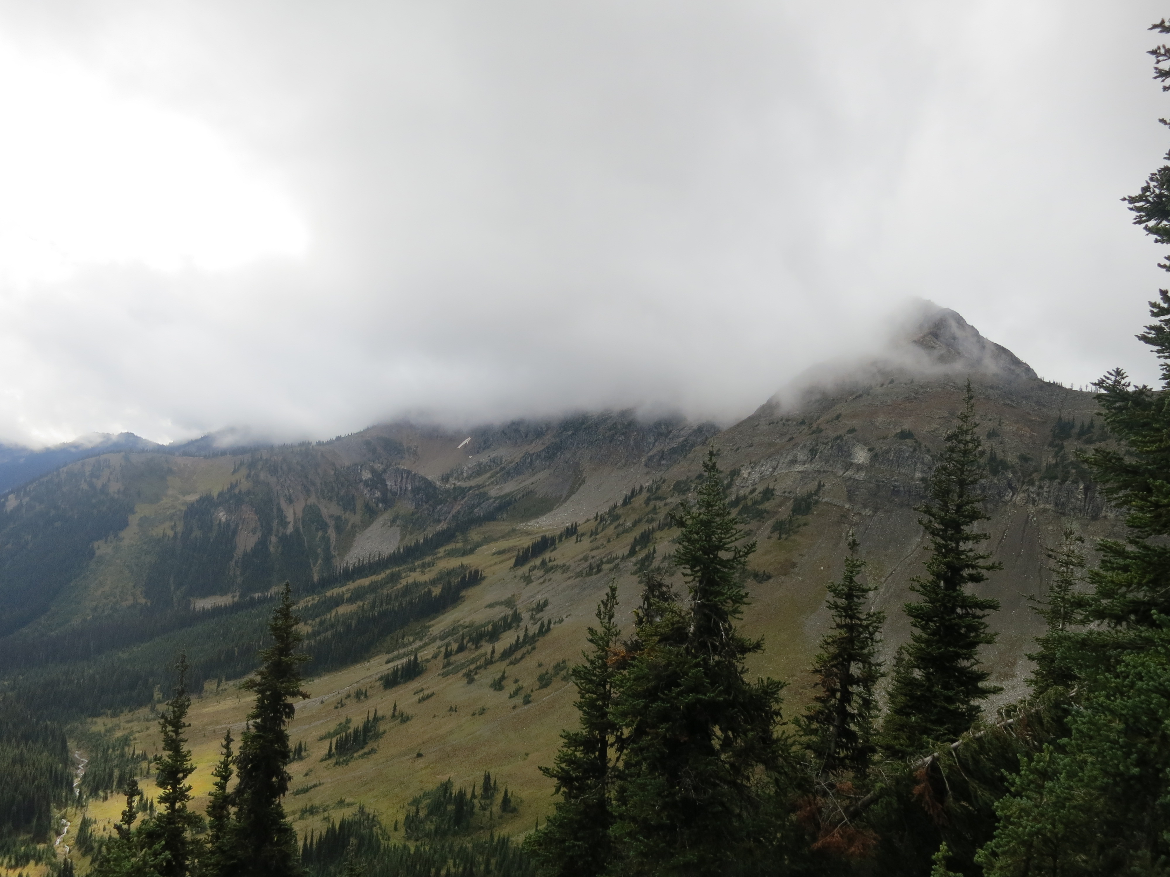 Thunder boomed, lightning flashed for a couple of hours, and the rain fell consistently all night long. Although my sleeping bag was damp, I was happy that no rivers of water had run through my tent. Everything was okay. At 6 in the morning, it was still raining. I had no incentive to get up. There were only 35 miles left for me to hike between here and Manning Park. My only concern was how long it would take me to get through the wash-outs. I figured I needed to add an extra hour’s worth of time for that. I finally sat up around 7, even though the rain continued to come down. I at least had to start getting ready. After eating my breakfast and doing my morning chores, I finally threw my stuff sacks and backpack onto the wet ground and began breaking down my tent. I would have to go through this routine only one more time.