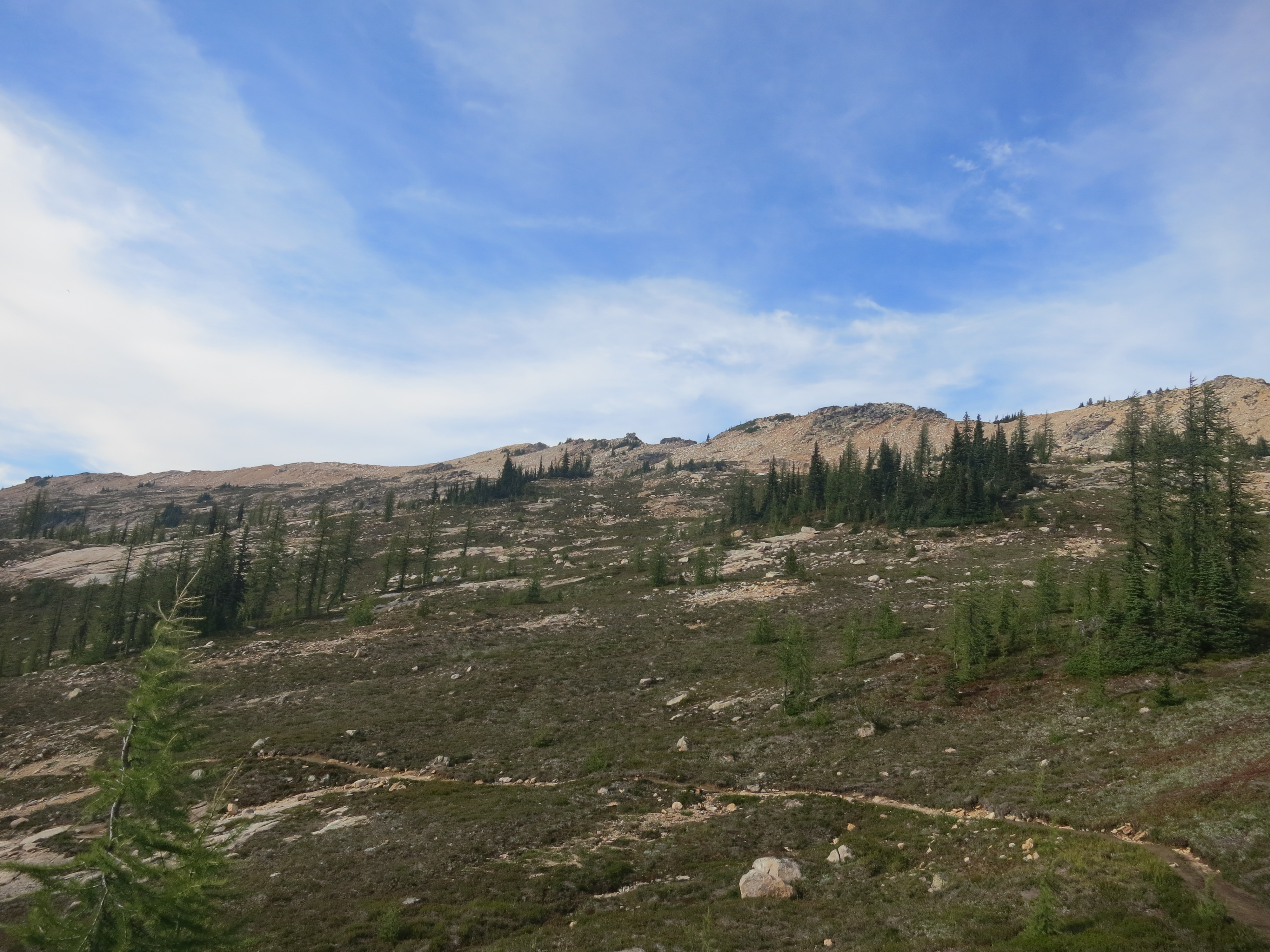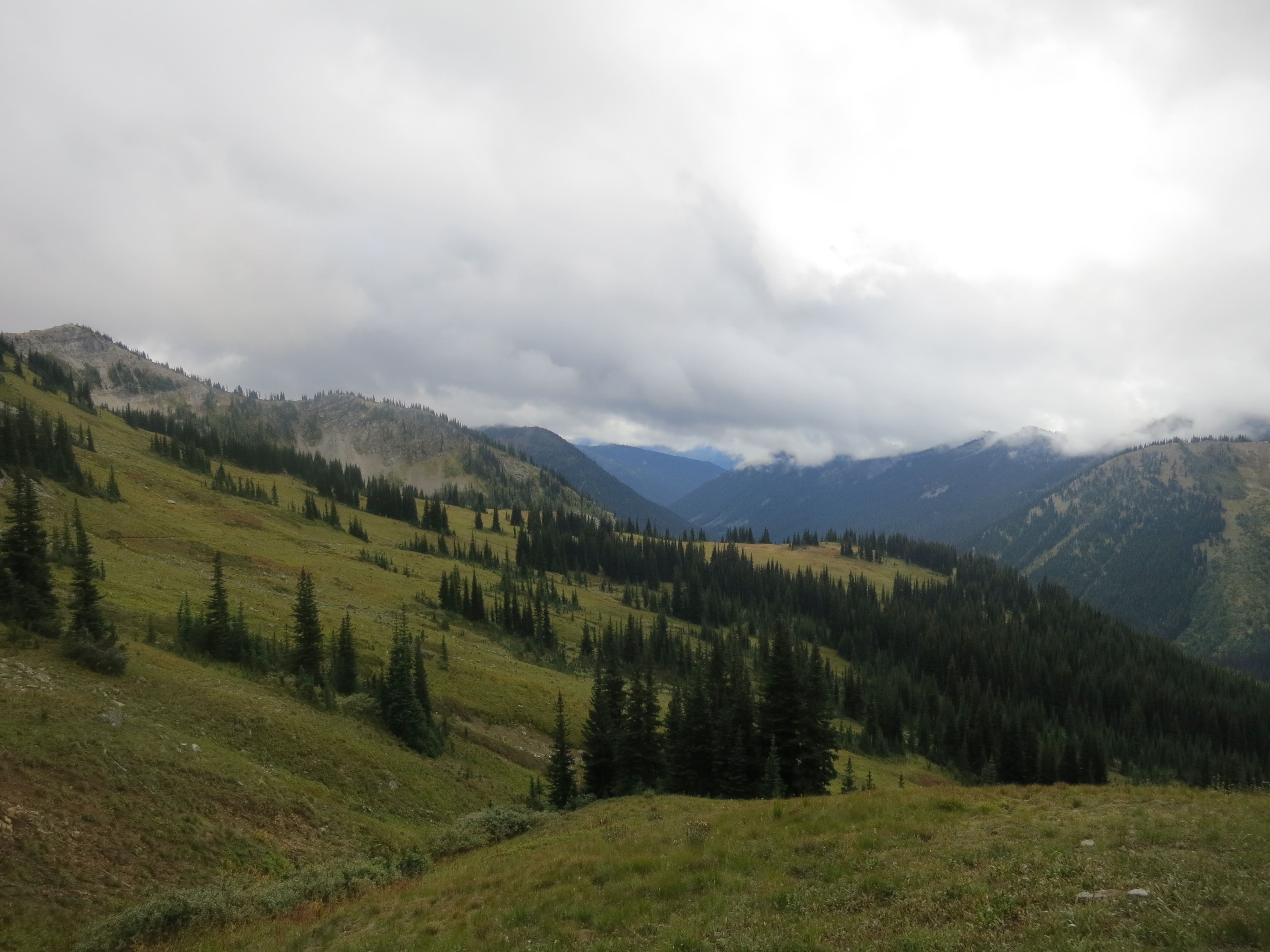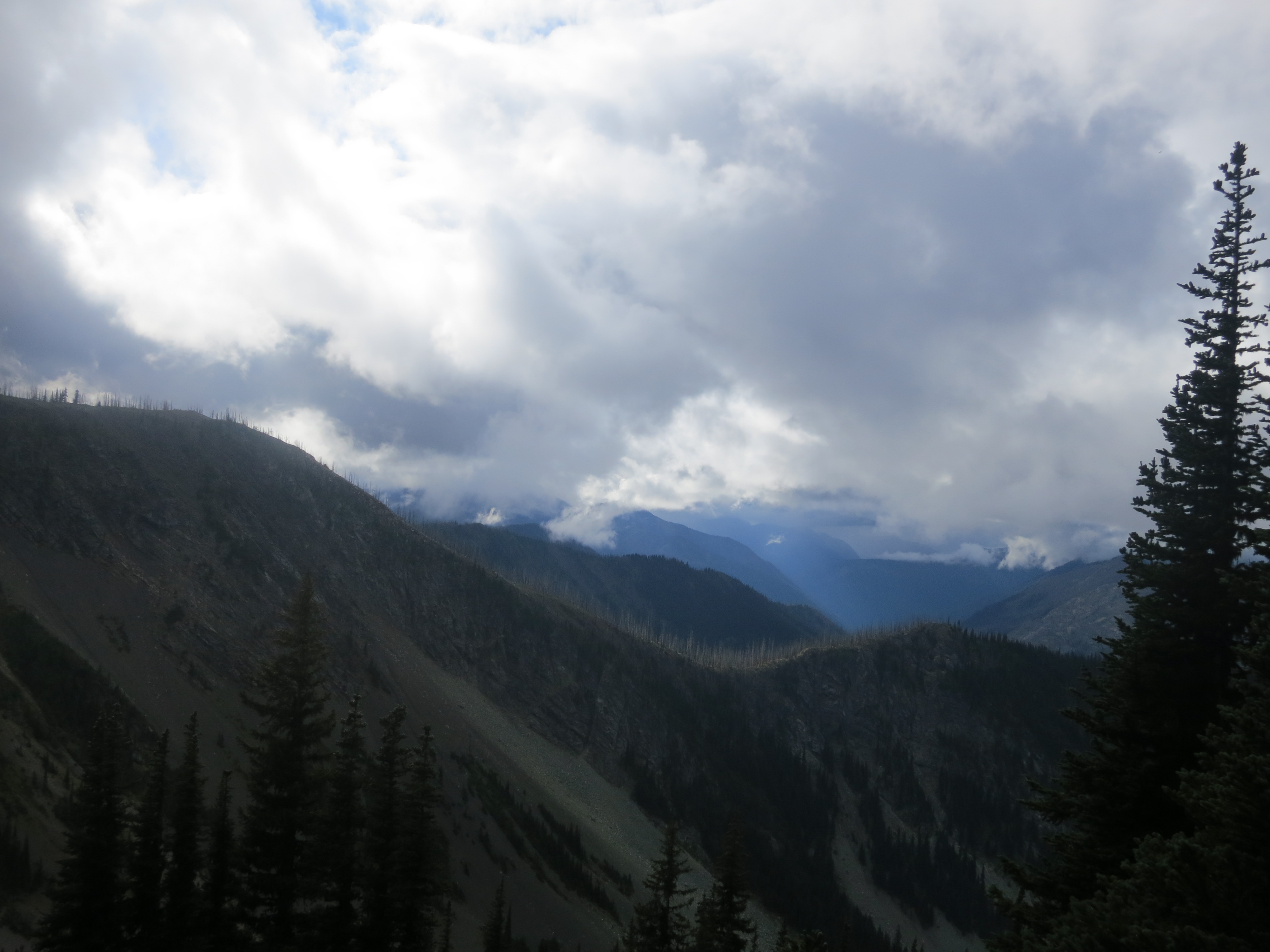 I crested the ridge and followed the open trail. The clouds looked more and more threatening and I hoped the lightning would hold off until I was on the descent. For the last time on the PCT, I had to climb to just over 7,000 feet.