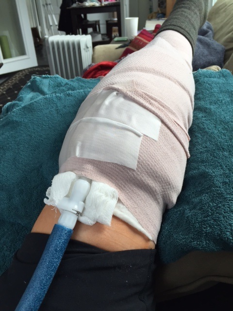 She asked me if my knee was hurting. “Something doesn’t feel comfortable. I don’t know if it is the ice or what.” She said she would give me some pain medication through my IV.