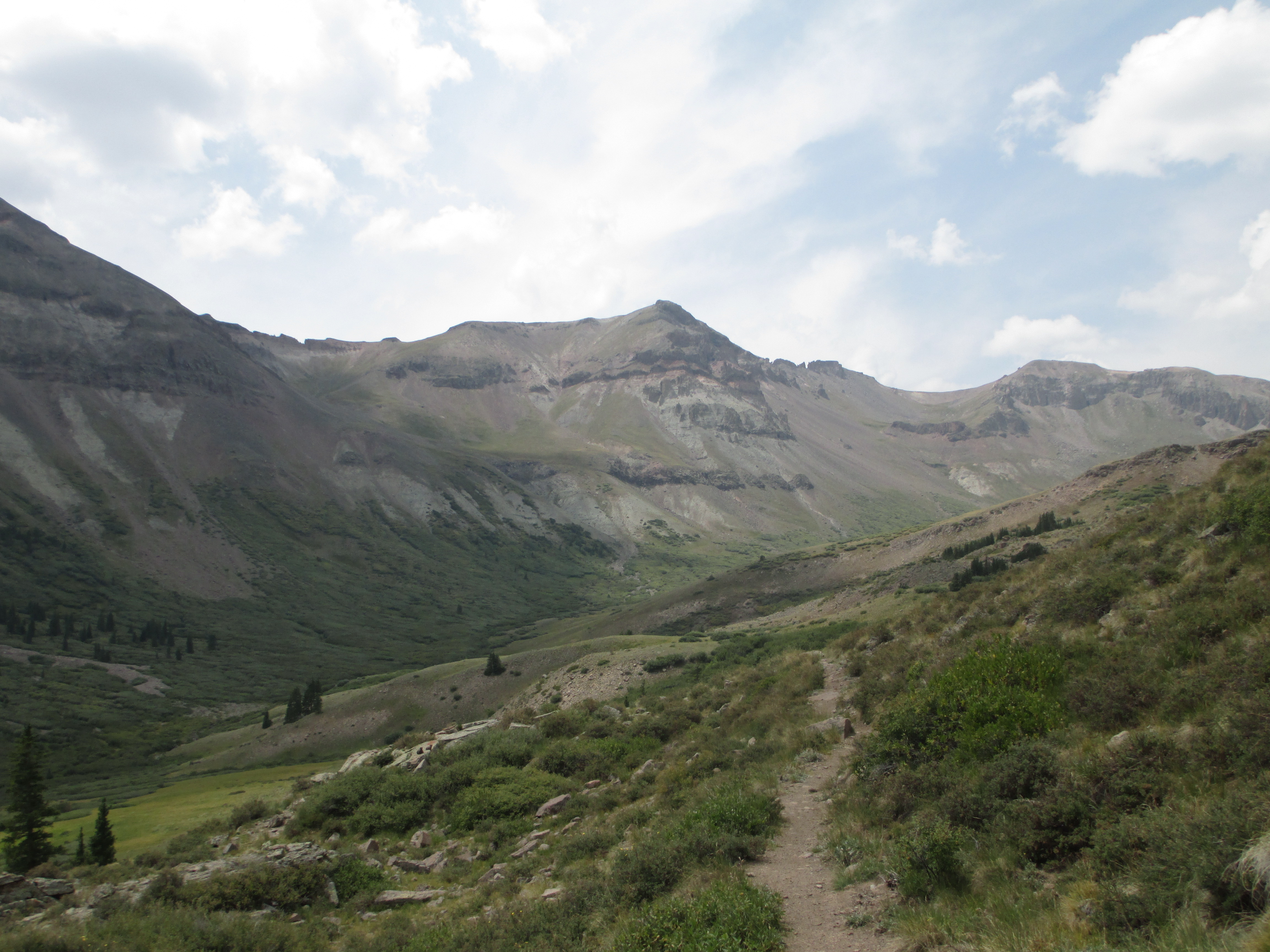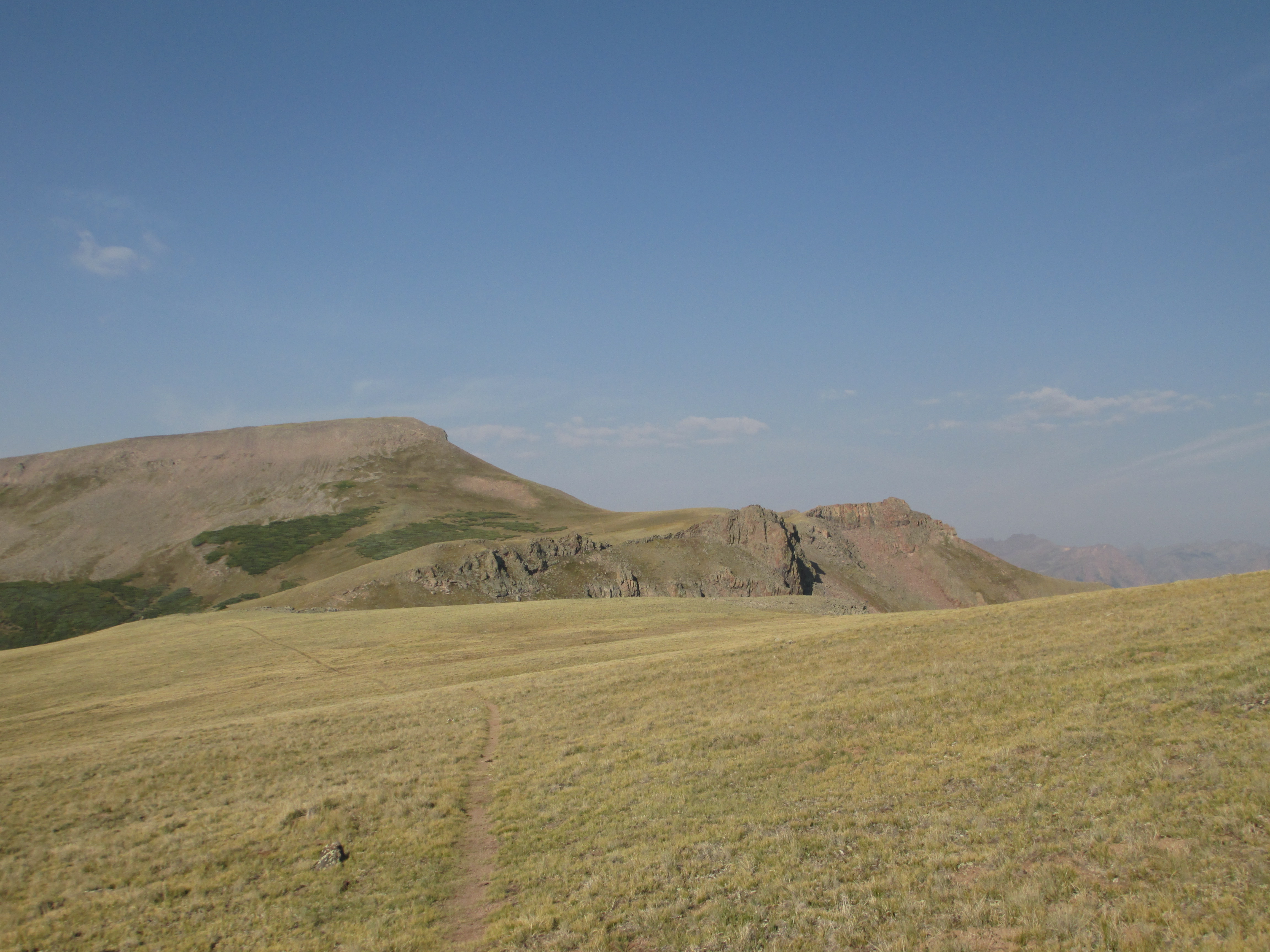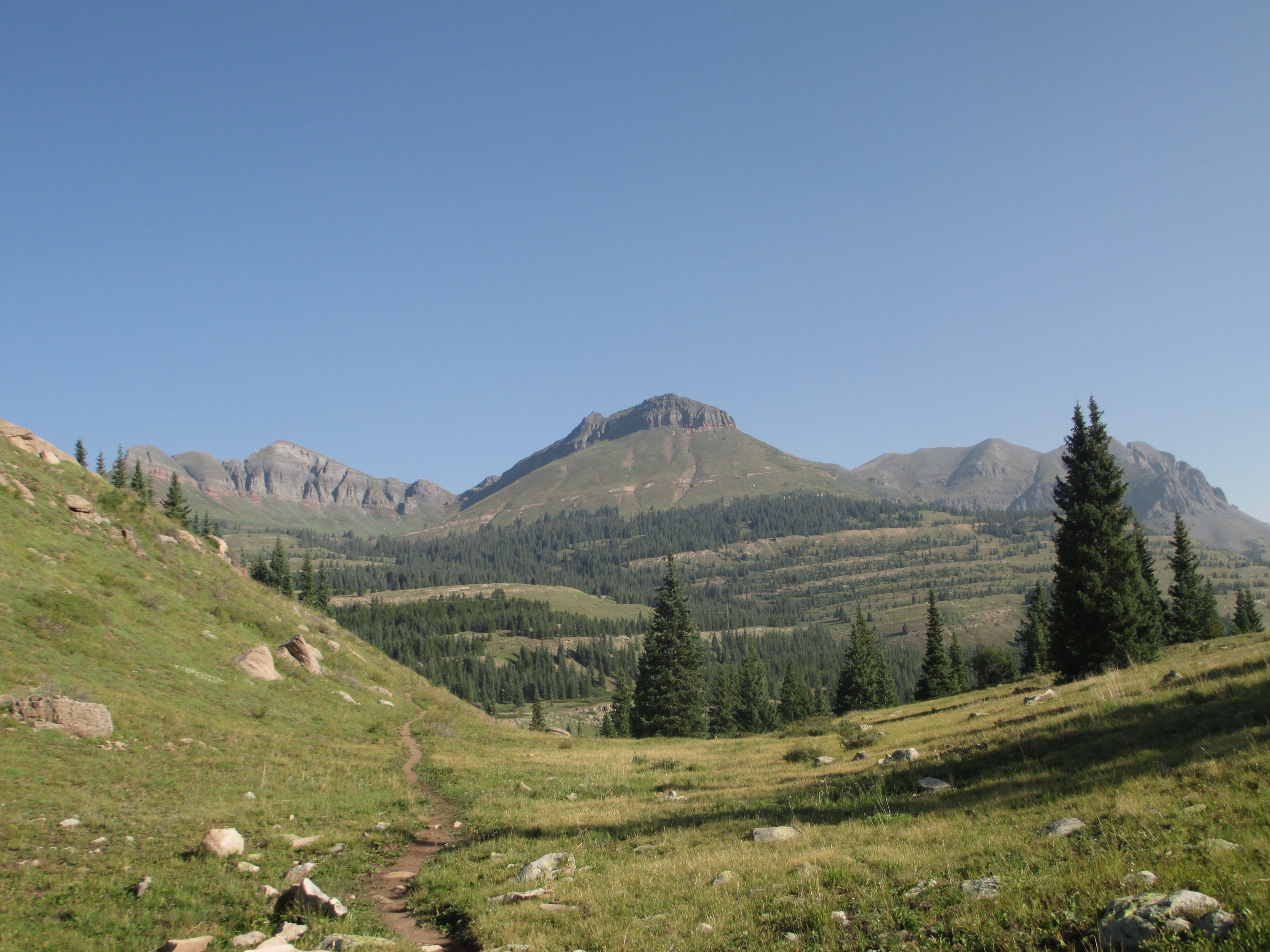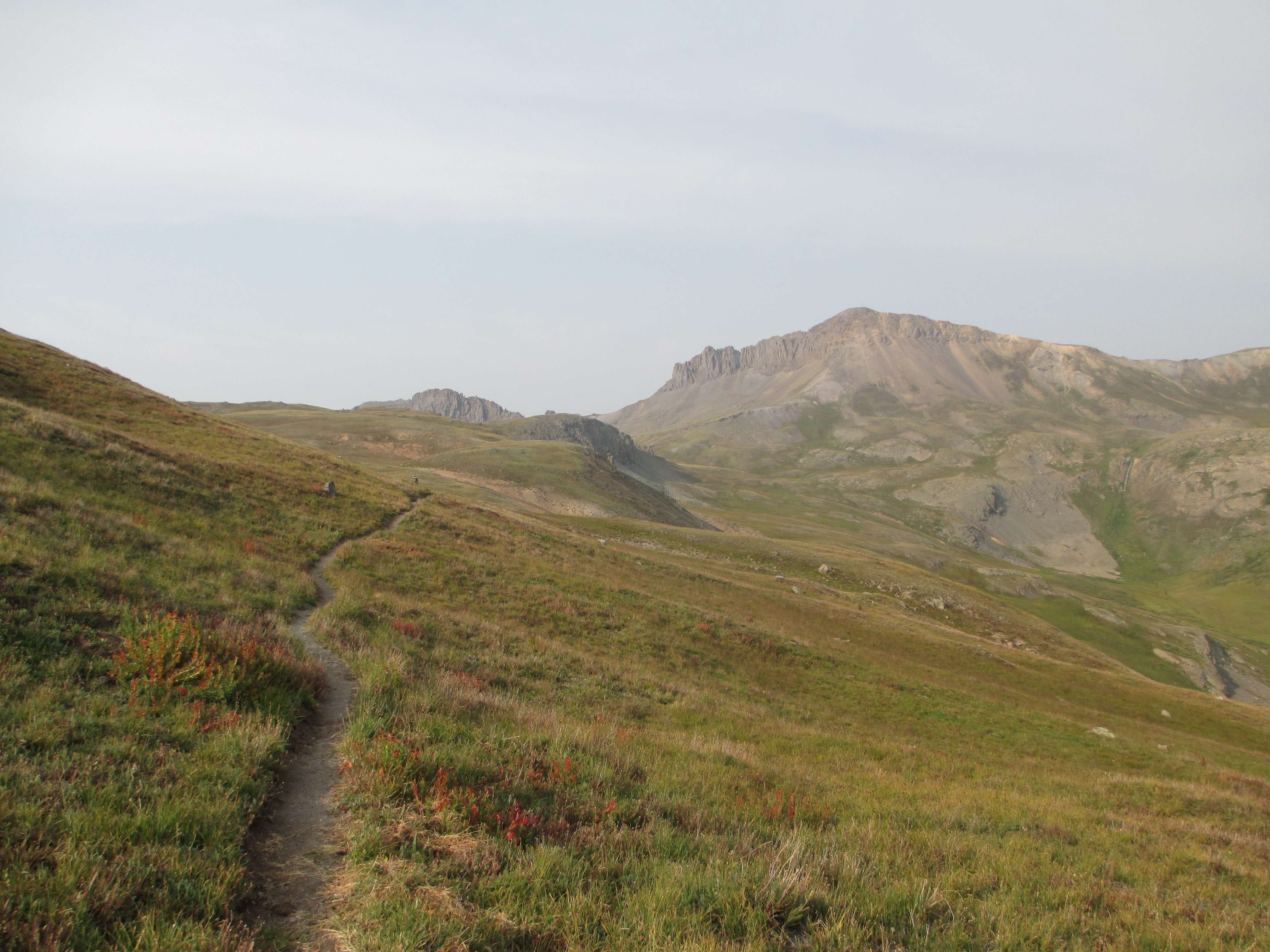 At 1:30, I started up the trail. It was gentle, easy walking to begin with. My pack didn’t even feel heavy and I felt like I had plenty of time. The views weren’t the best, but I could see San Luis peak behind me.