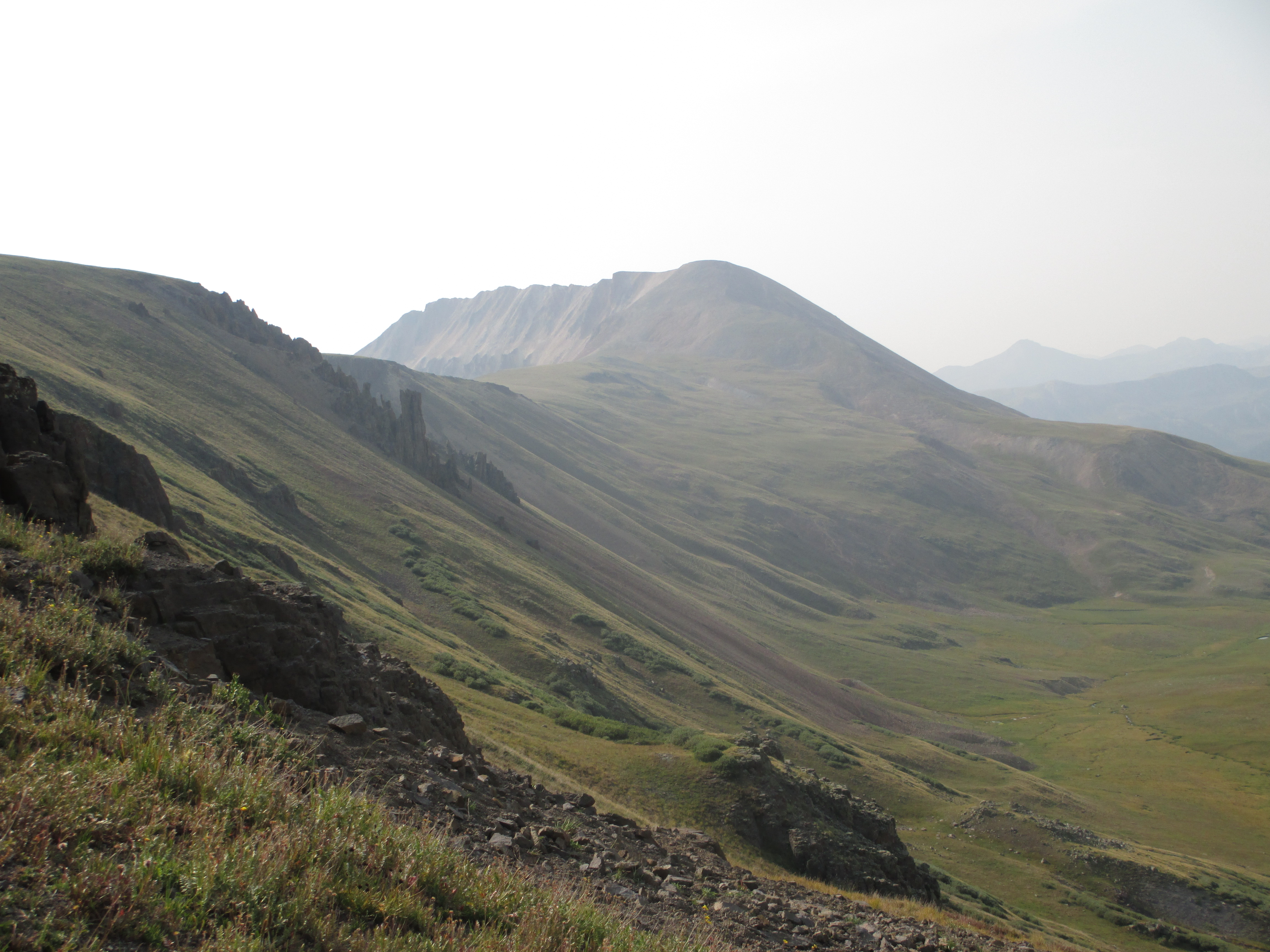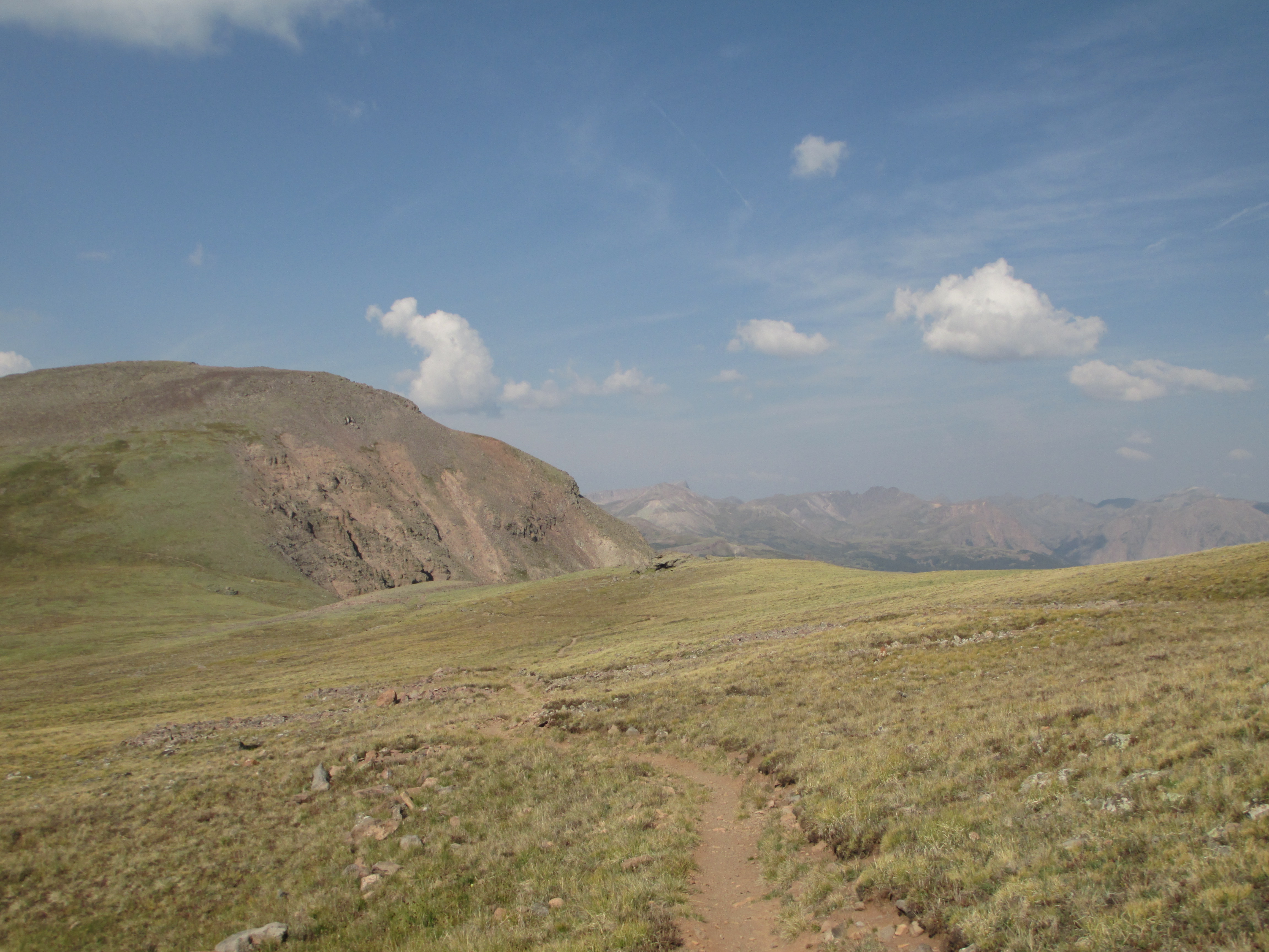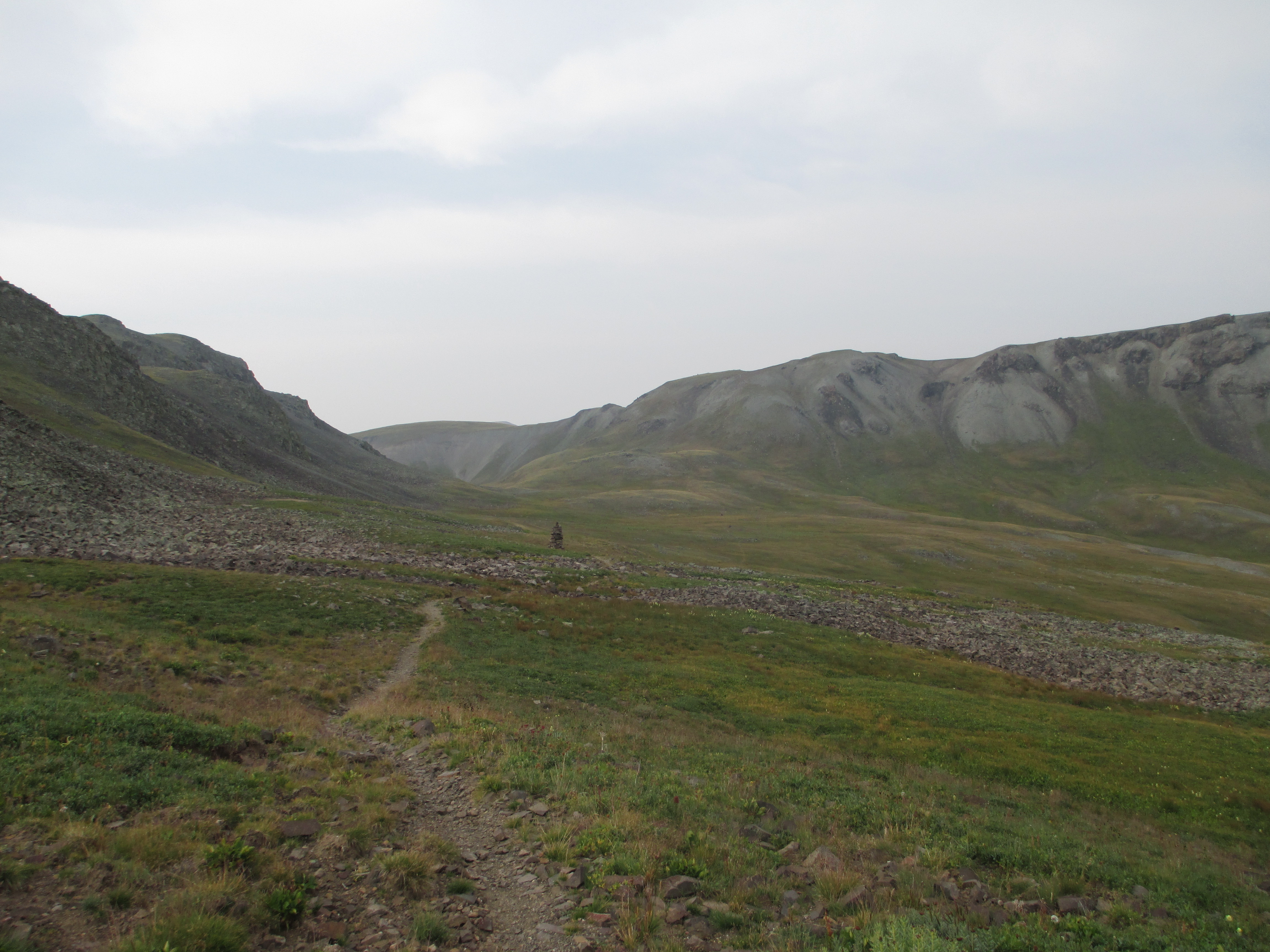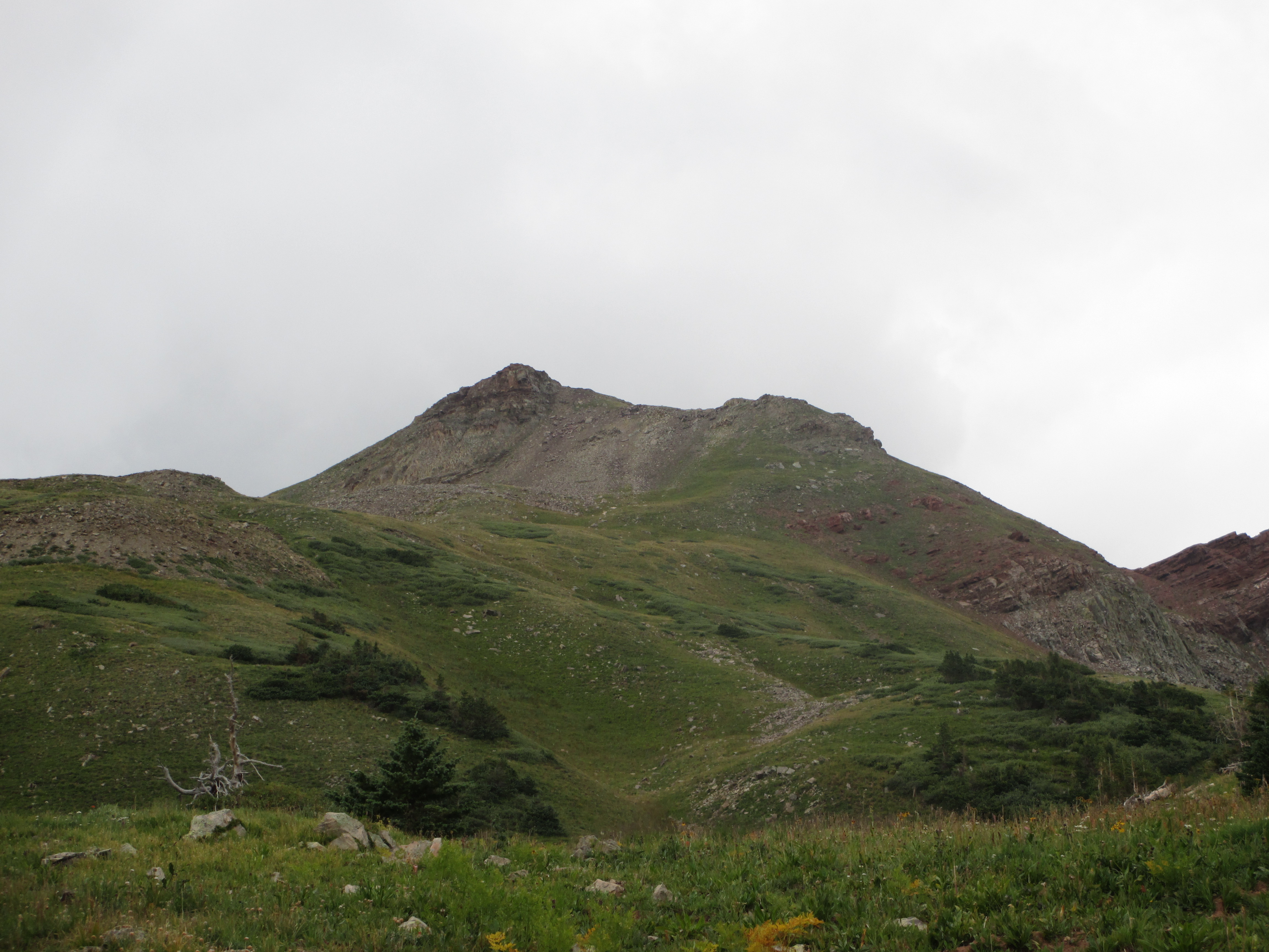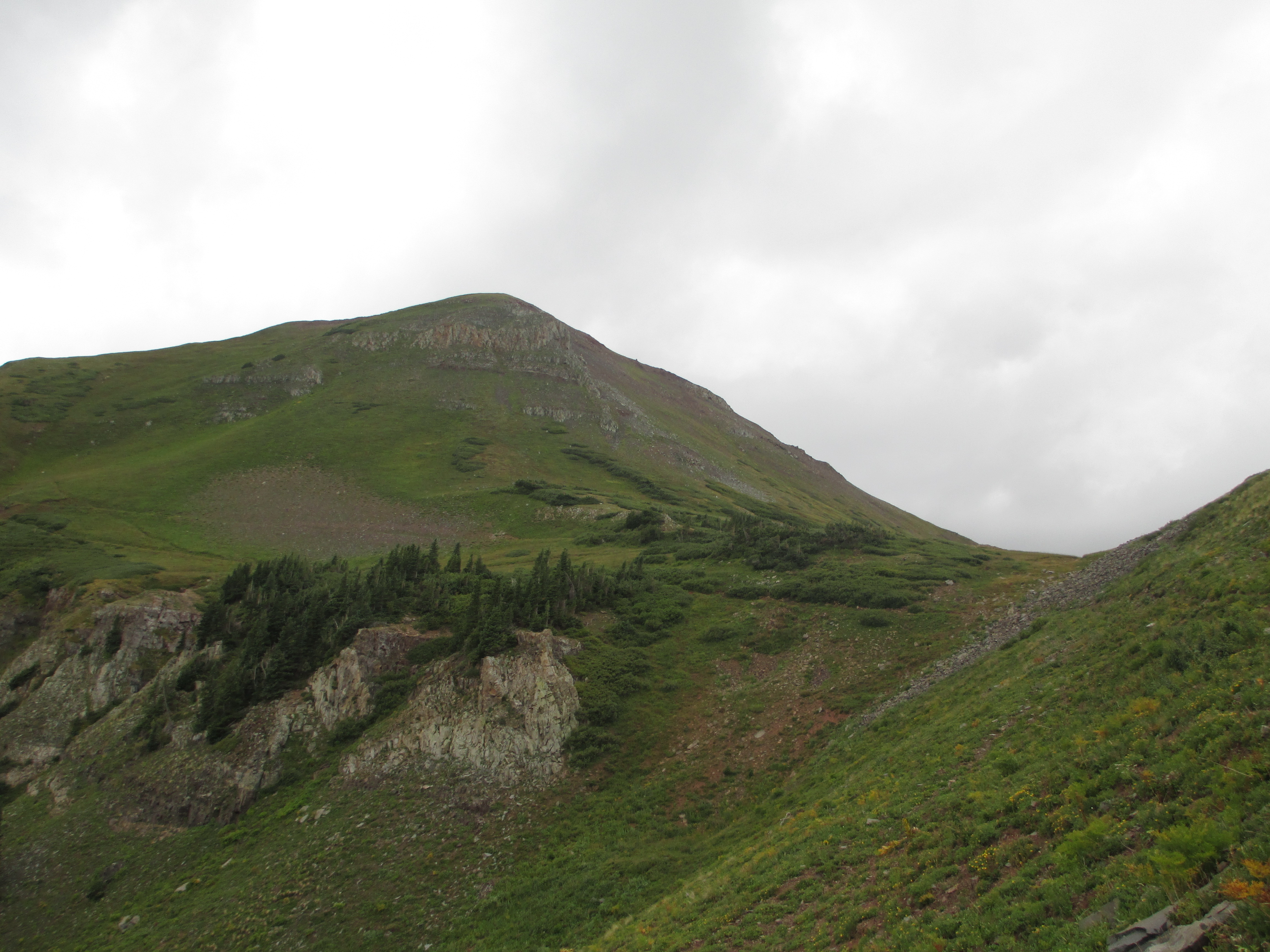 At 1:30, I started up the trail. It was gentle, easy walking to begin with. My pack didn’t even feel heavy and I felt like I had plenty of time. The views weren’t the best, but I could see San Luis peak behind me.